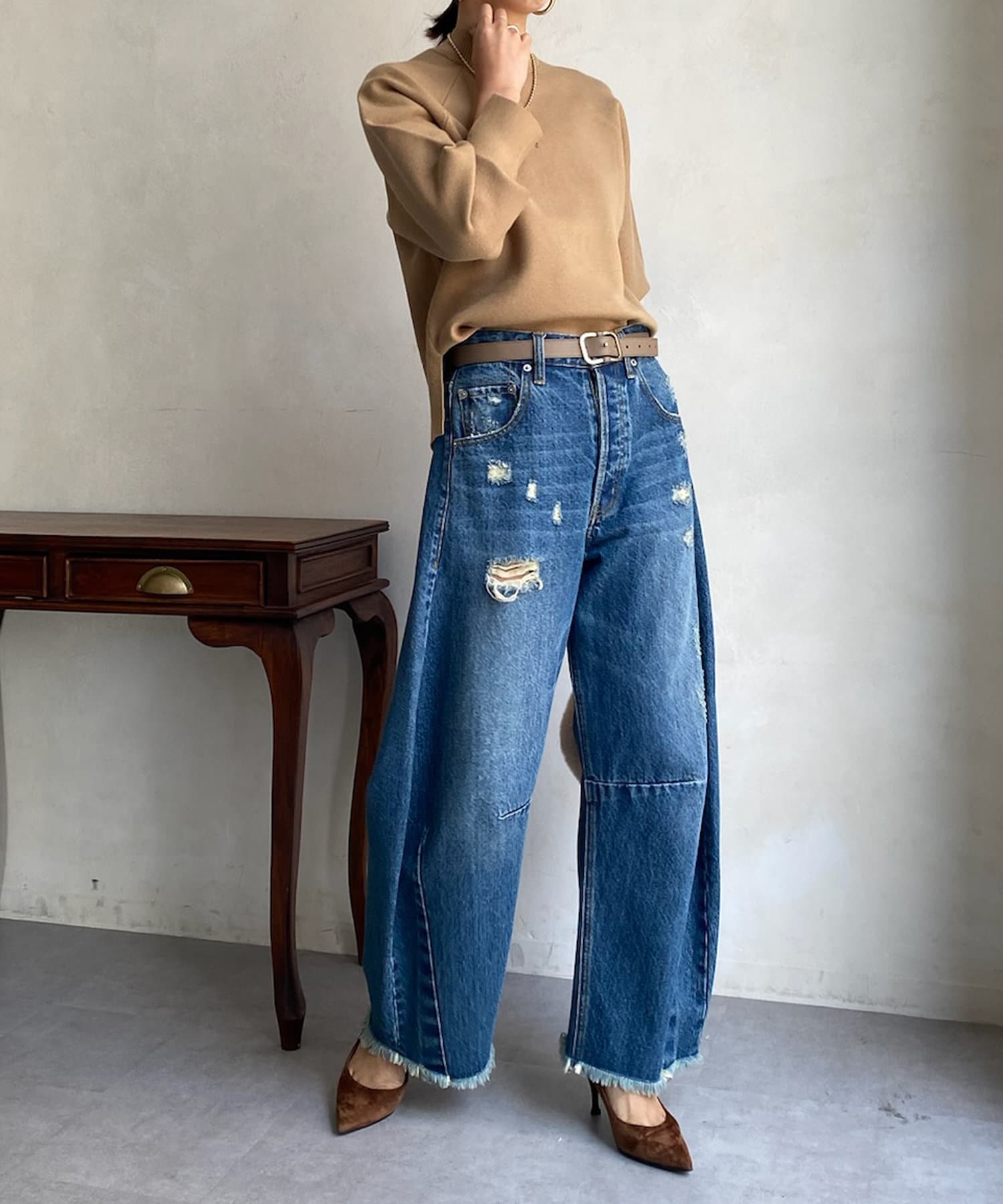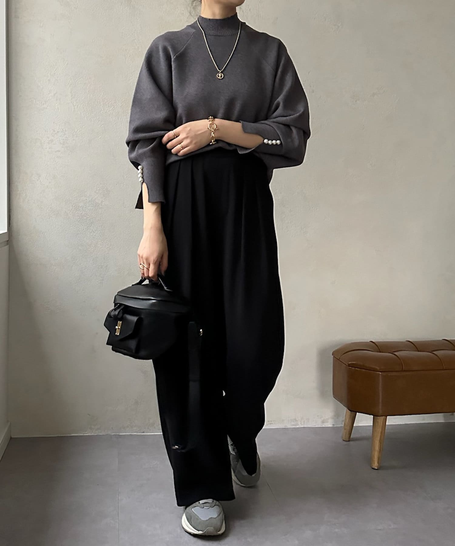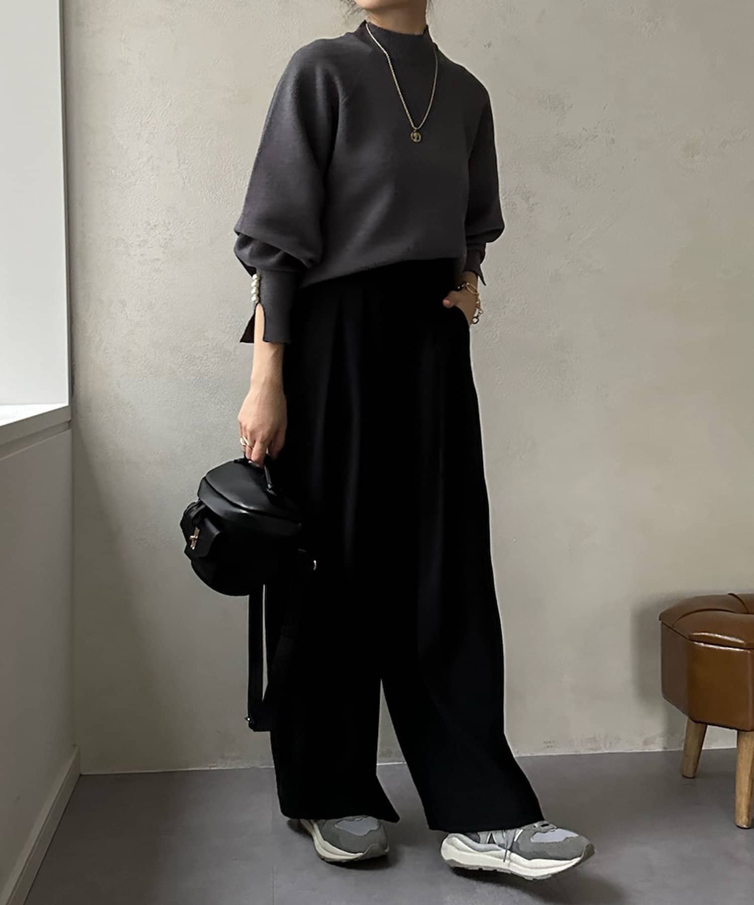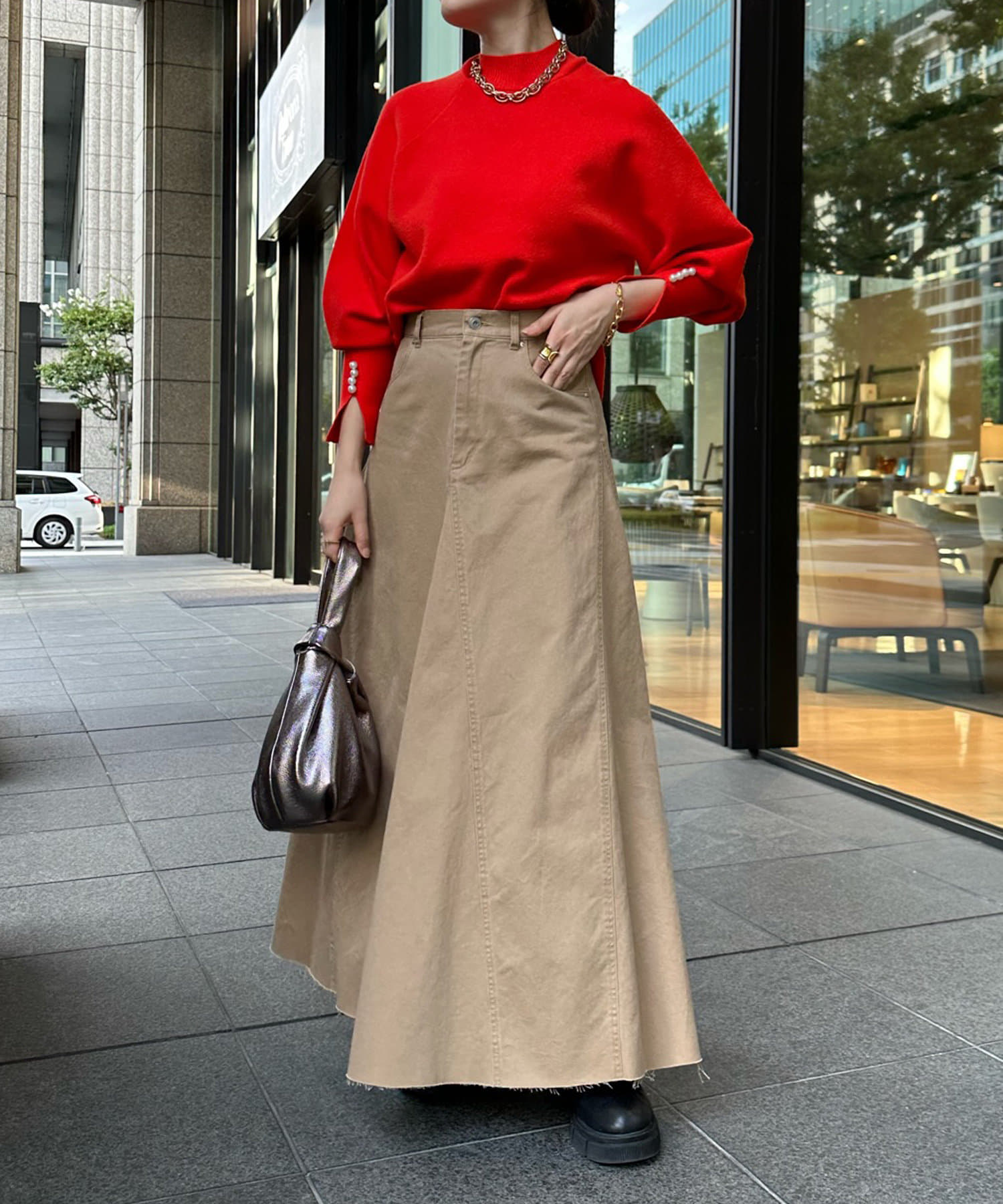 しっかりした素材感なのでシルエットに動きをつけてくれて、体形カバーも叶いますよ!