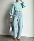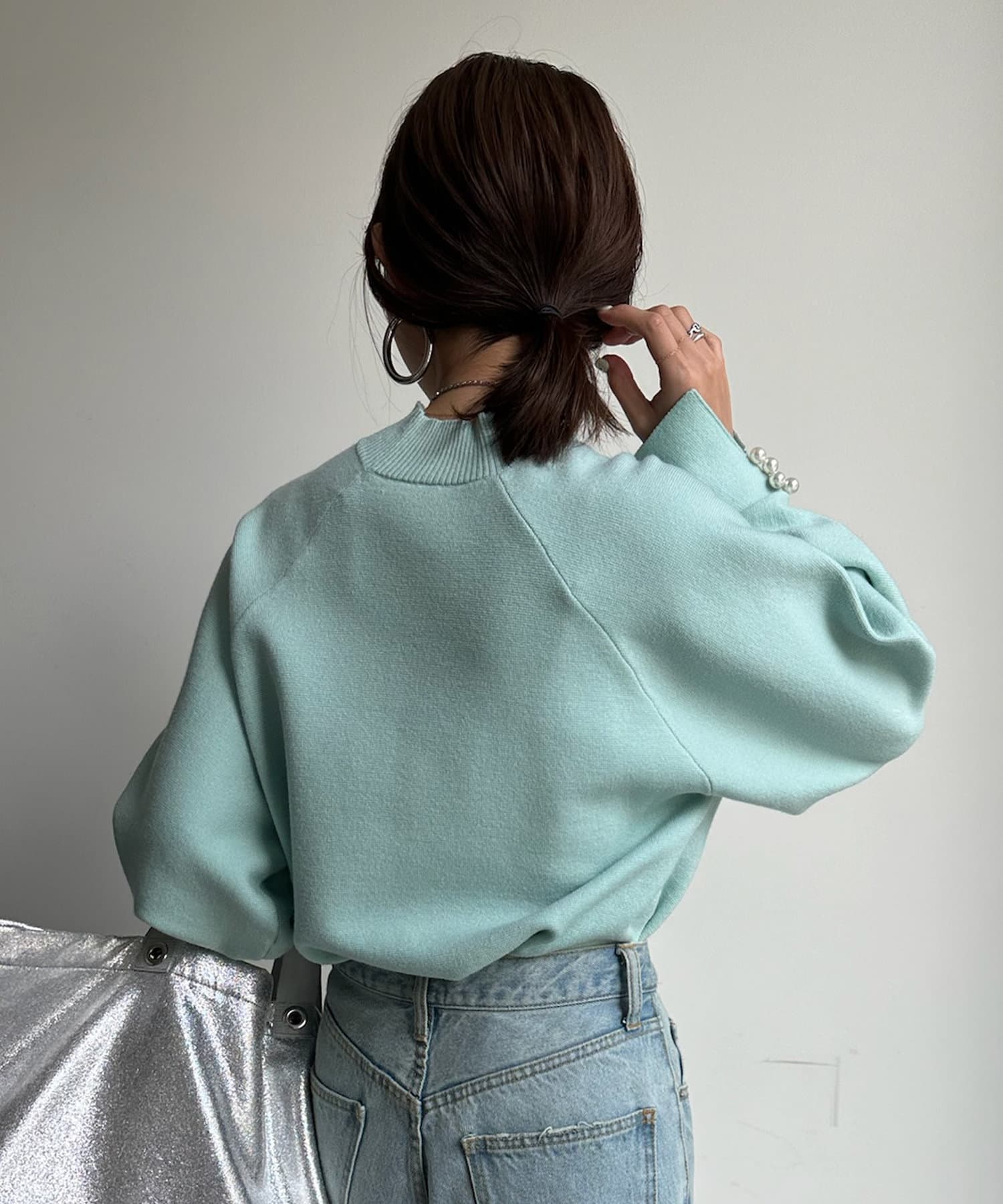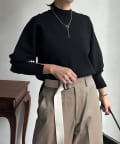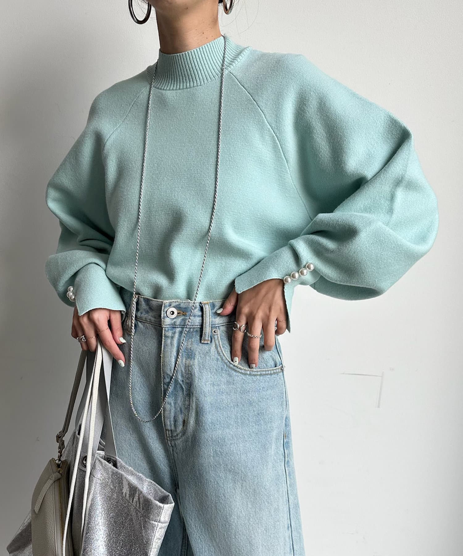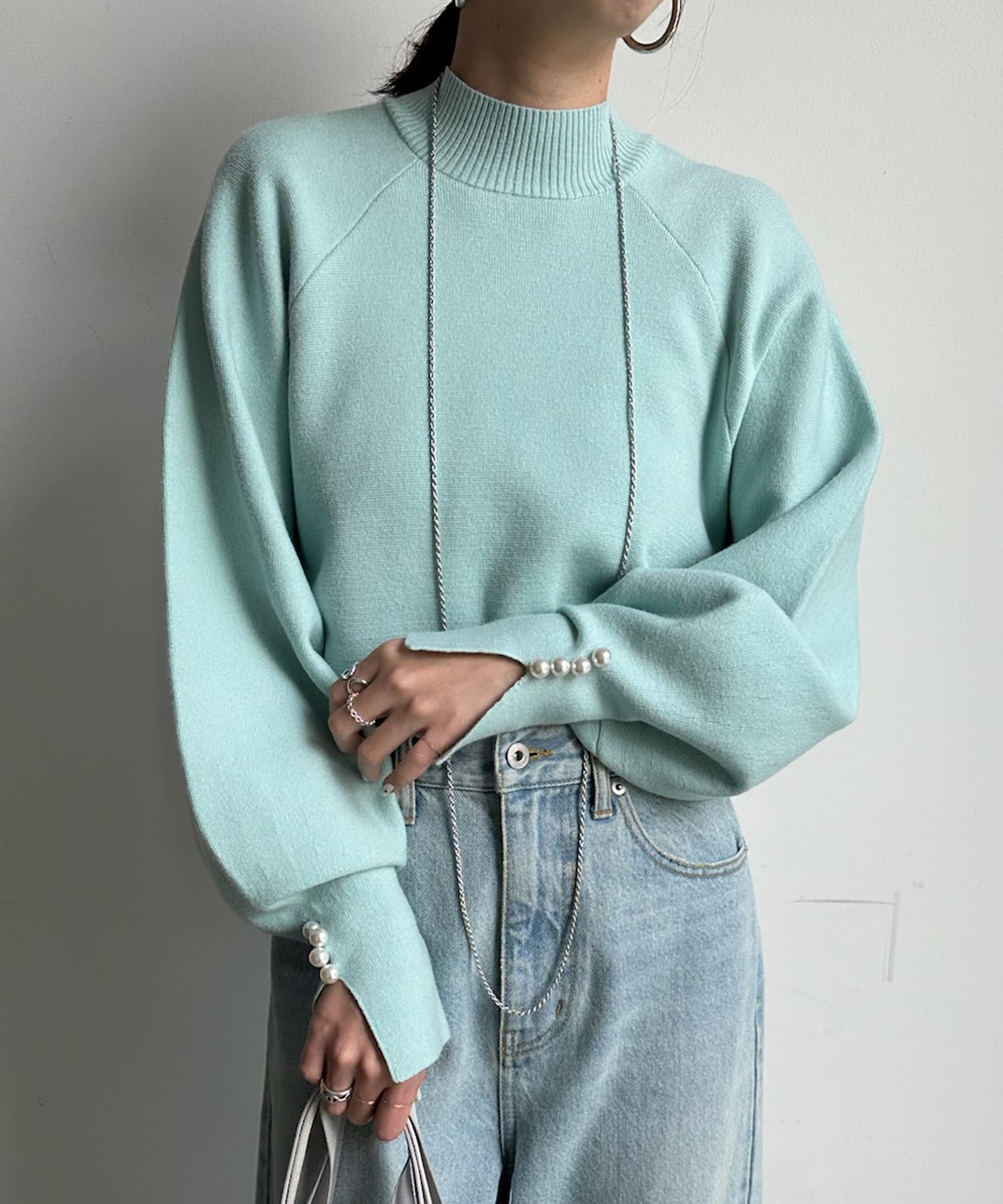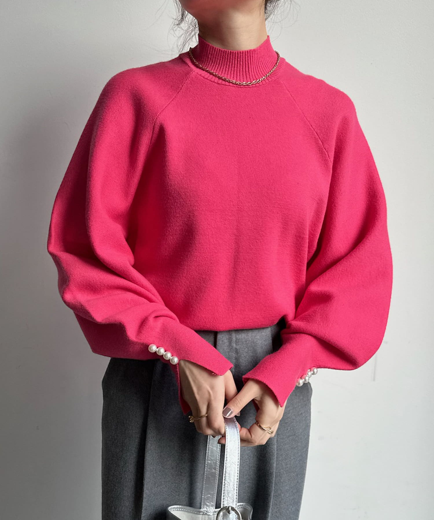 【新色追加】【WEB限定】 ミラノリブ袖パールトップス