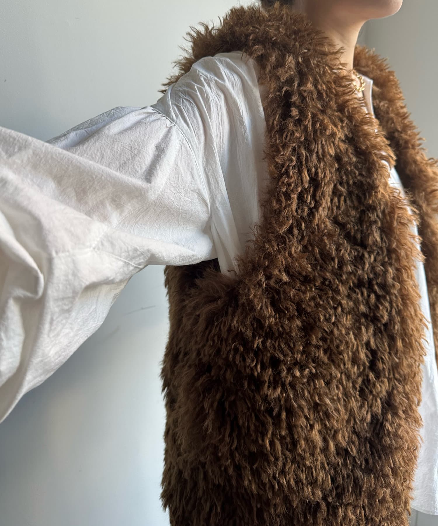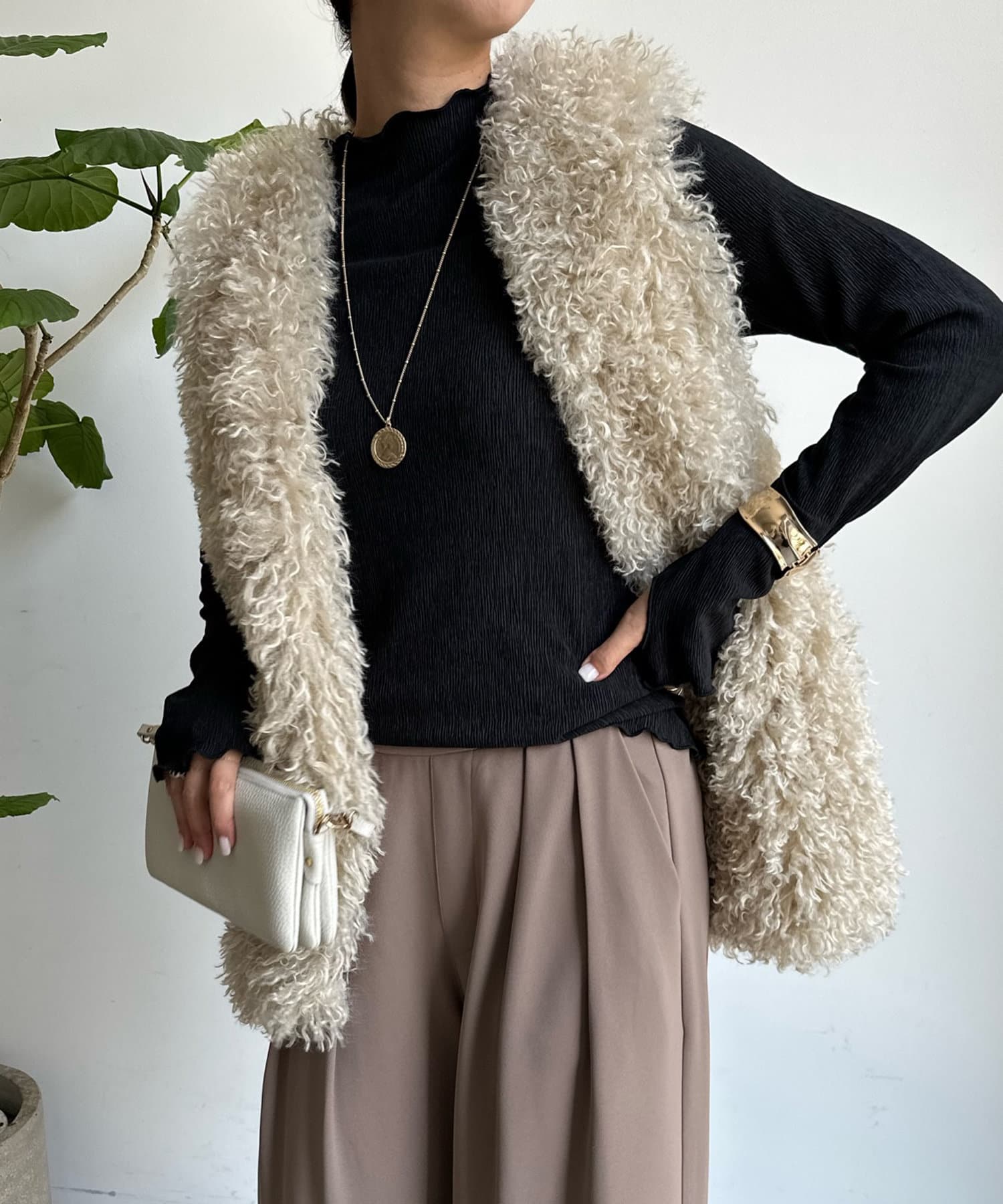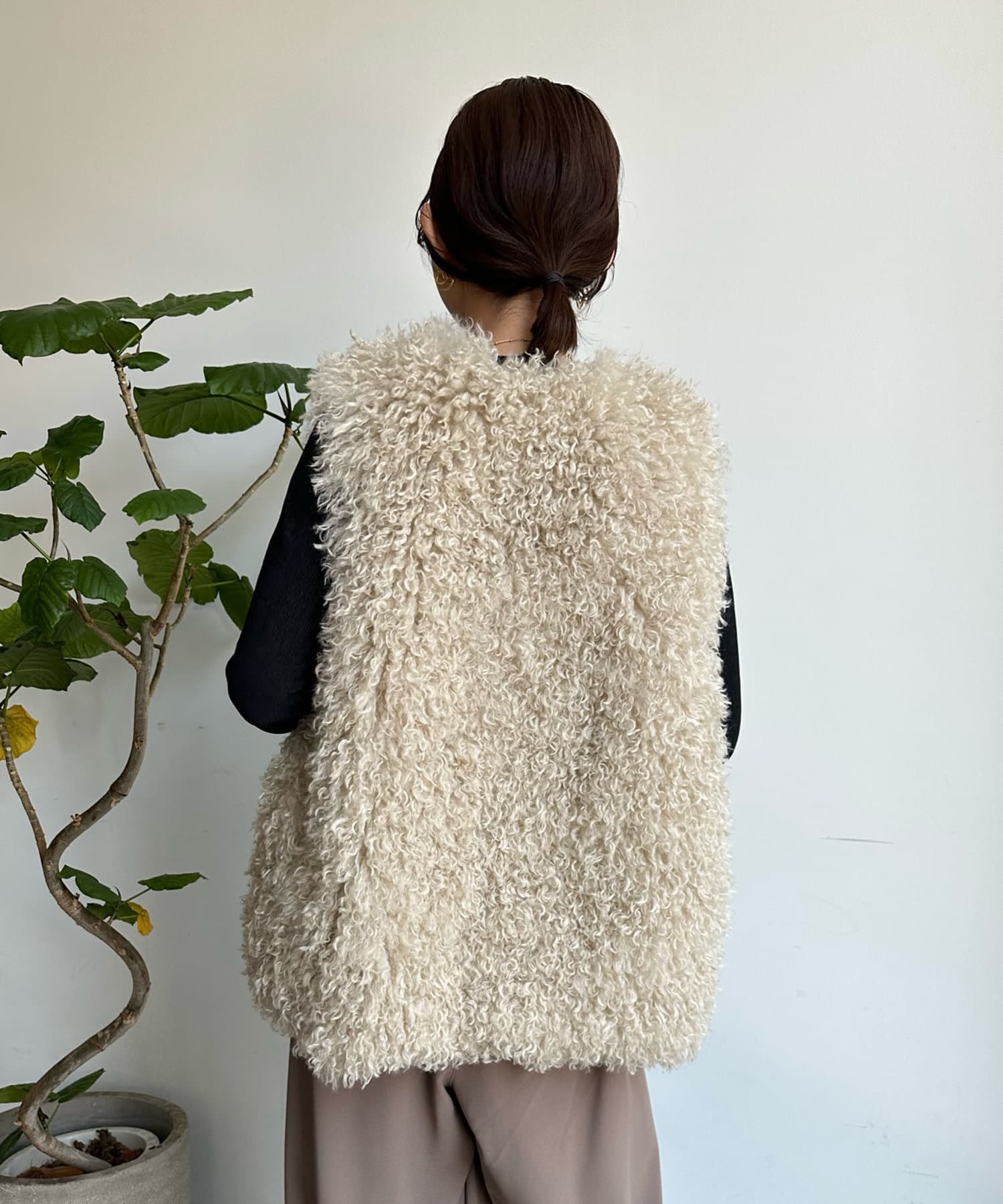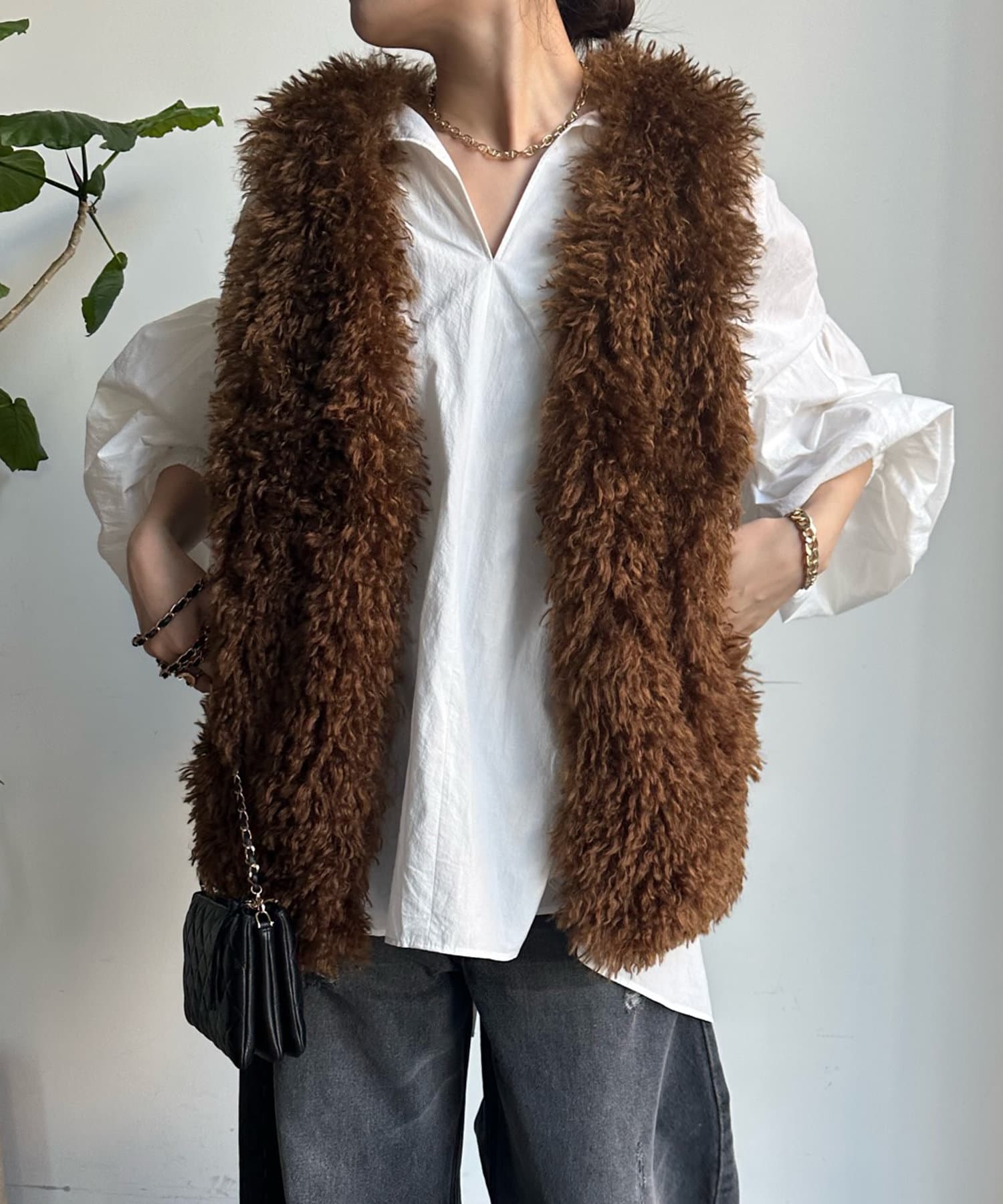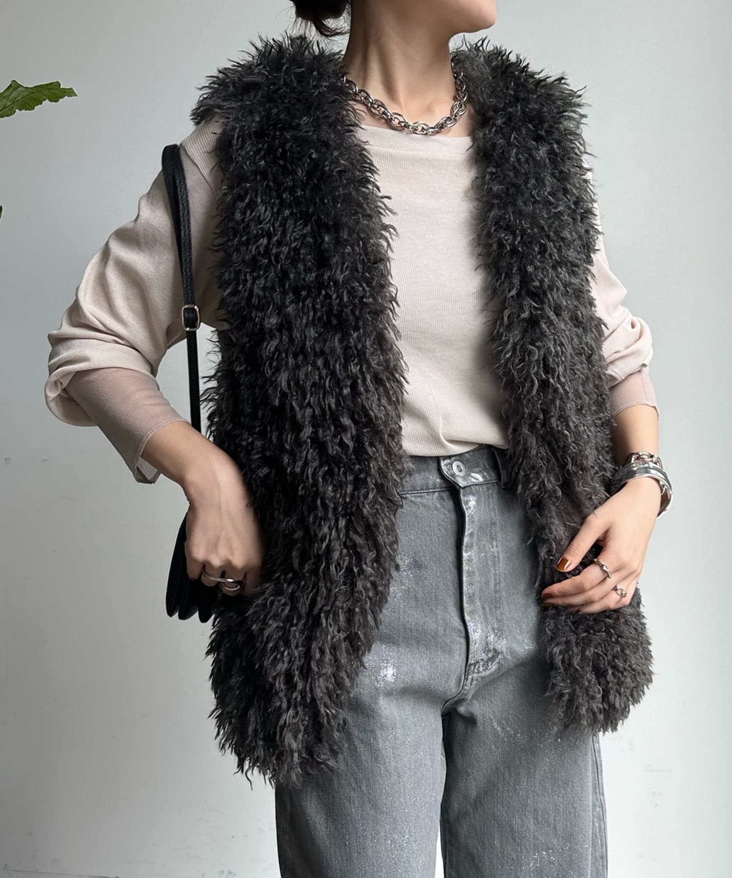 チベットラム風のファーがボリューミーなファーベスト!