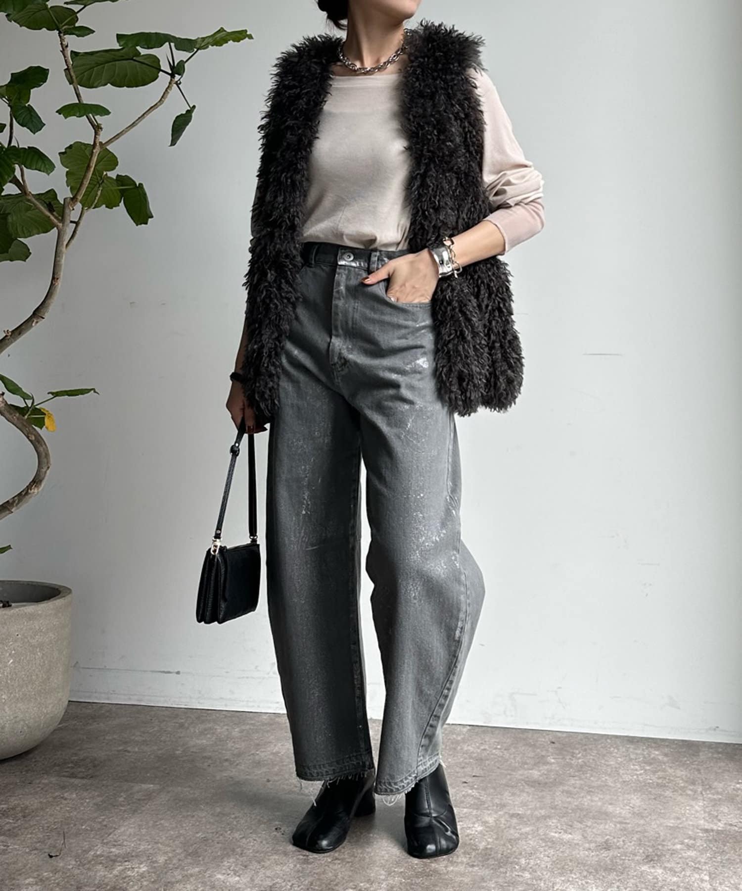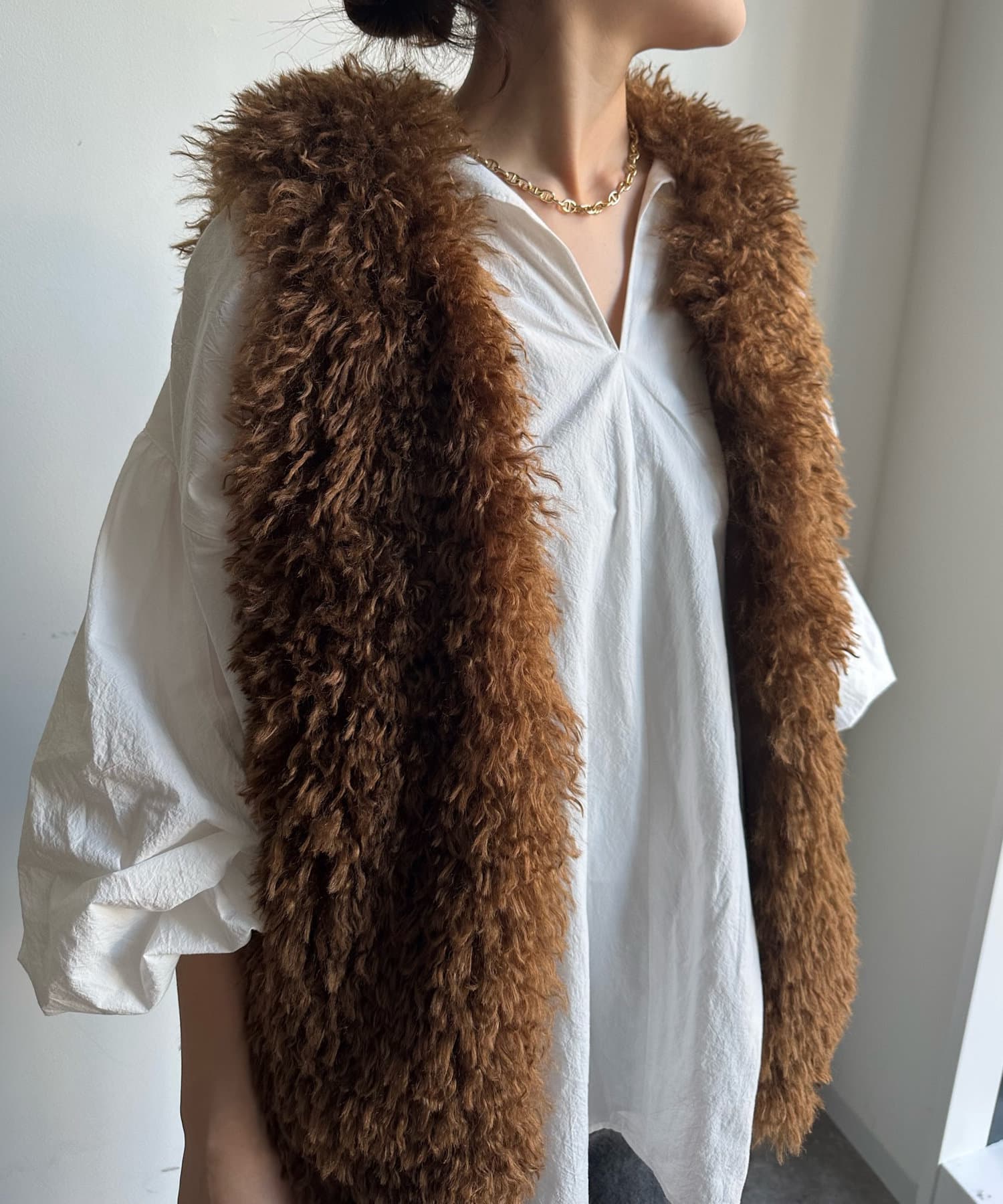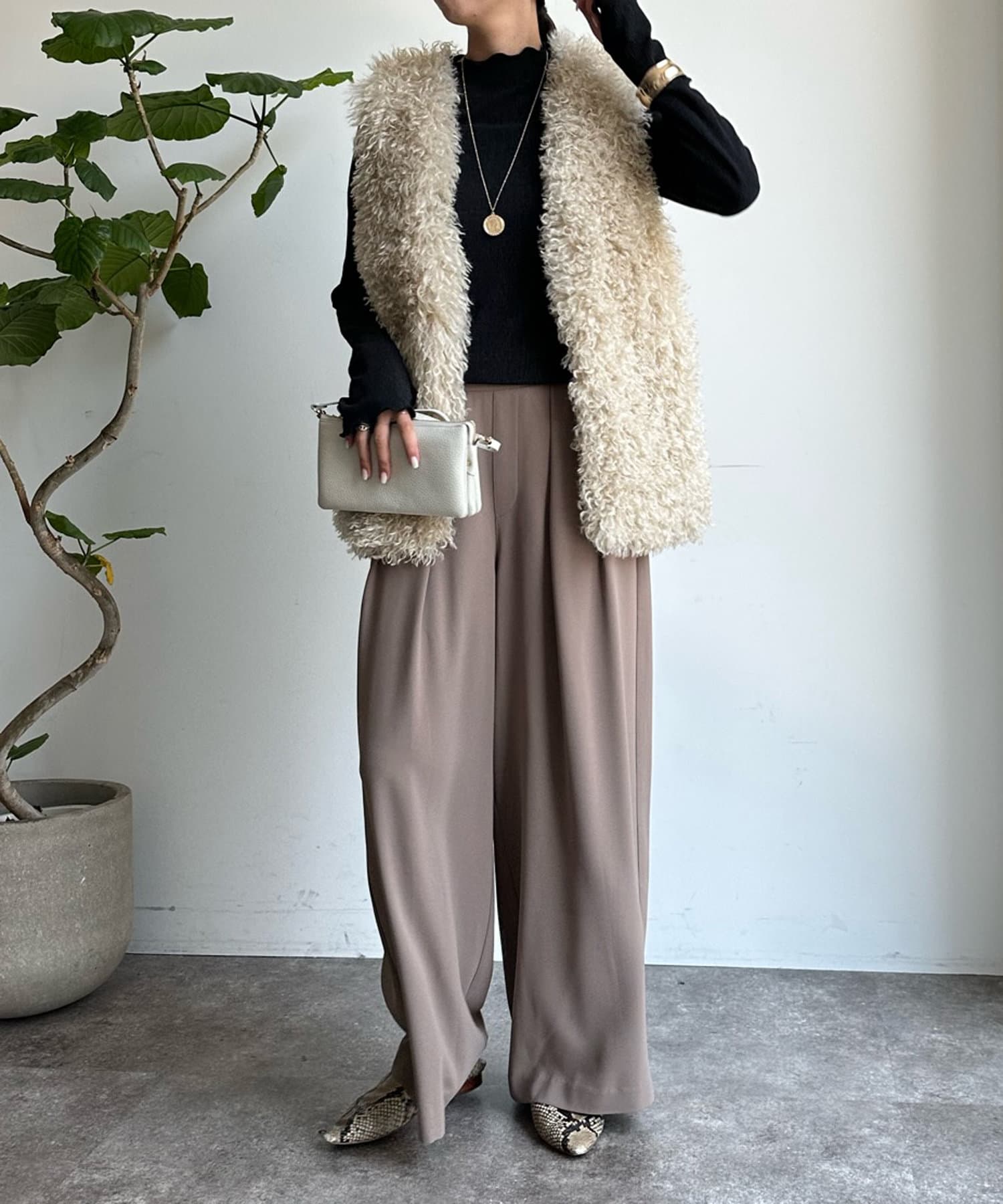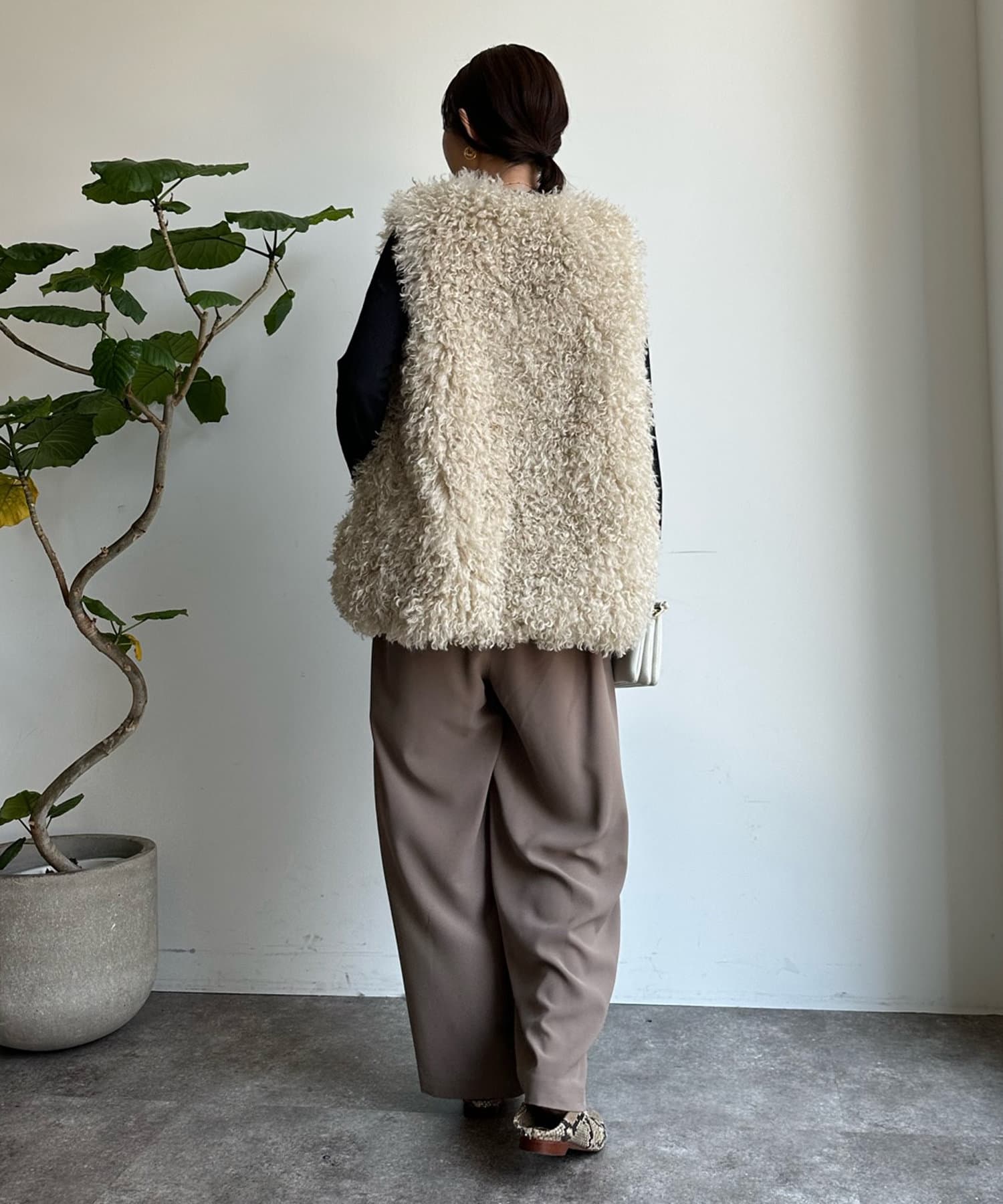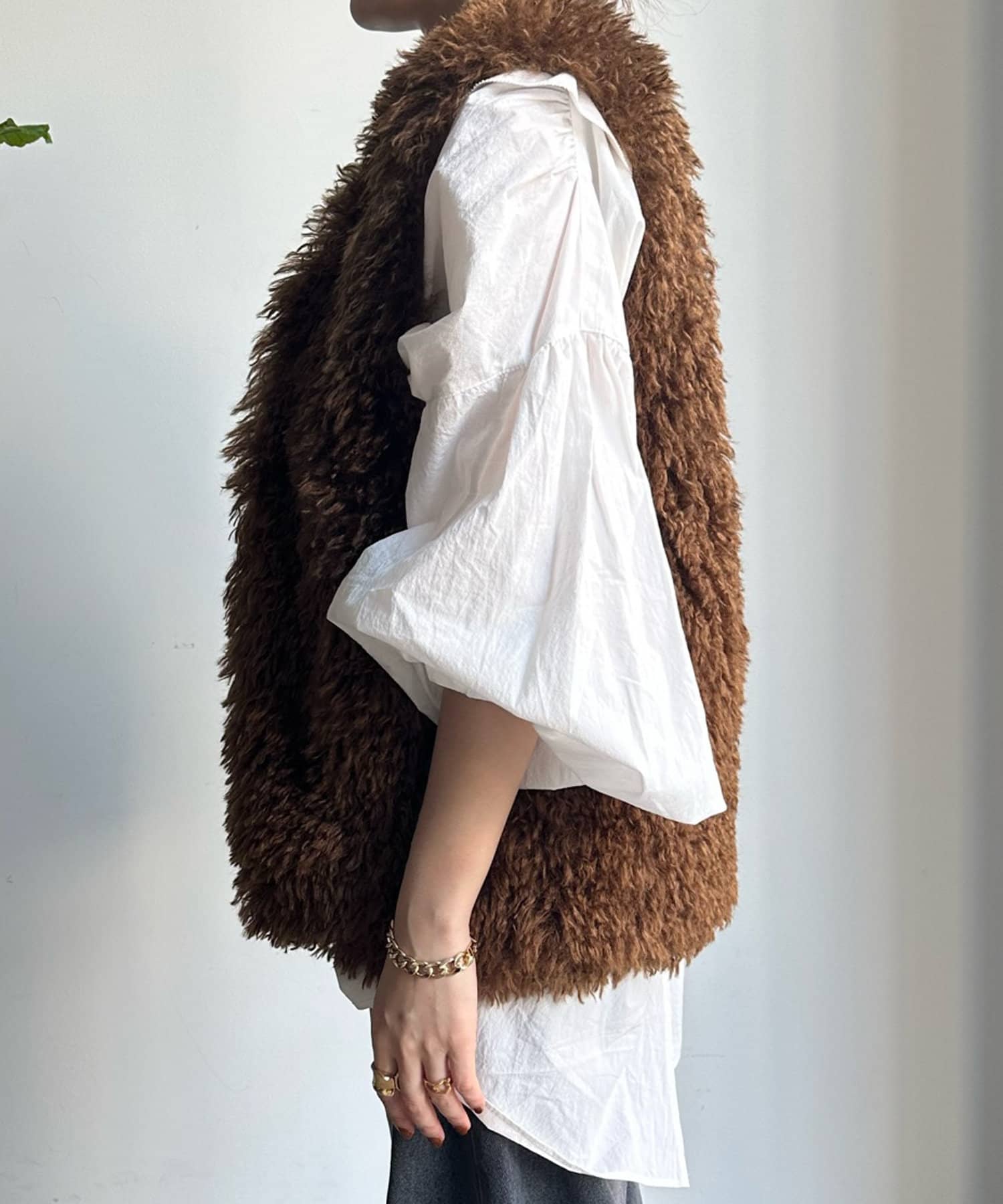チベットラム風のファーがボリューミーなファーベスト!