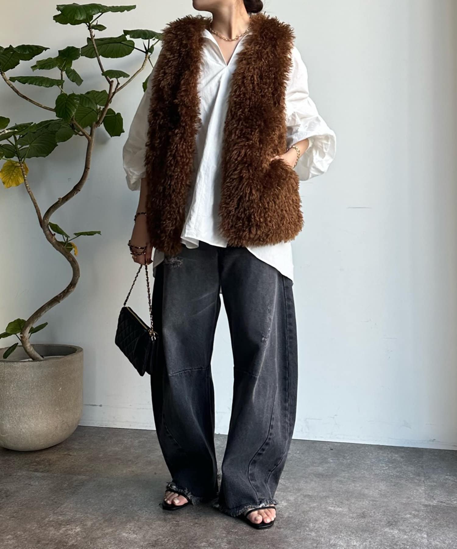 ボリューミーなファーで存在感のあるベスト!