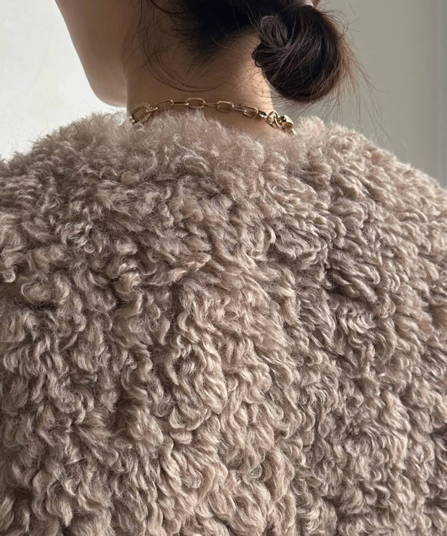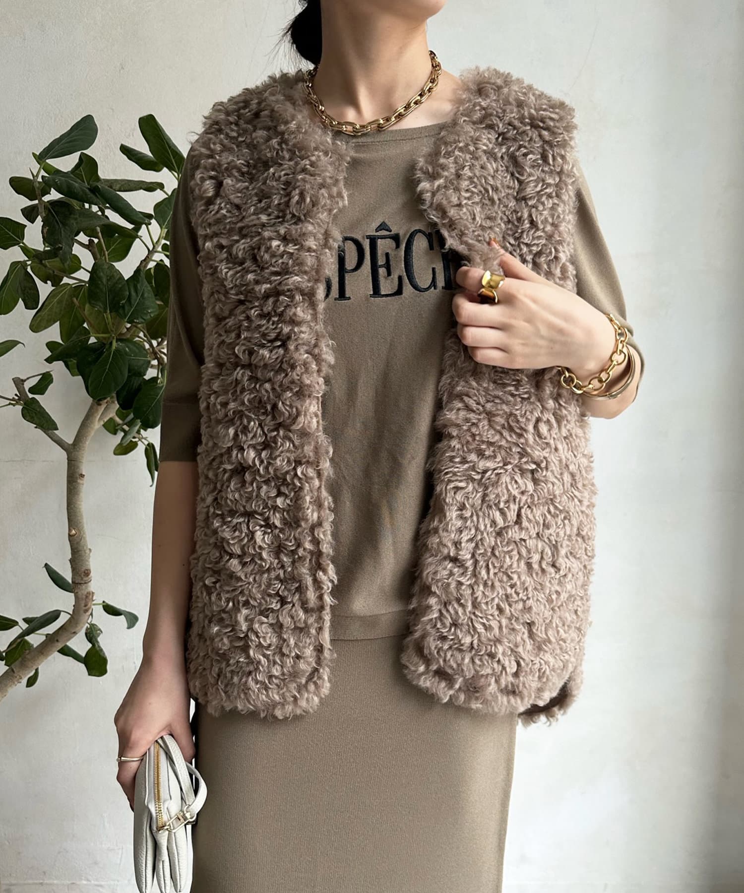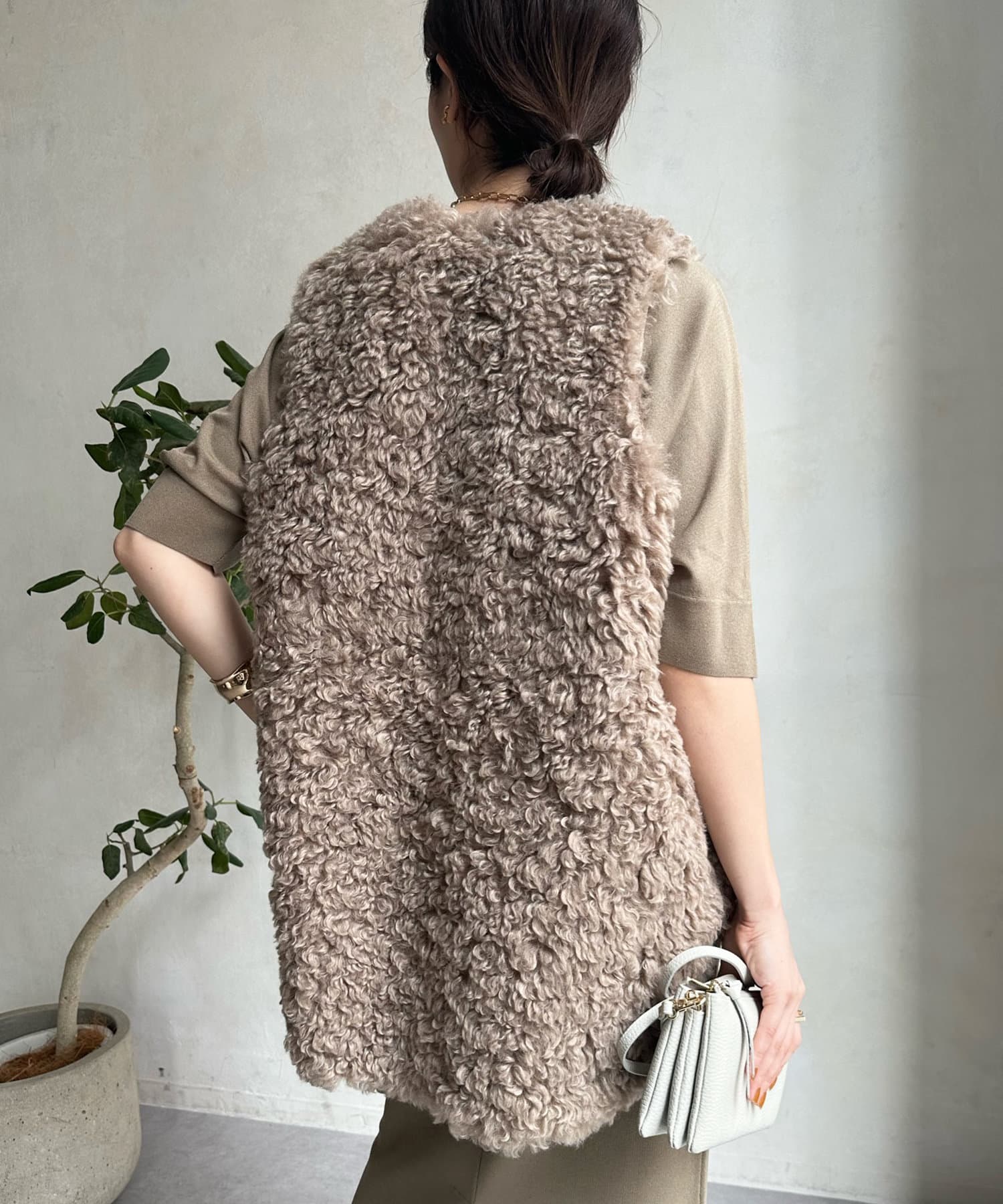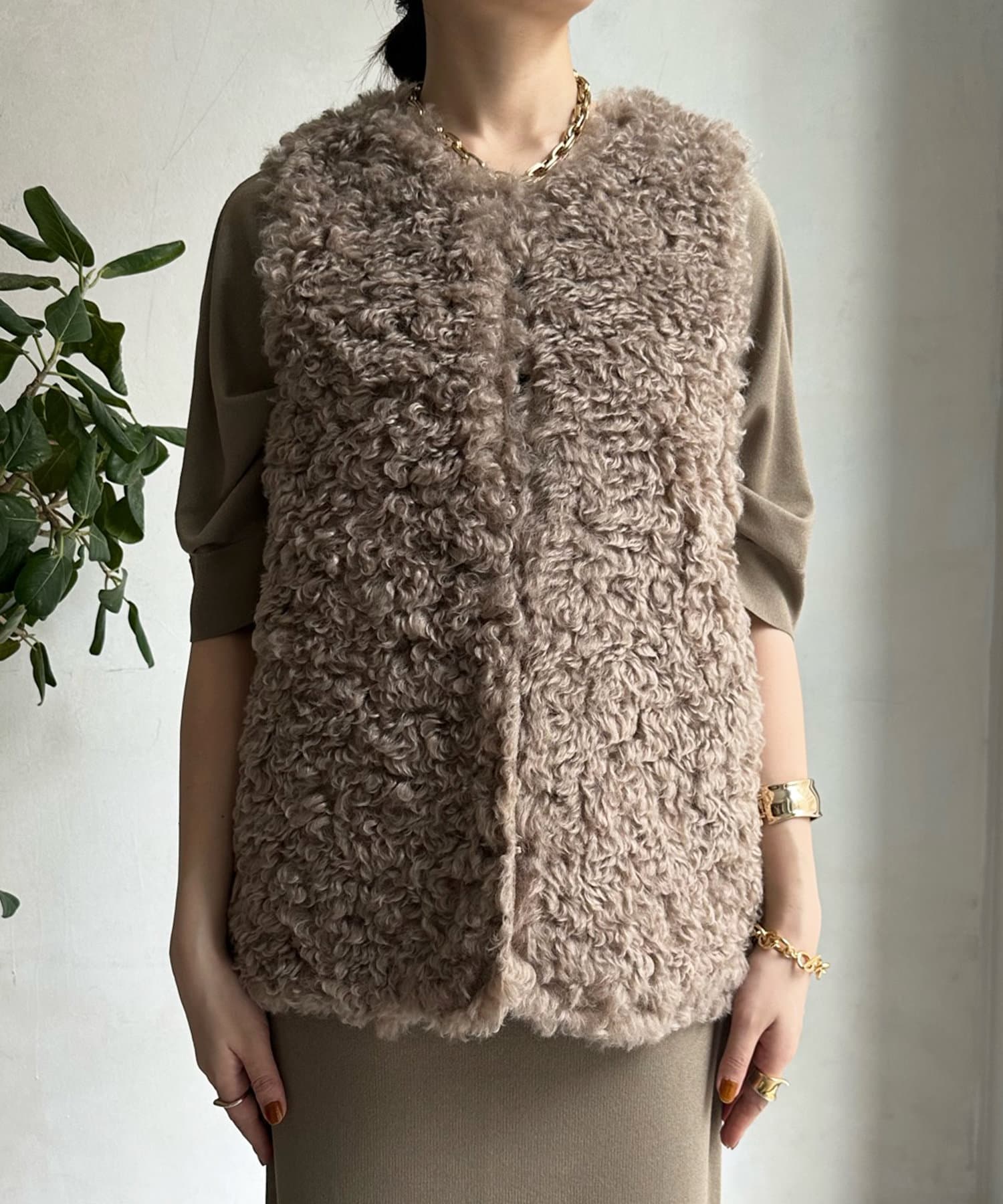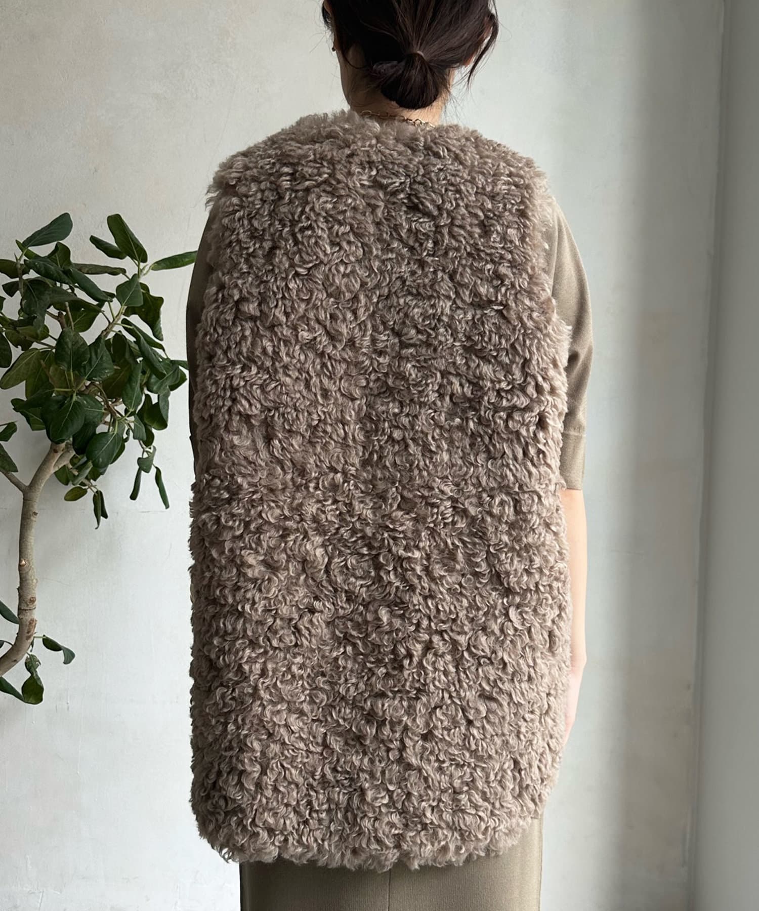 カーリーファーベストよりもさらにクルクルとした毛足が愛らしい1着。