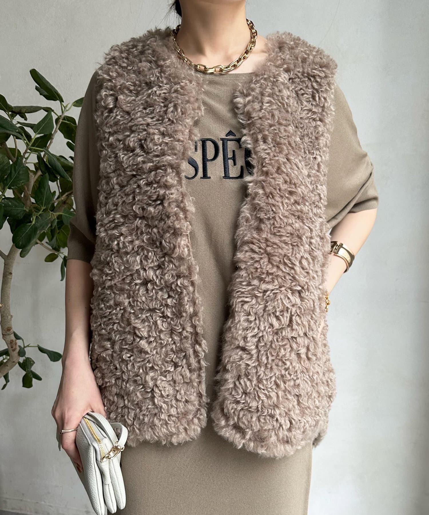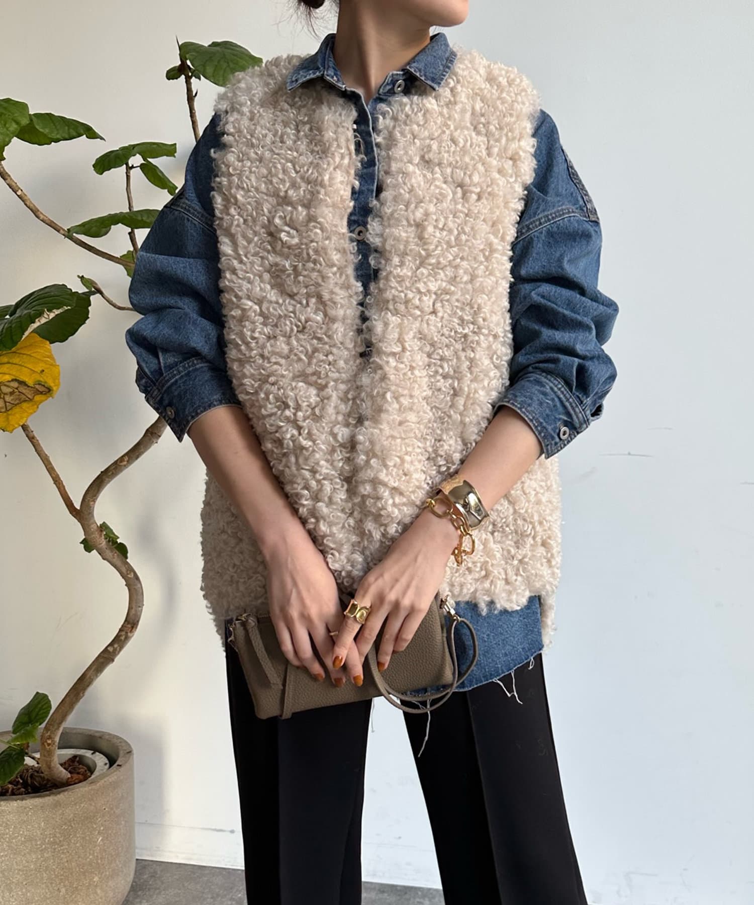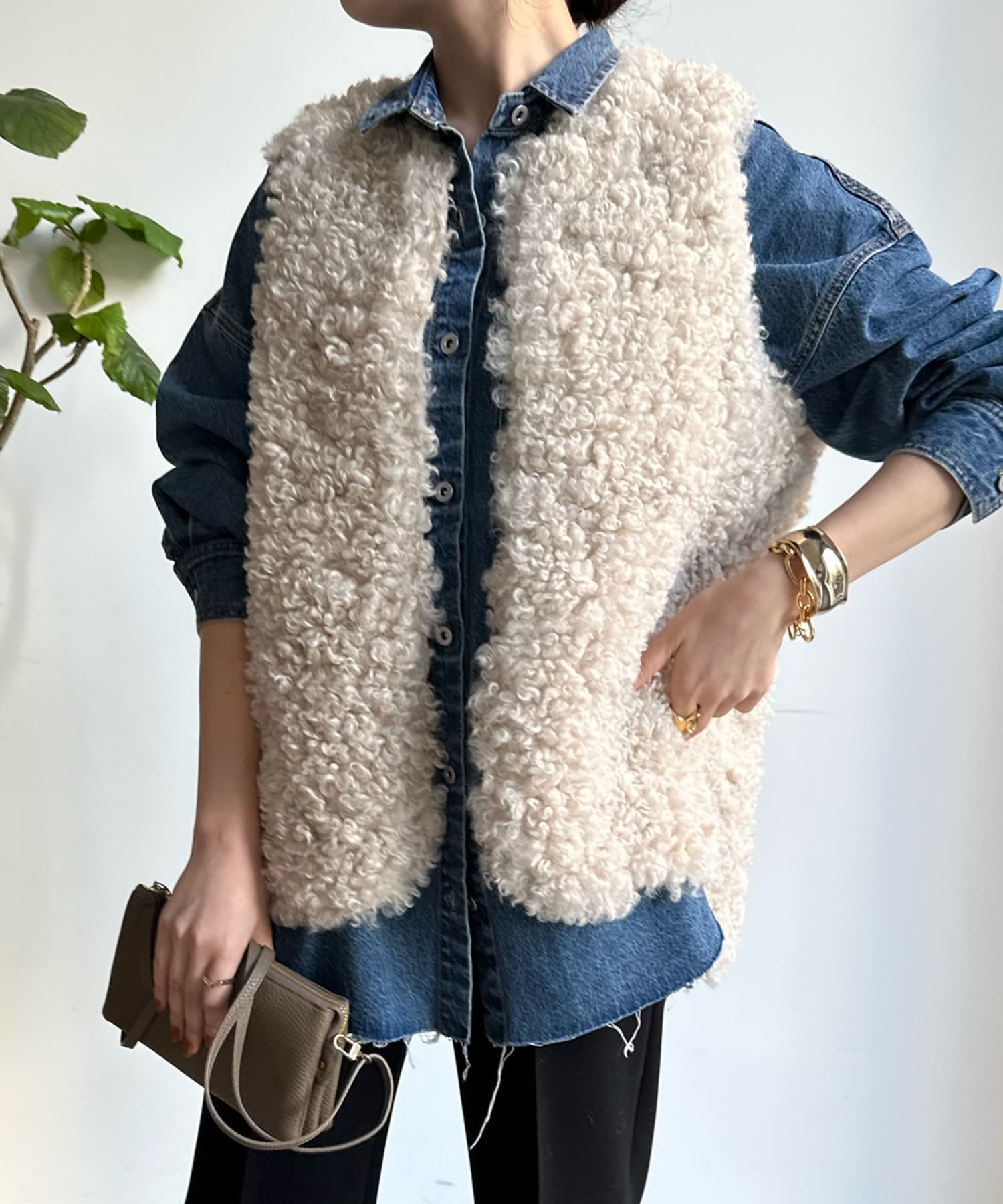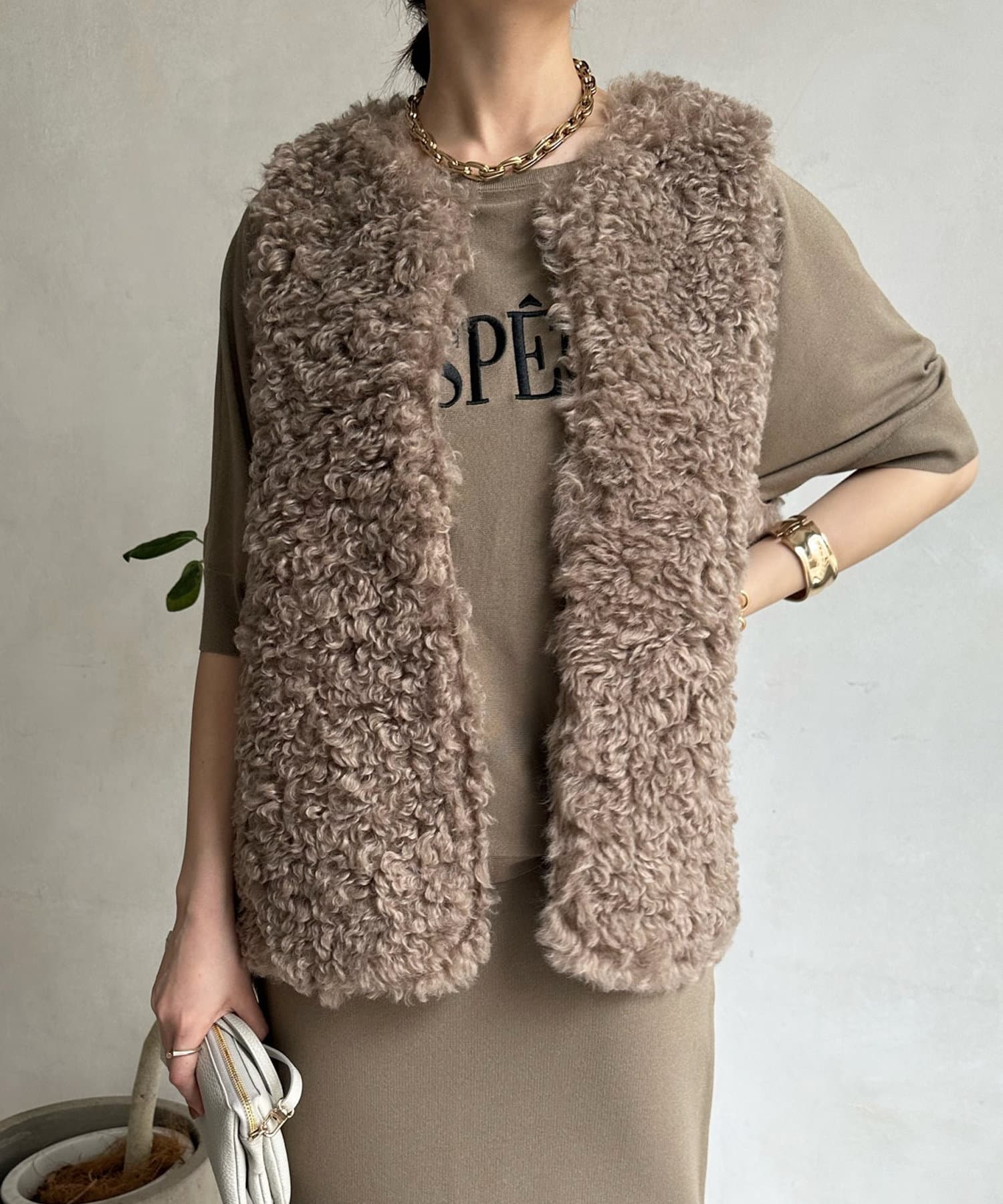 カーリーファーベストよりもさらにクルクルとした毛足が愛らしい1着。