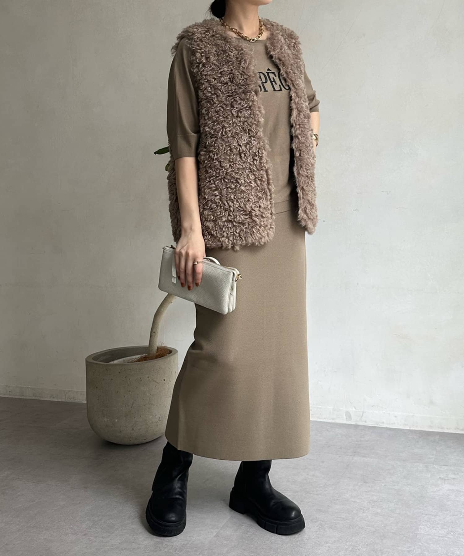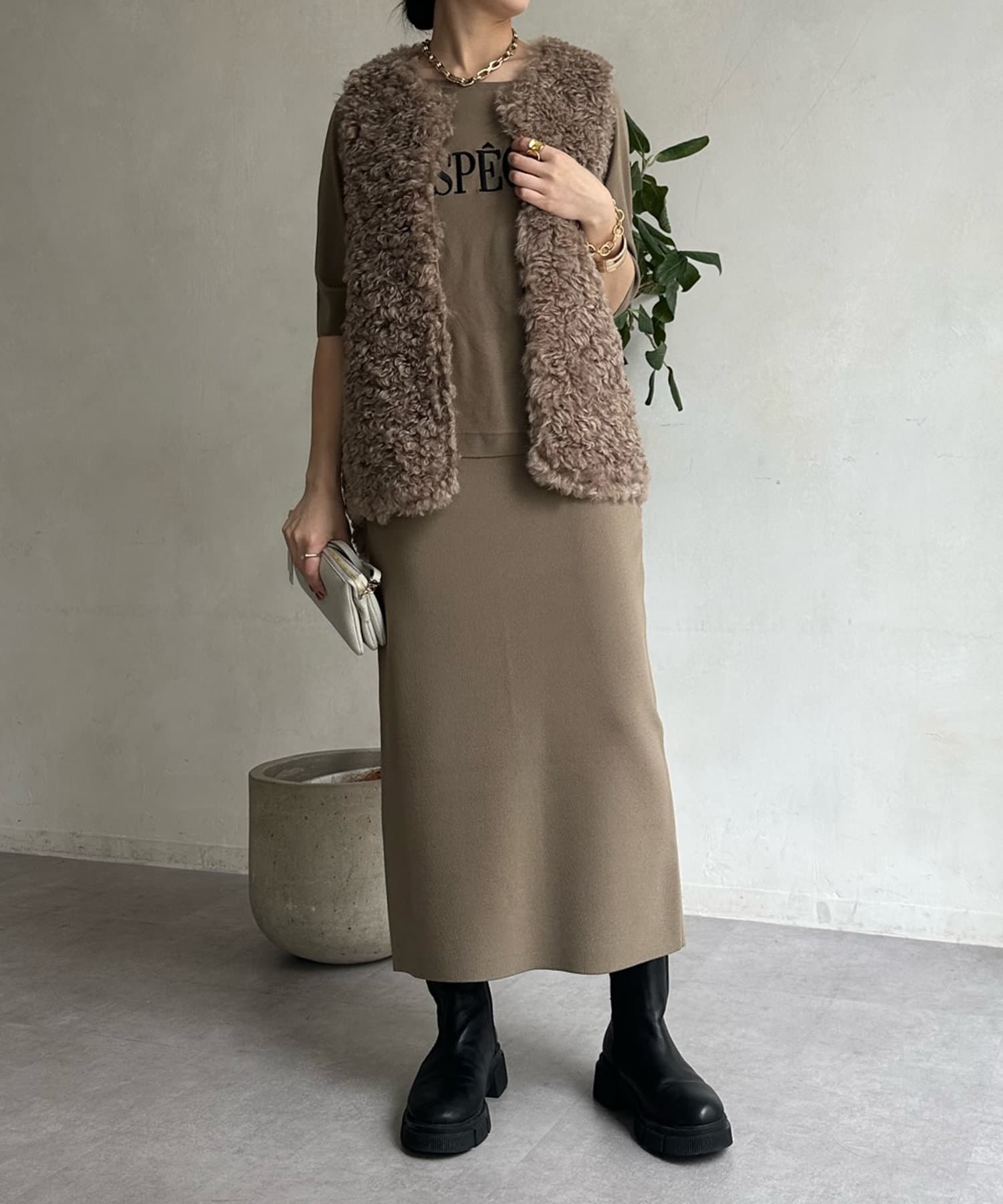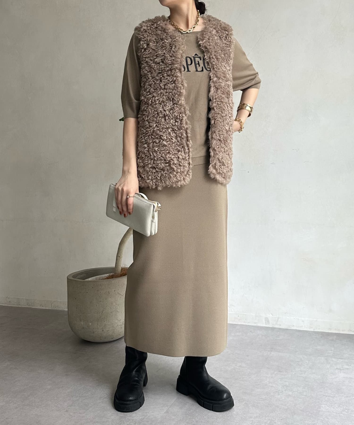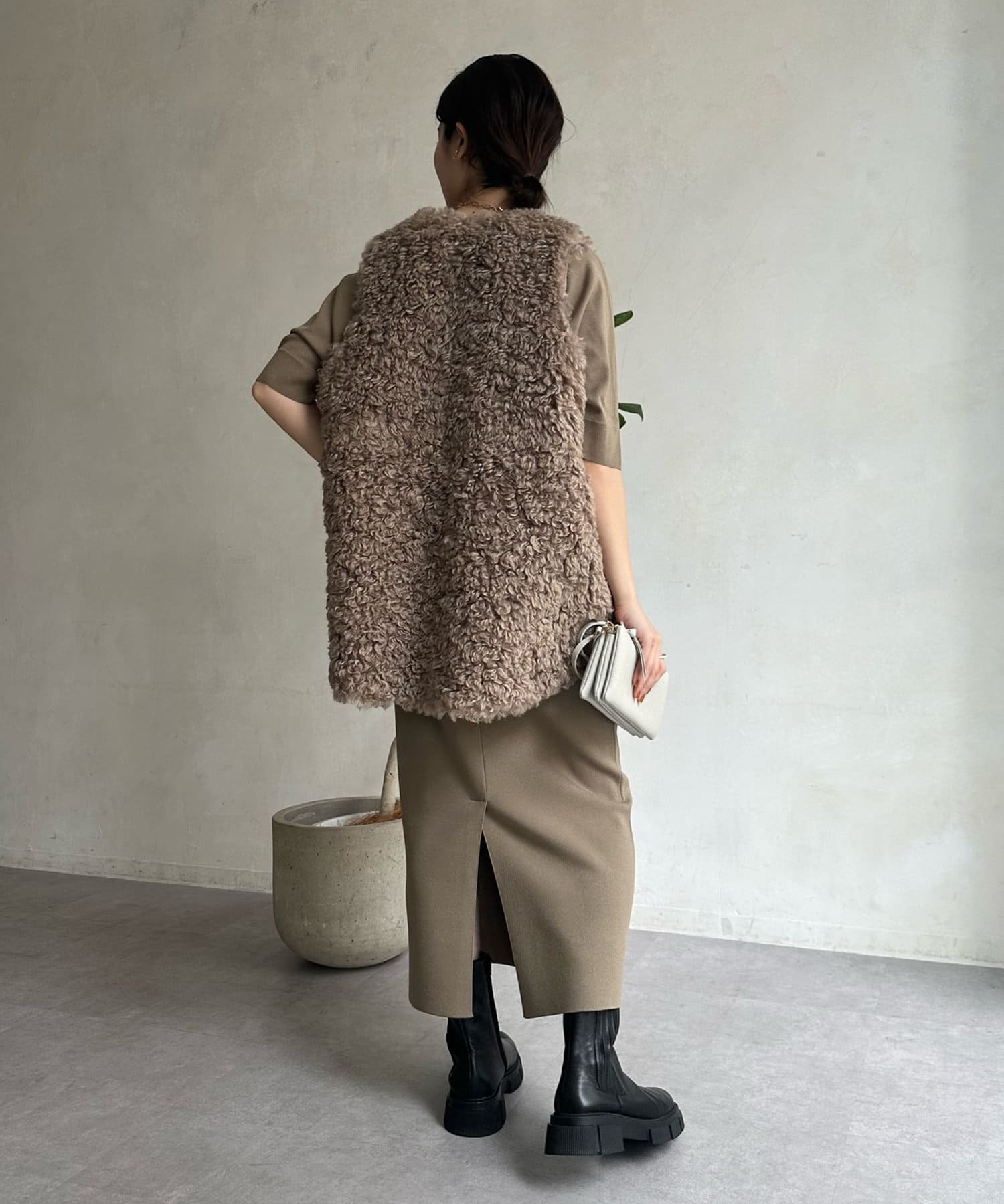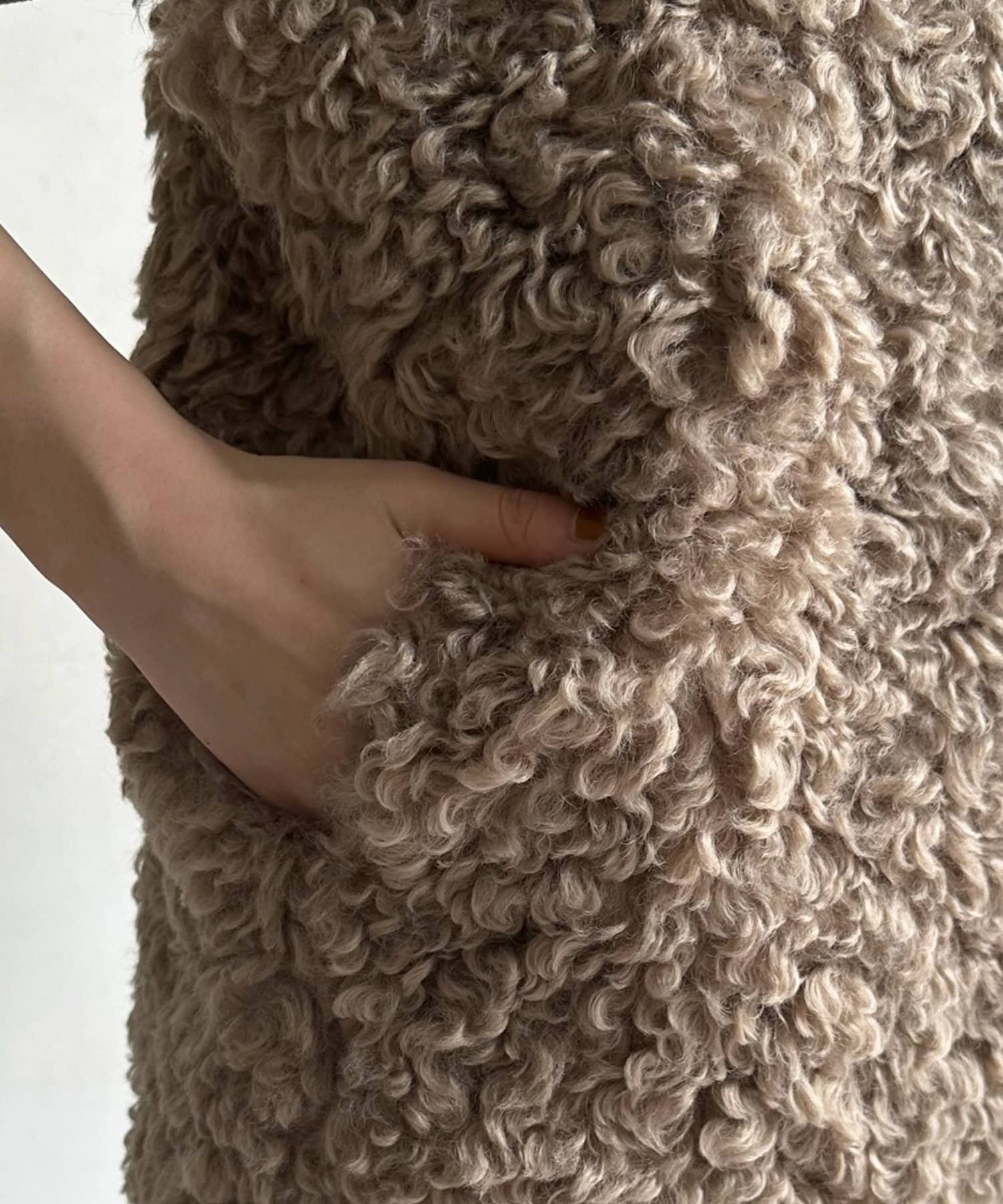 カーリーファーベストよりもさらにクルクルとした毛足が愛らしい1着。