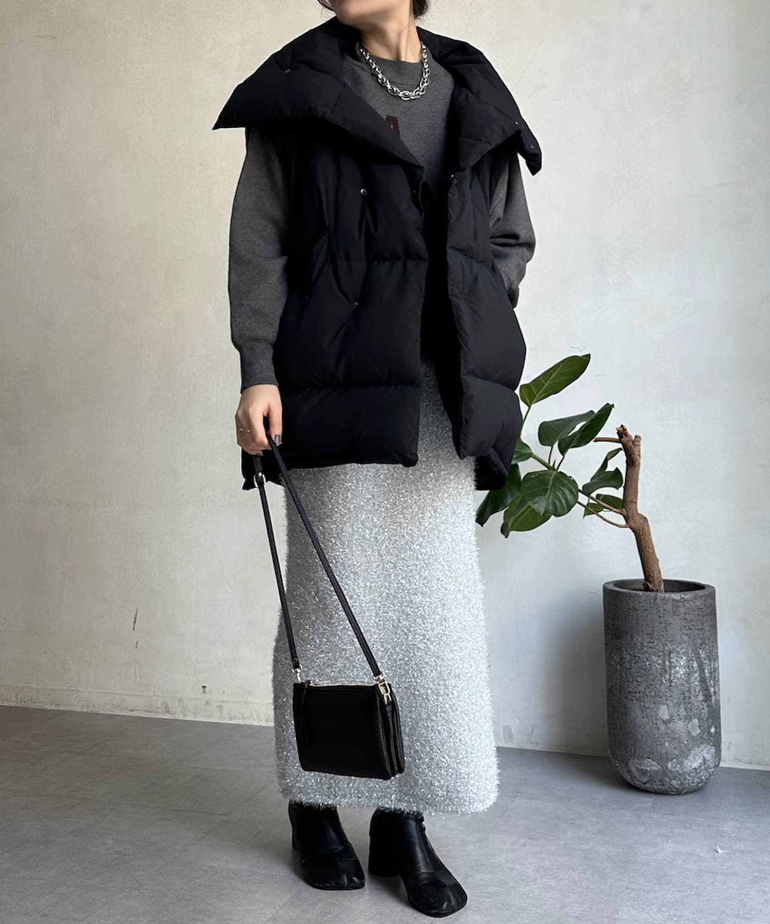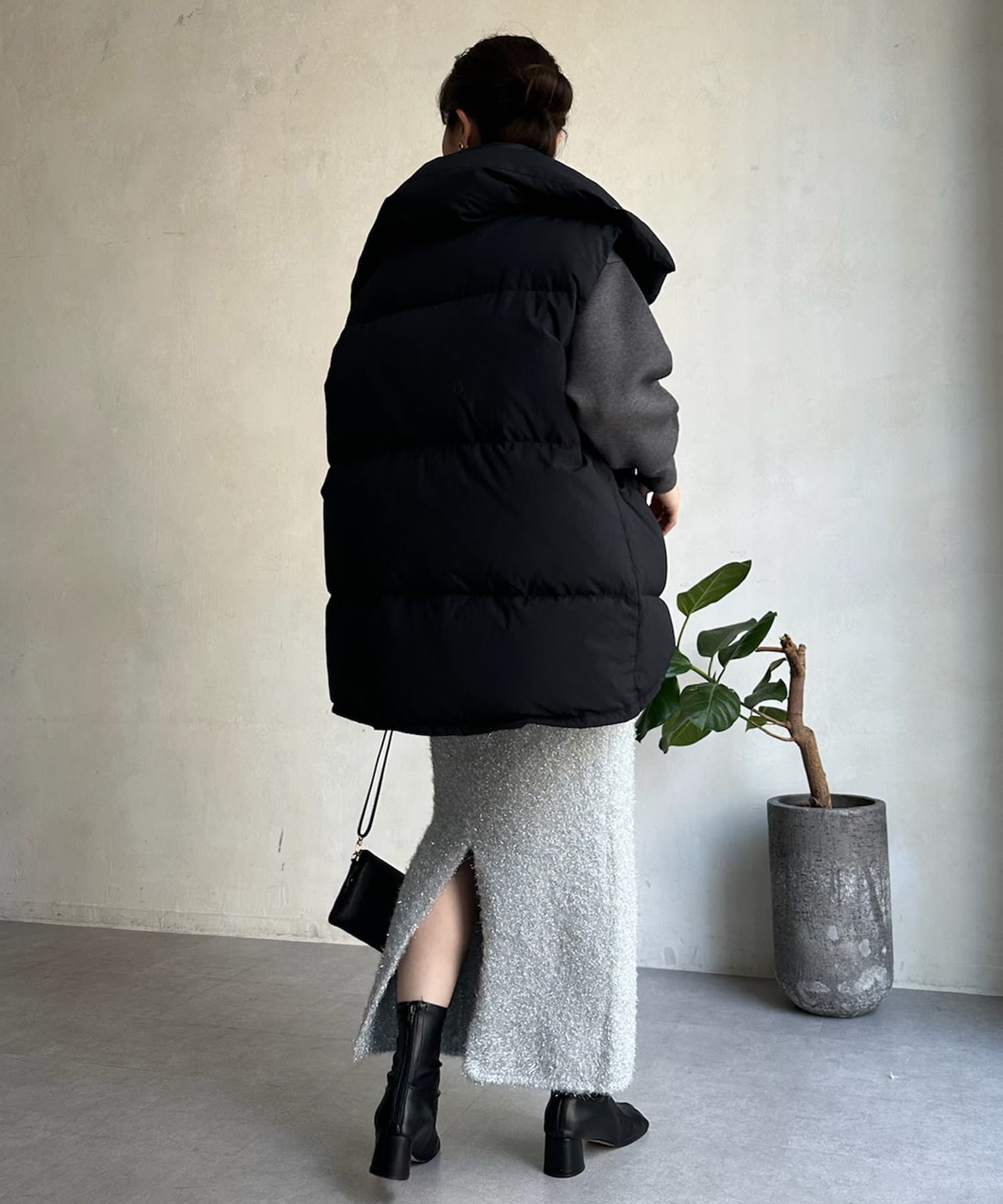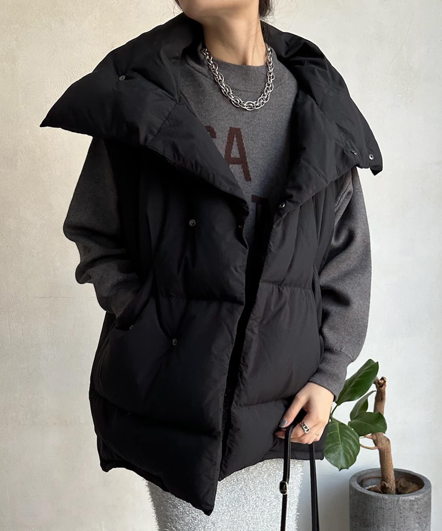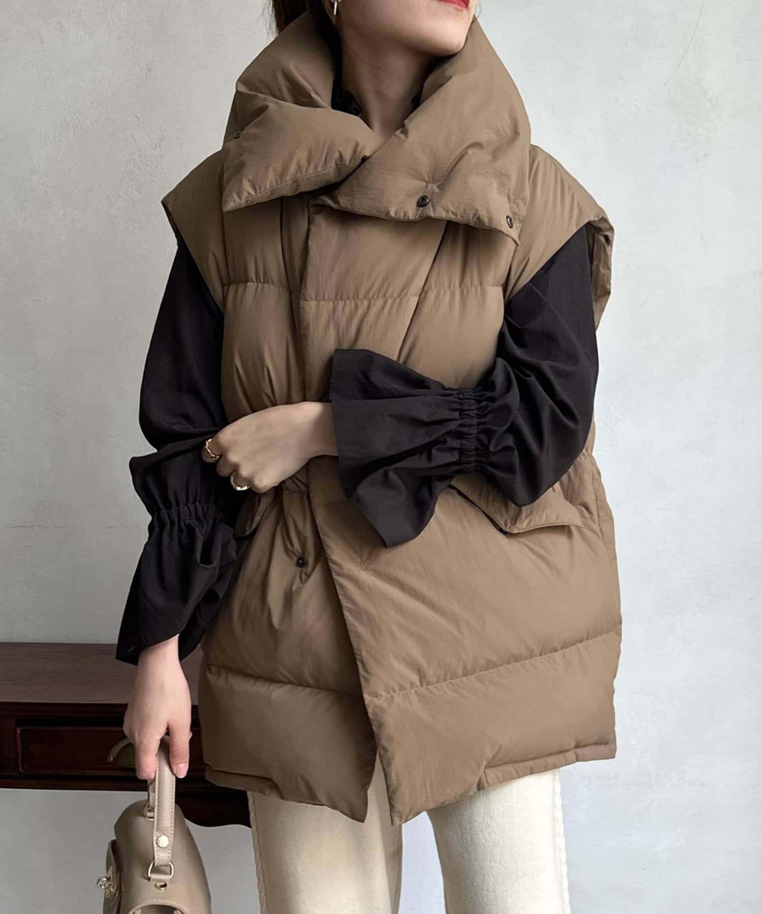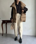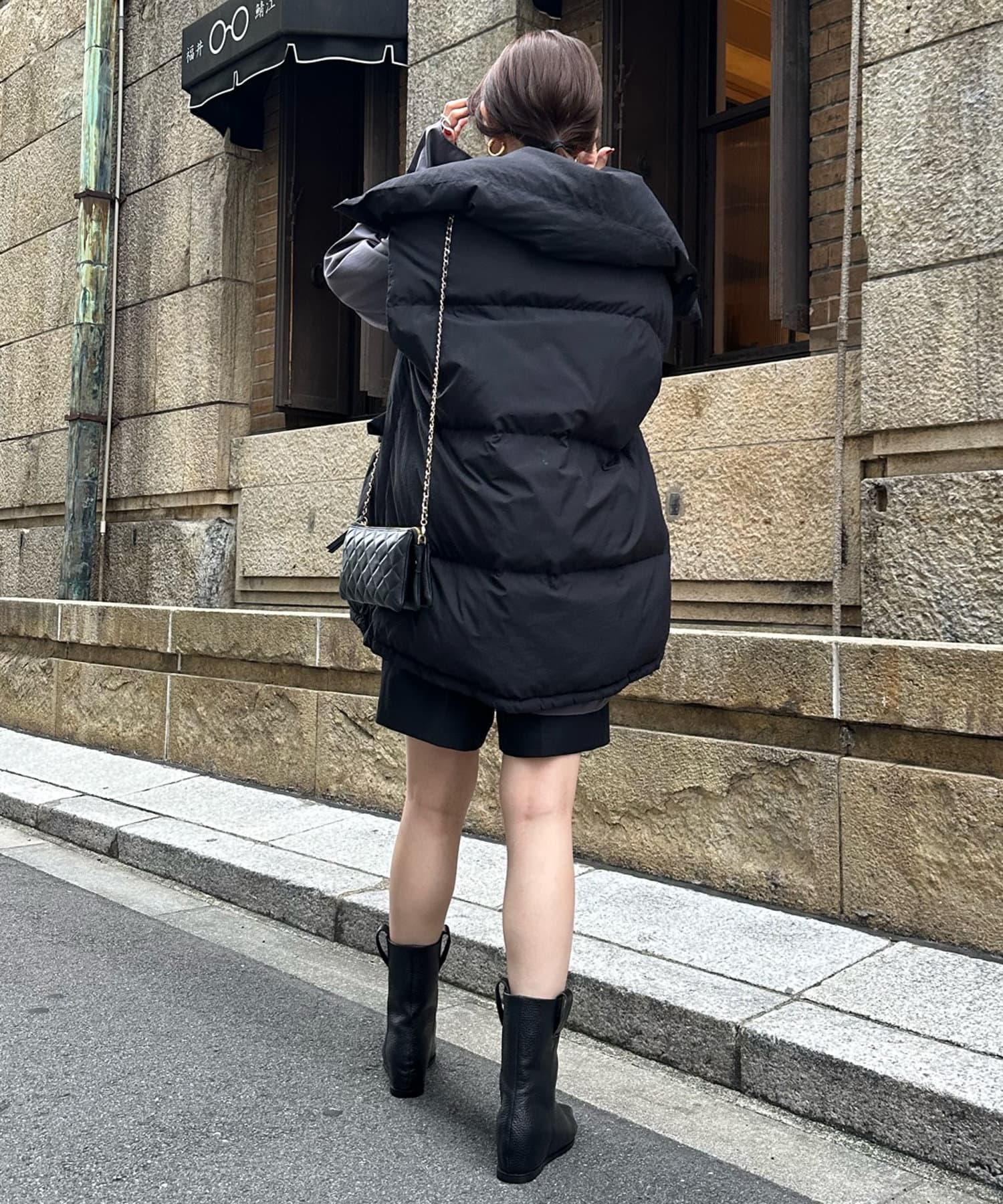 襟部分にボリュームがあるので首元も暖かく、アクセントとしてもトレンド感がでるアイテムになっていますよ!