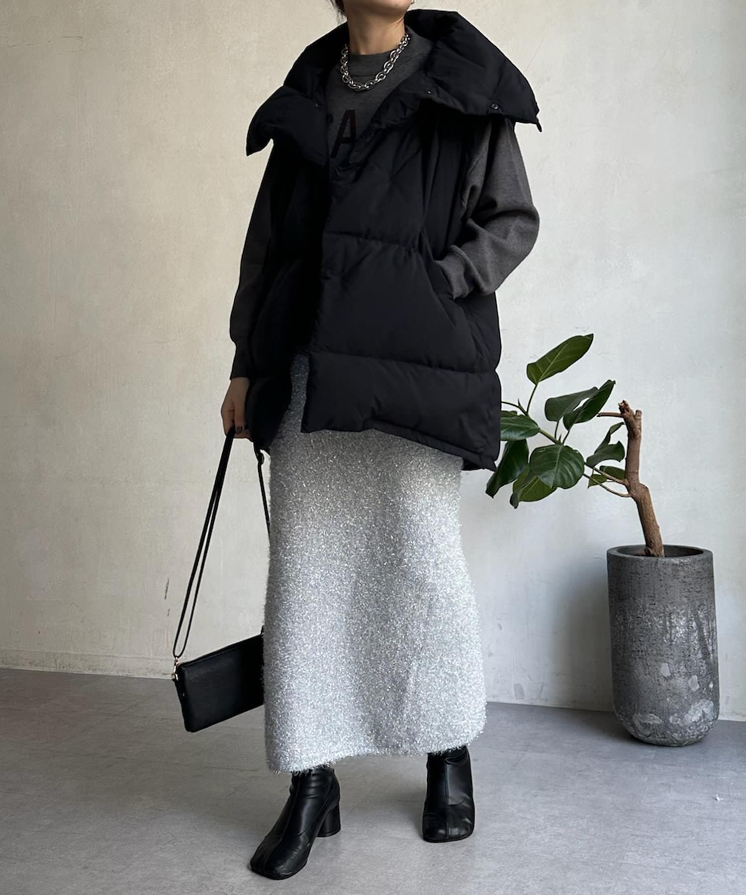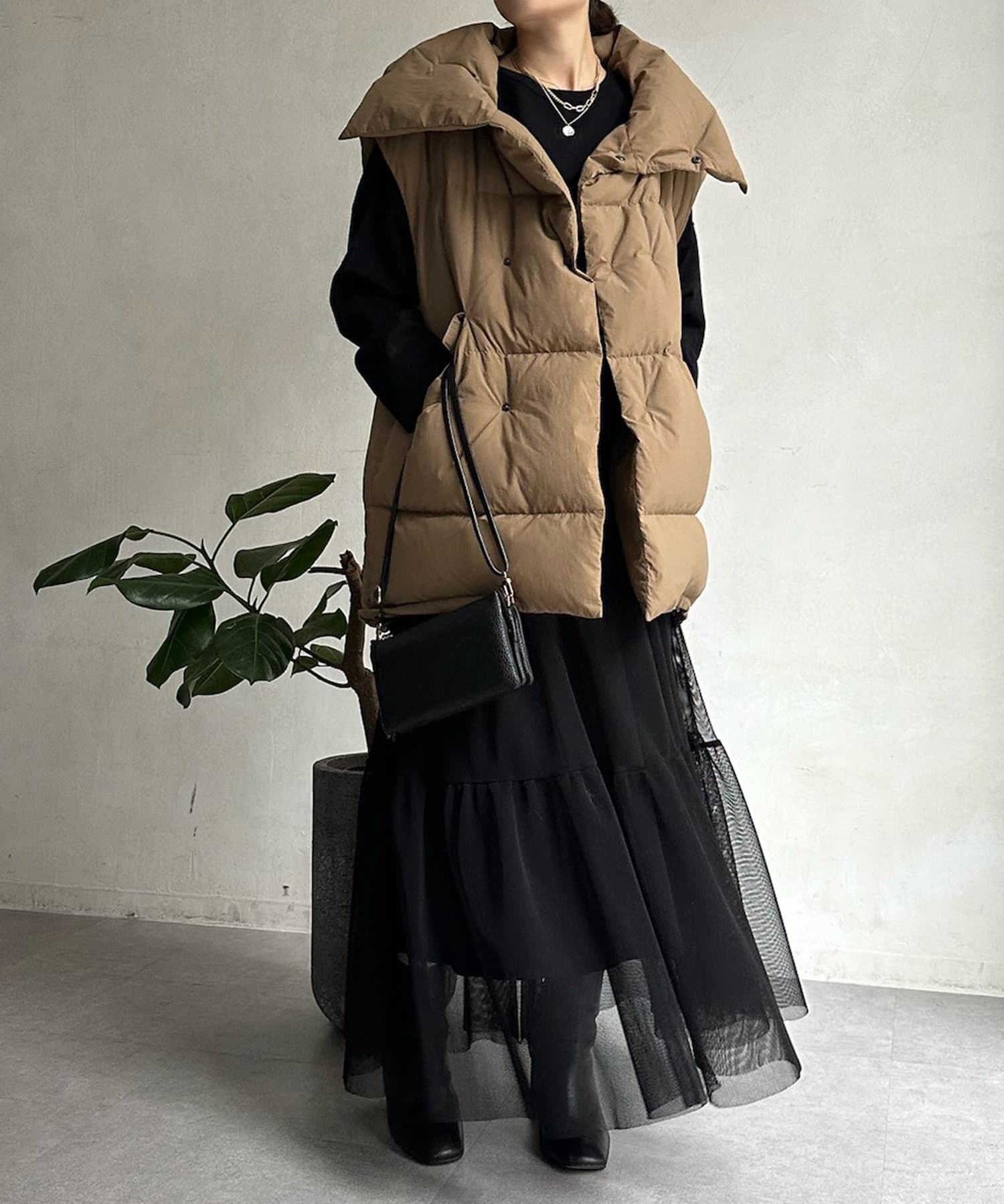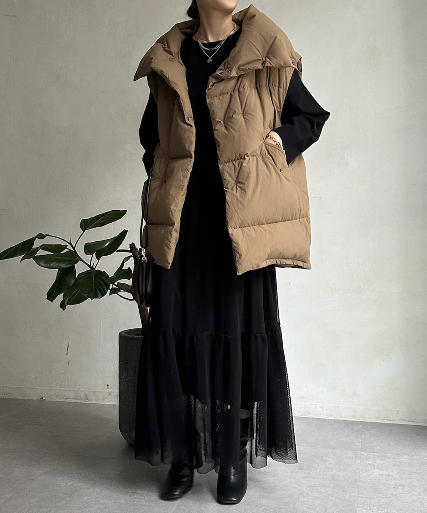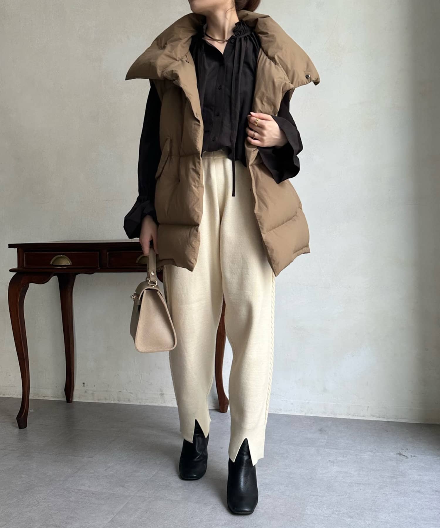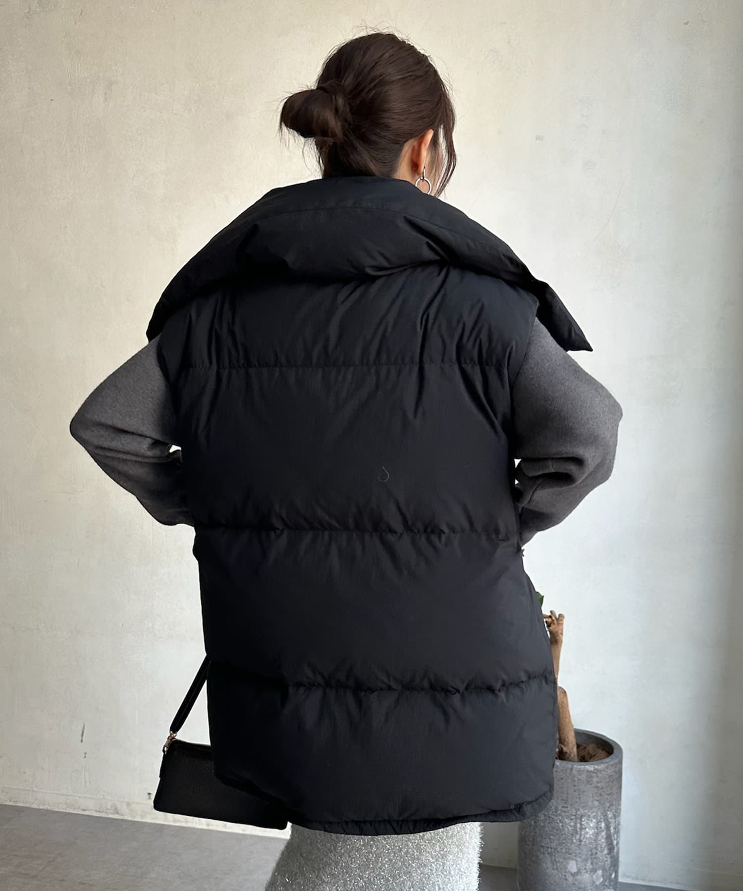 襟部分にボリュームがあるので首元も暖かく、アクセントとしてもトレンド感がでるアイテムになっていますよ!