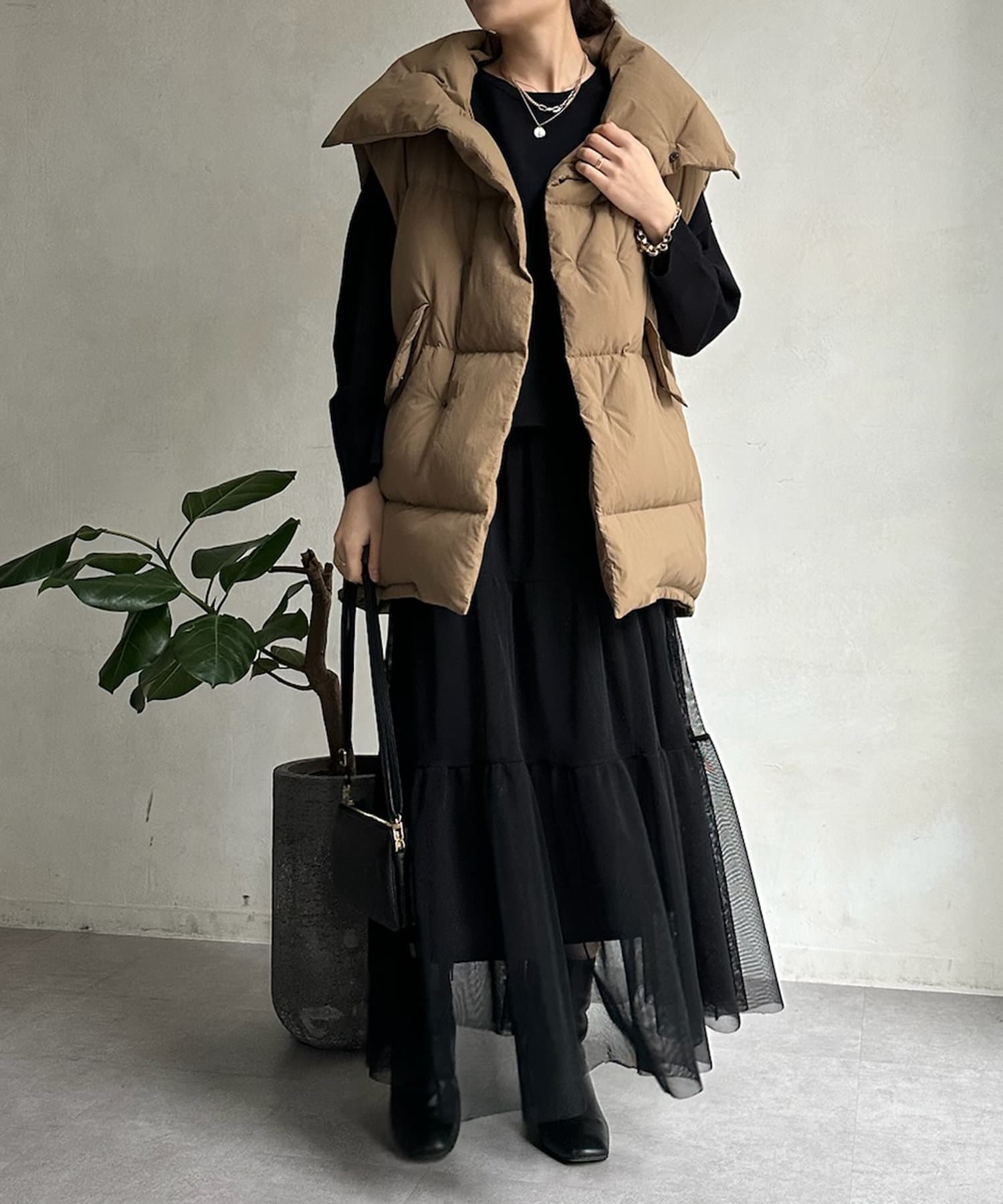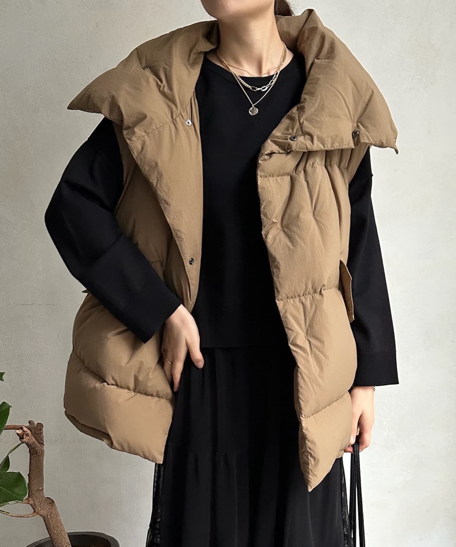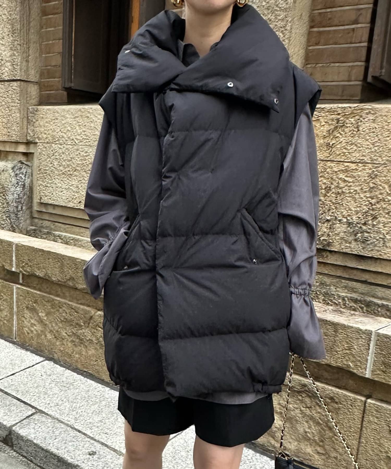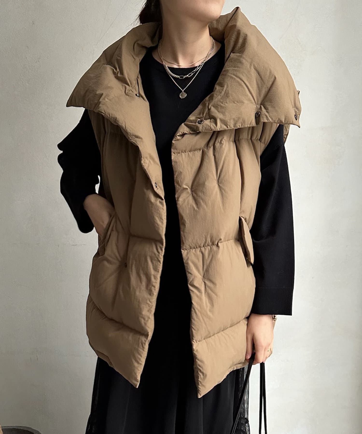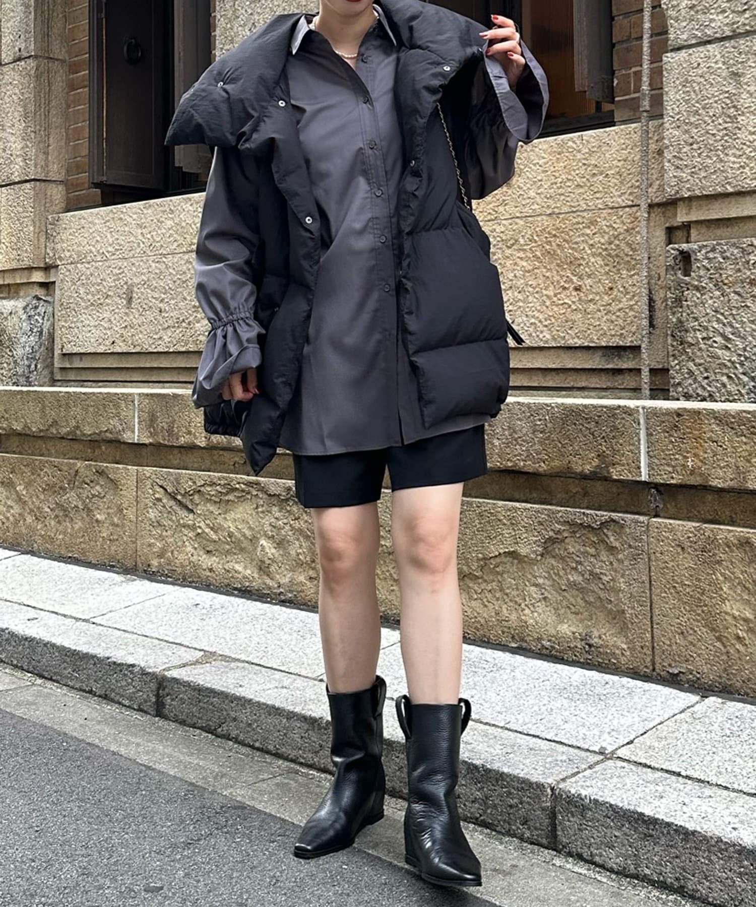 襟部分にボリュームがあるので首元も暖かく、アクセントとしてもトレンド感がでるアイテムになっていますよ!