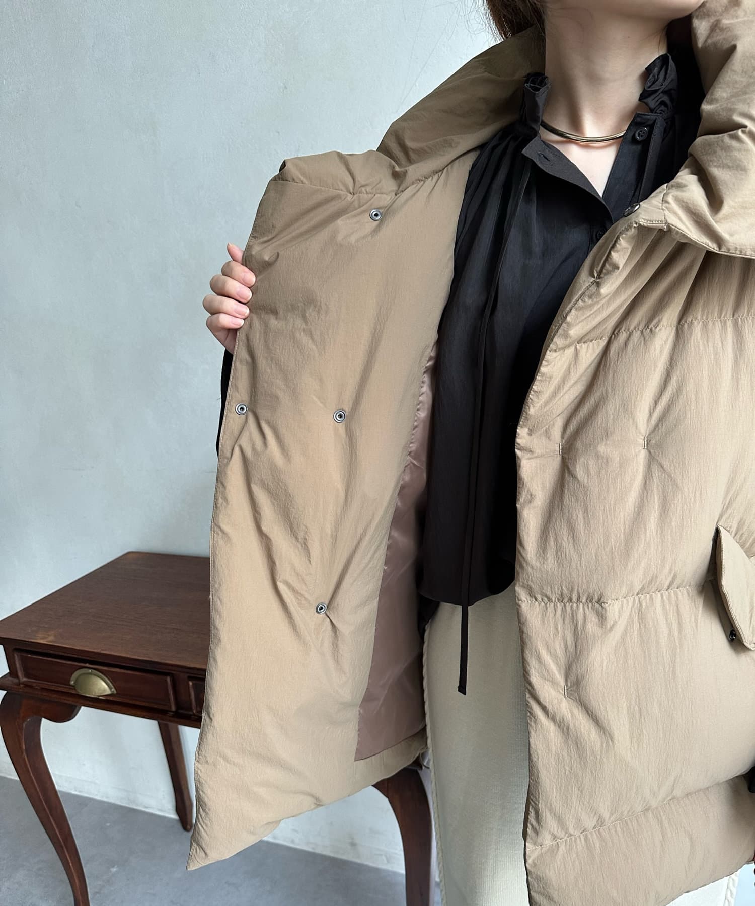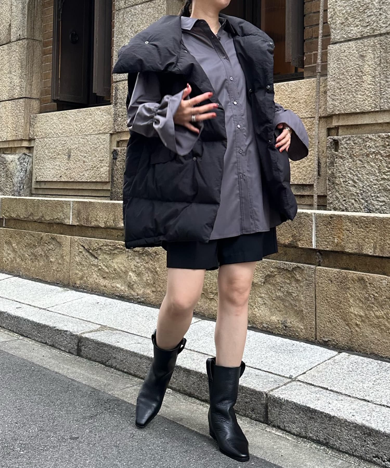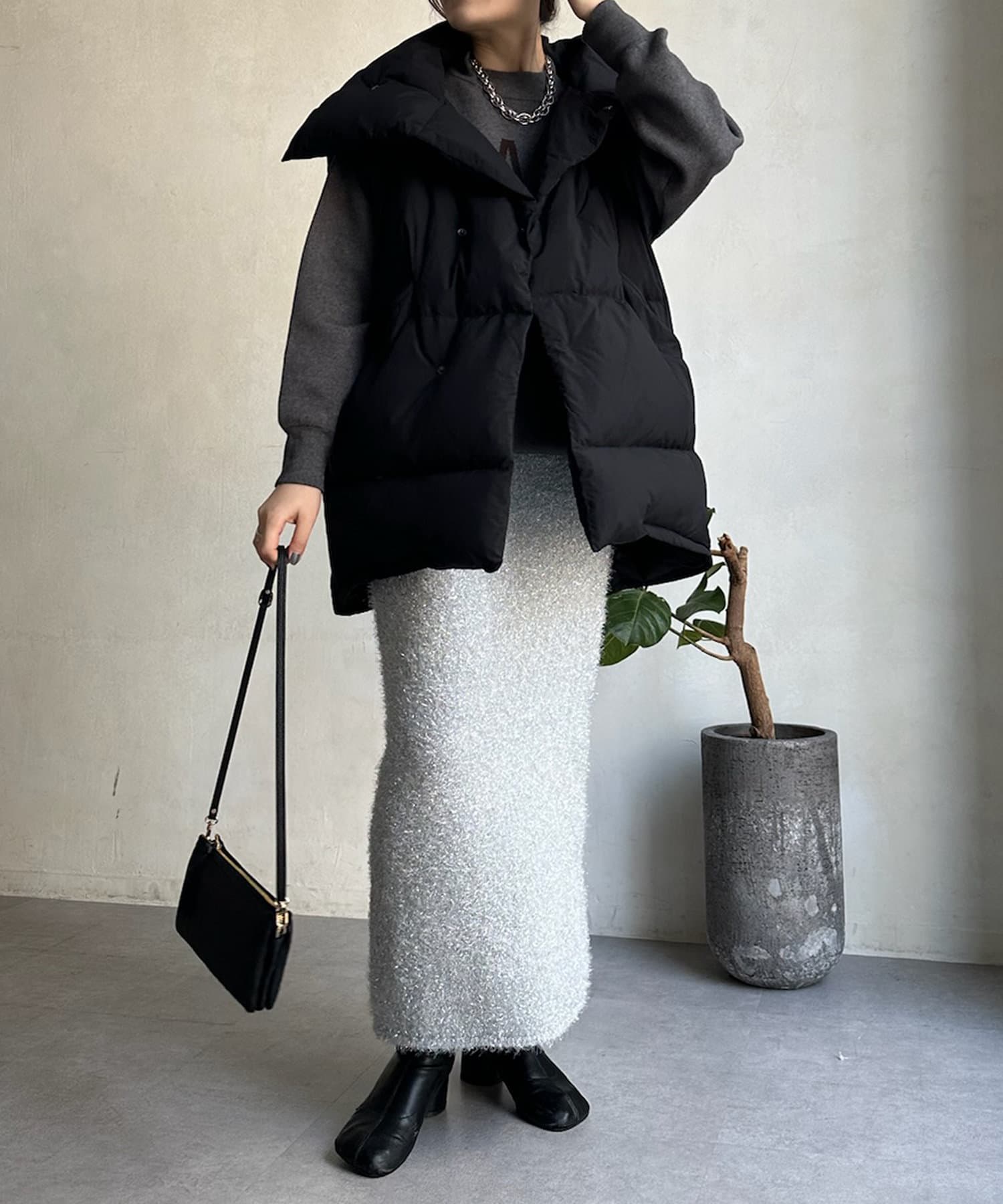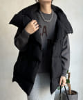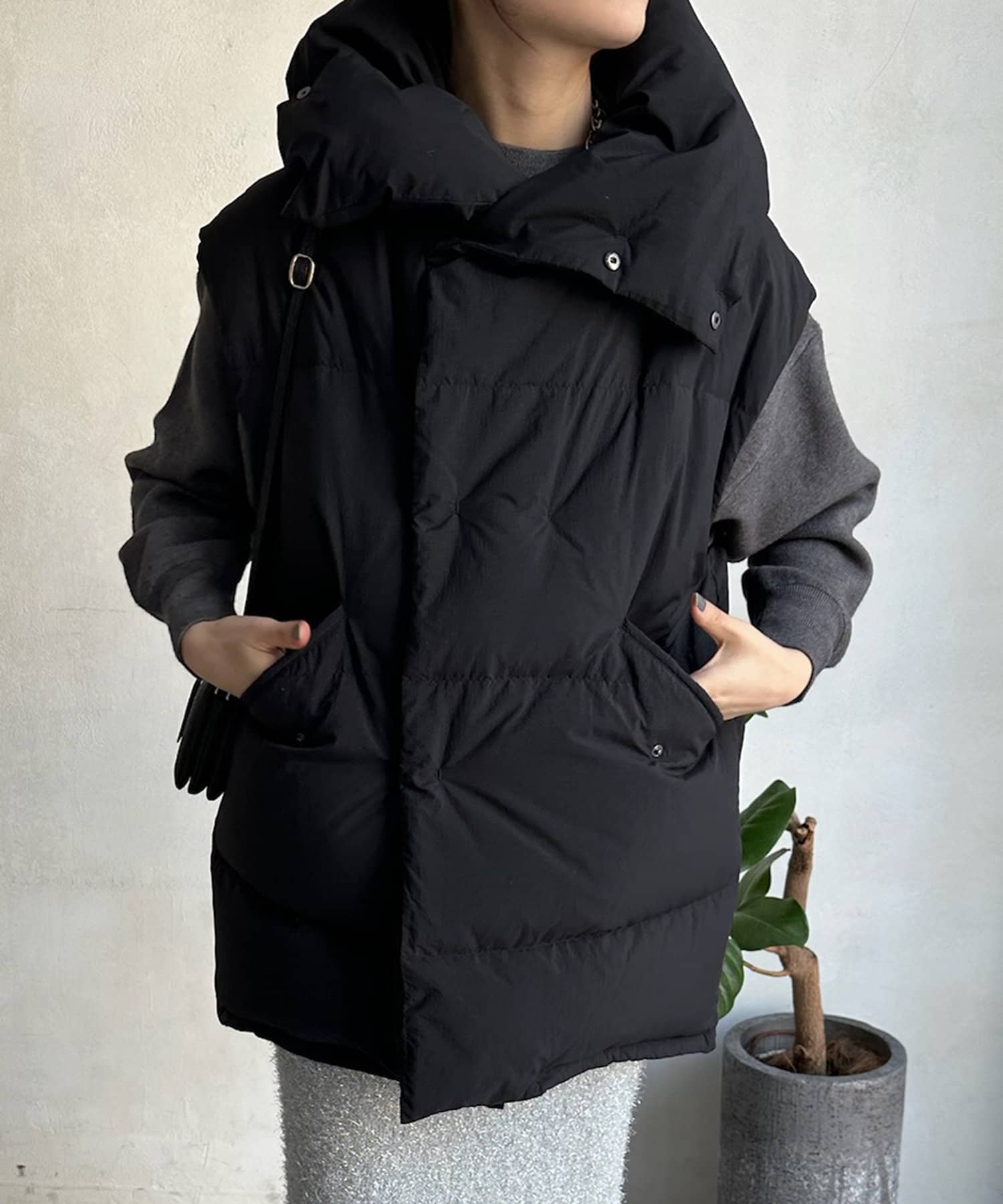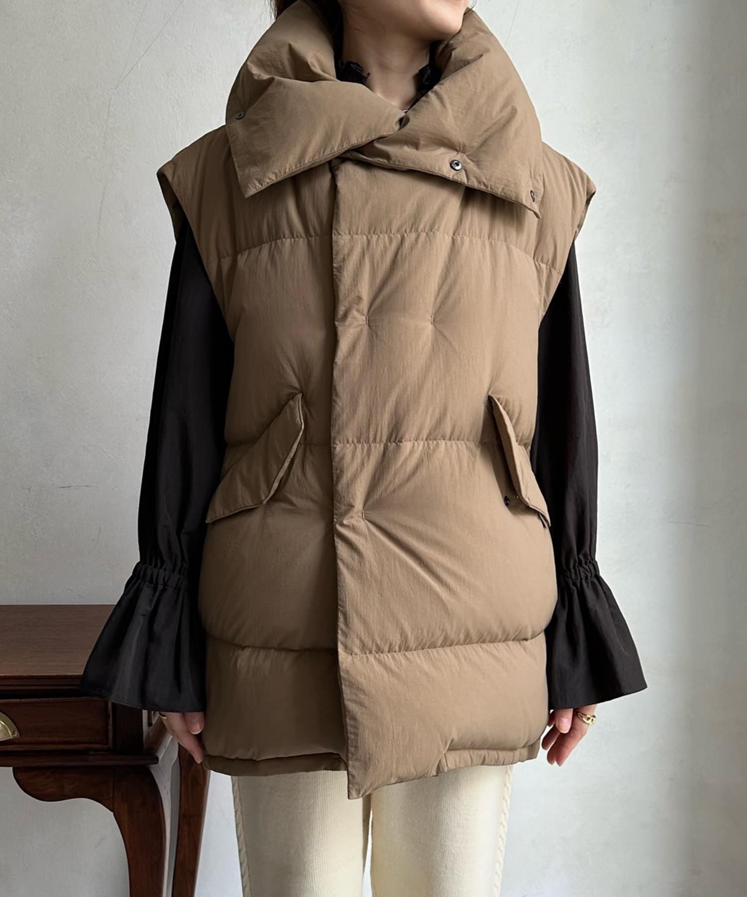 襟部分にボリュームがあるので首元も暖かく、アクセントとしてもトレンド感がでるアイテムになっていますよ!