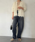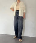 カーディガンのようなラフさと、ポケットやボタンの仕様でジャケットのようなきちんと感のあるバランスがおしゃれな印象に。