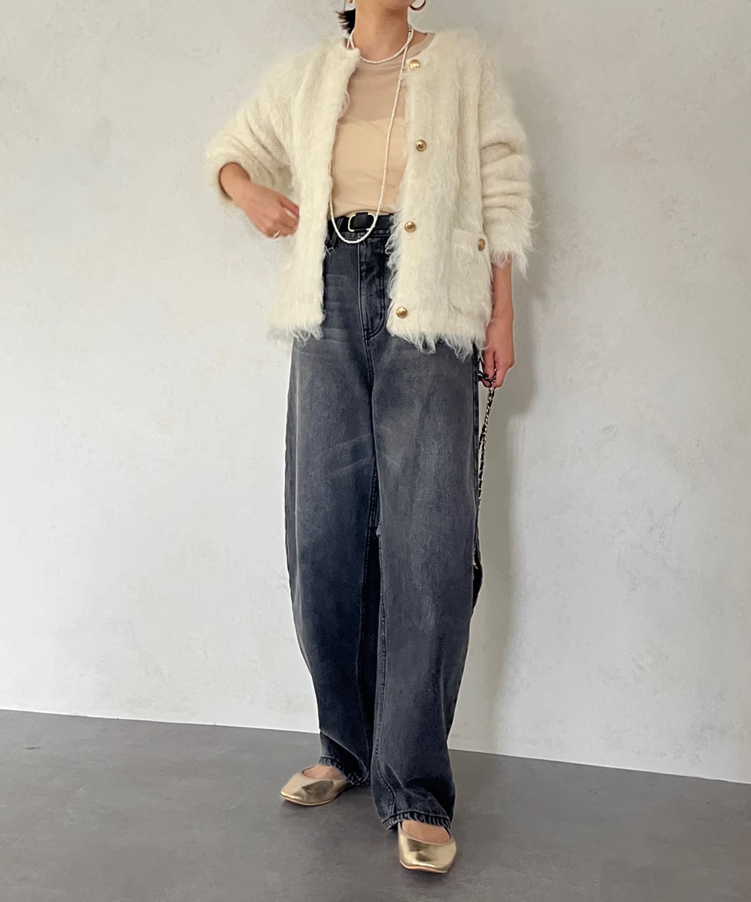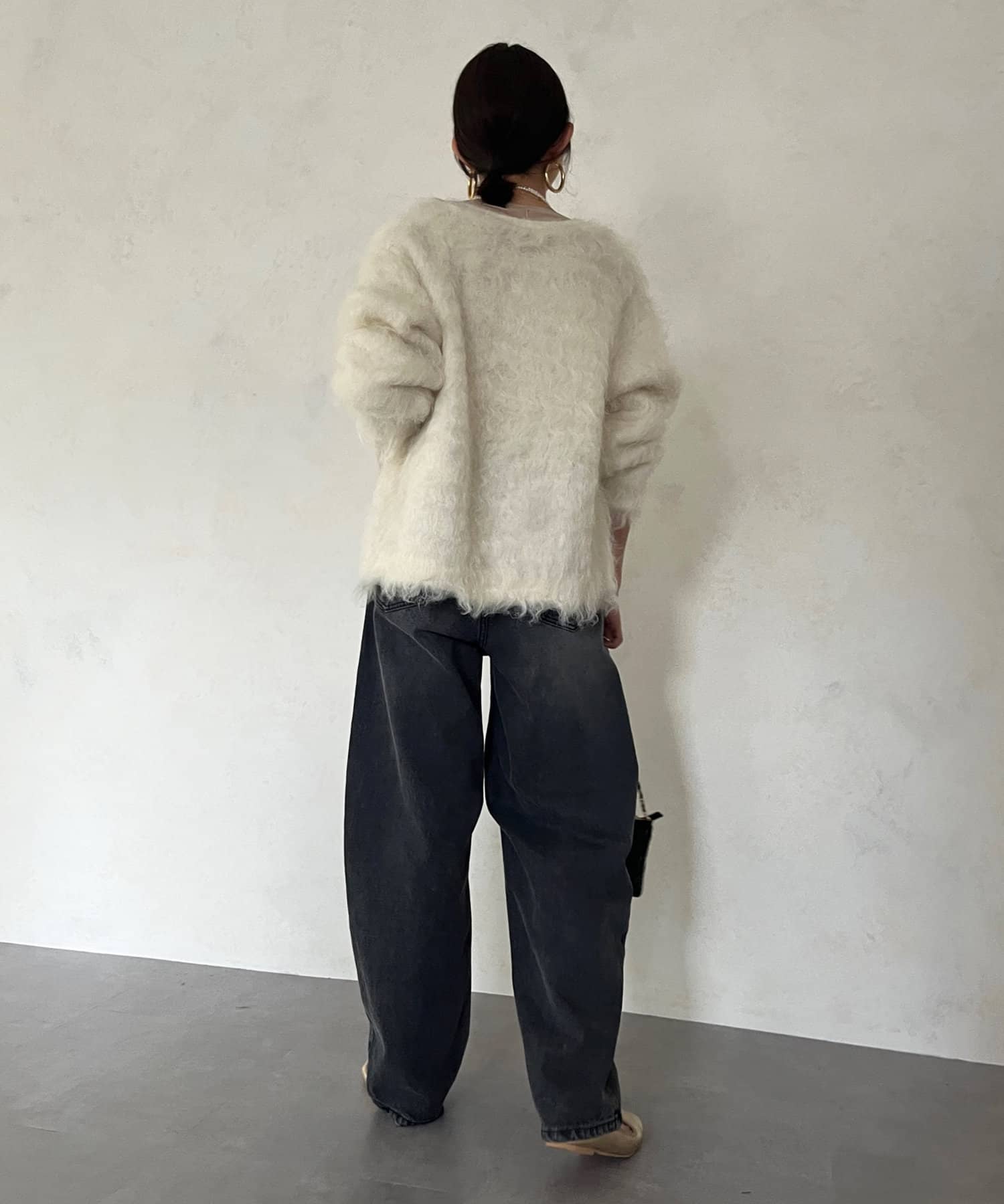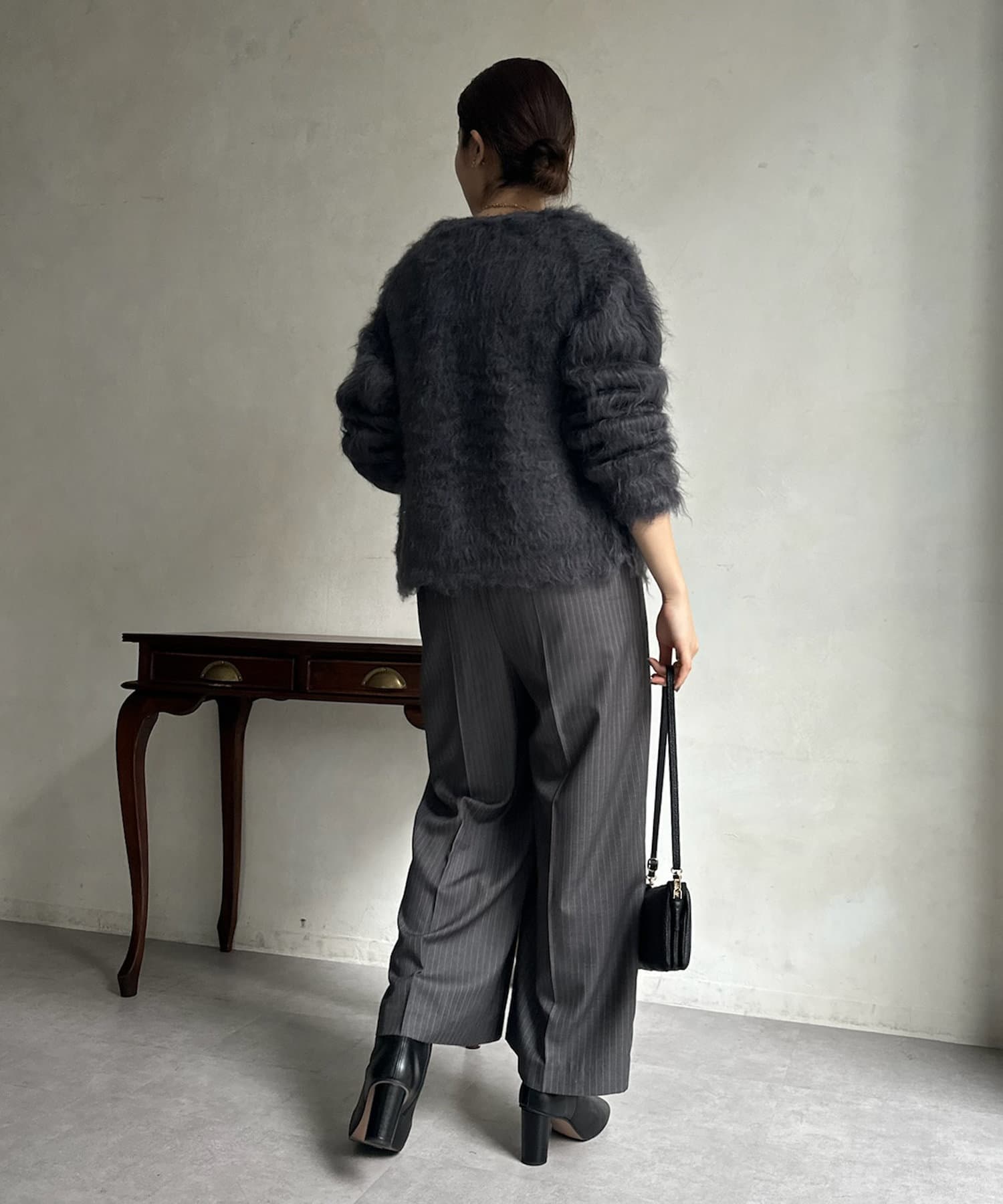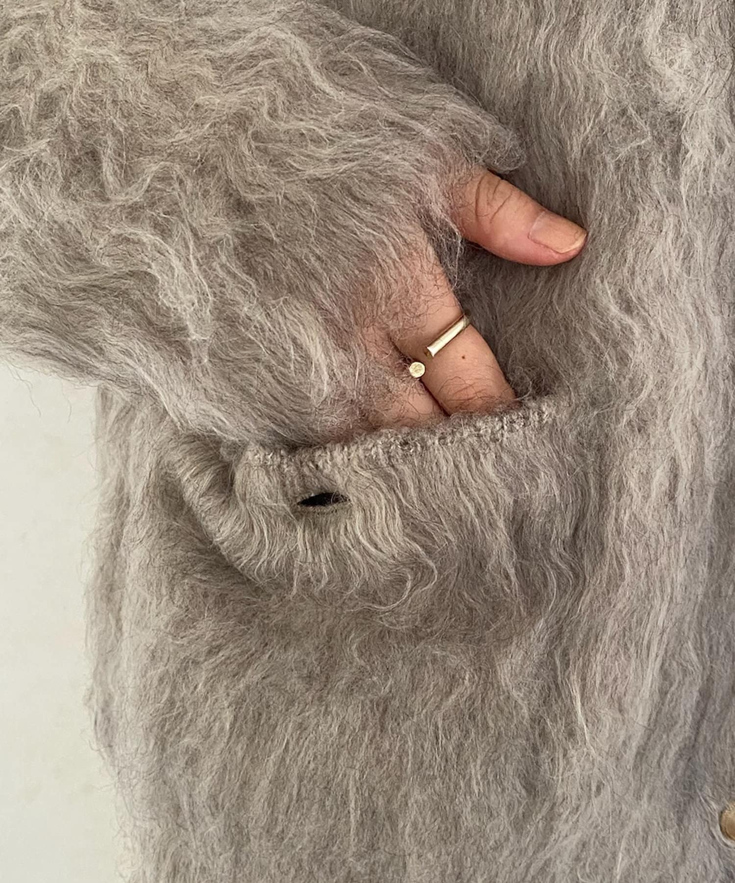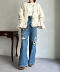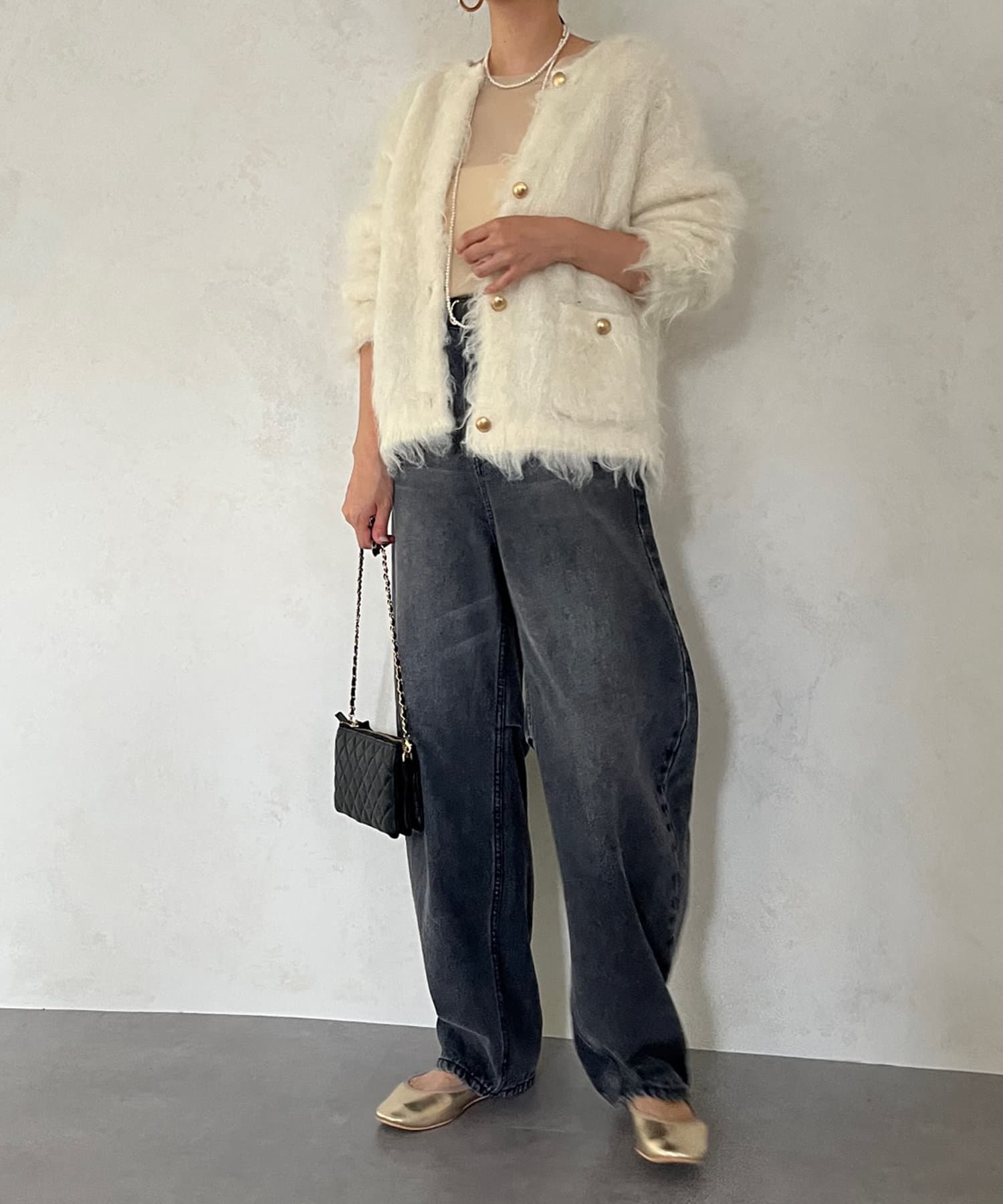 今年気になる毛足感のあるシャギーニットで仕上げた、ニットジャケット。