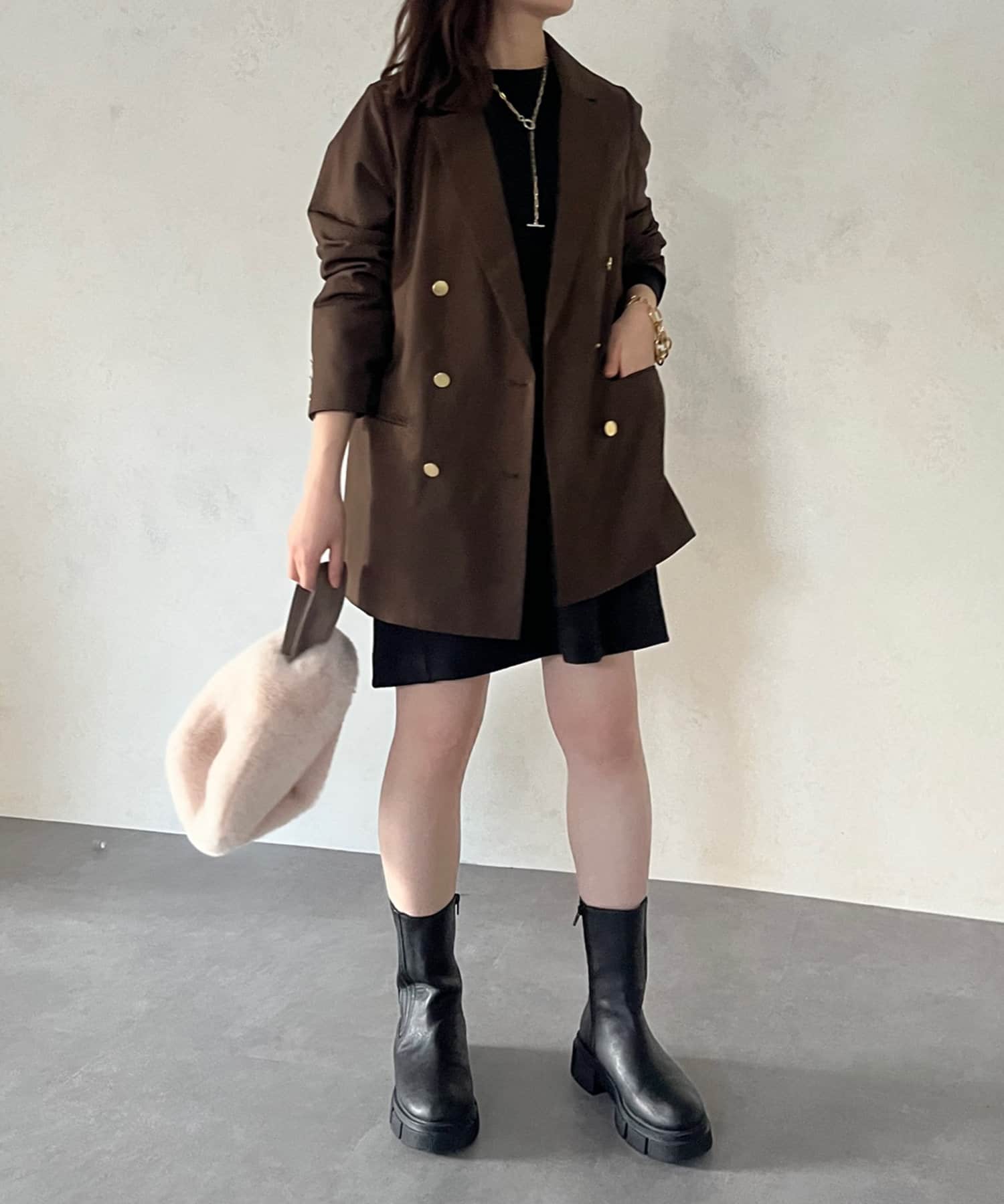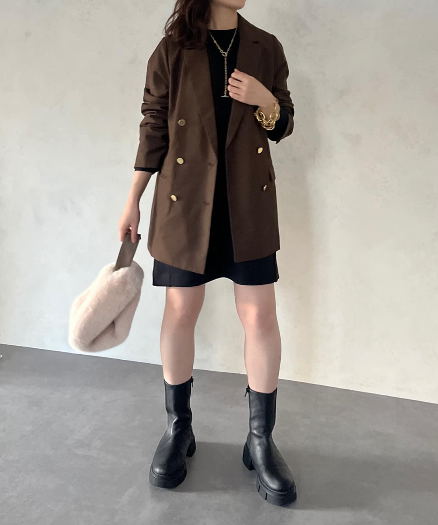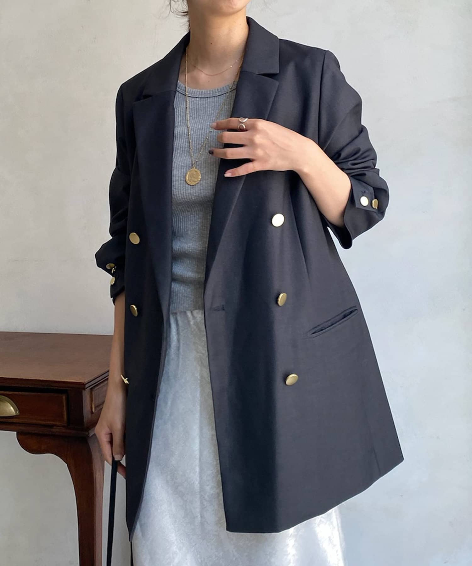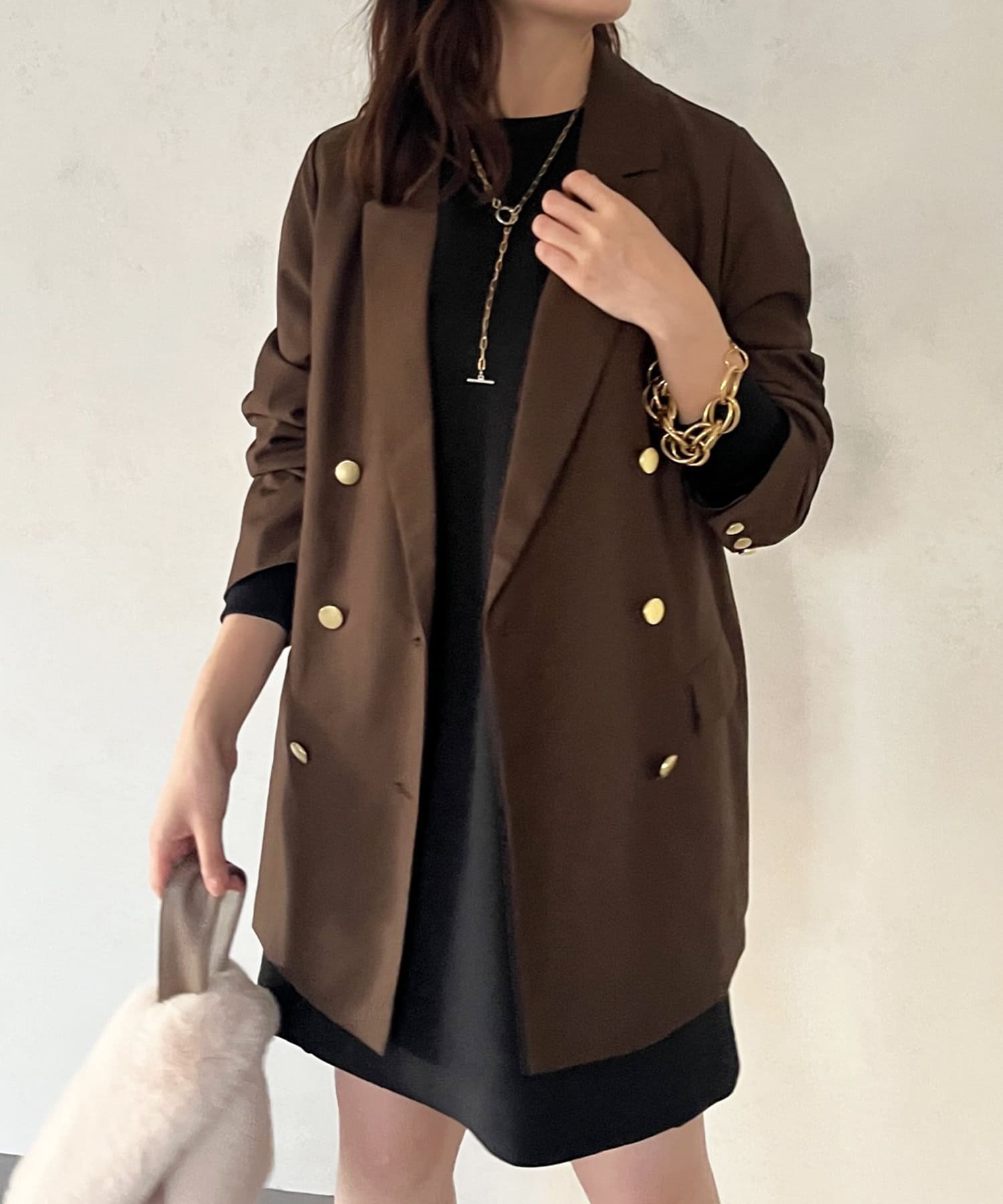 そして、シンプルなボディに際立つゴールドのボタンは、スタイリングのアクセントとなってくれます。