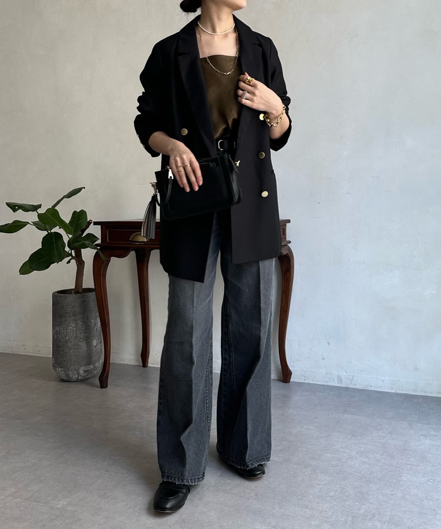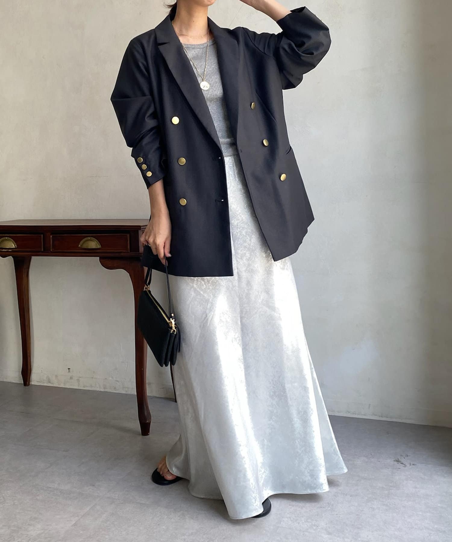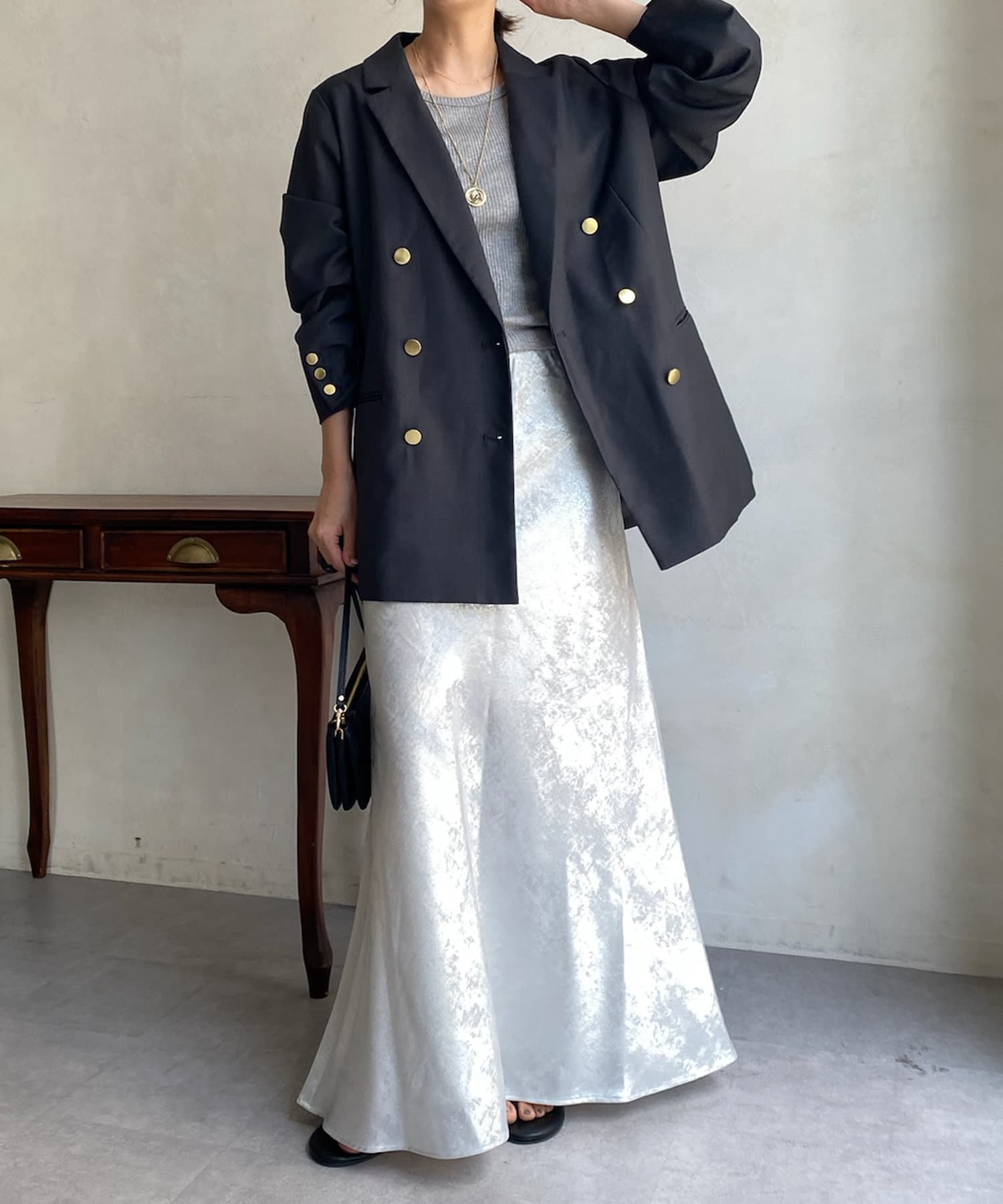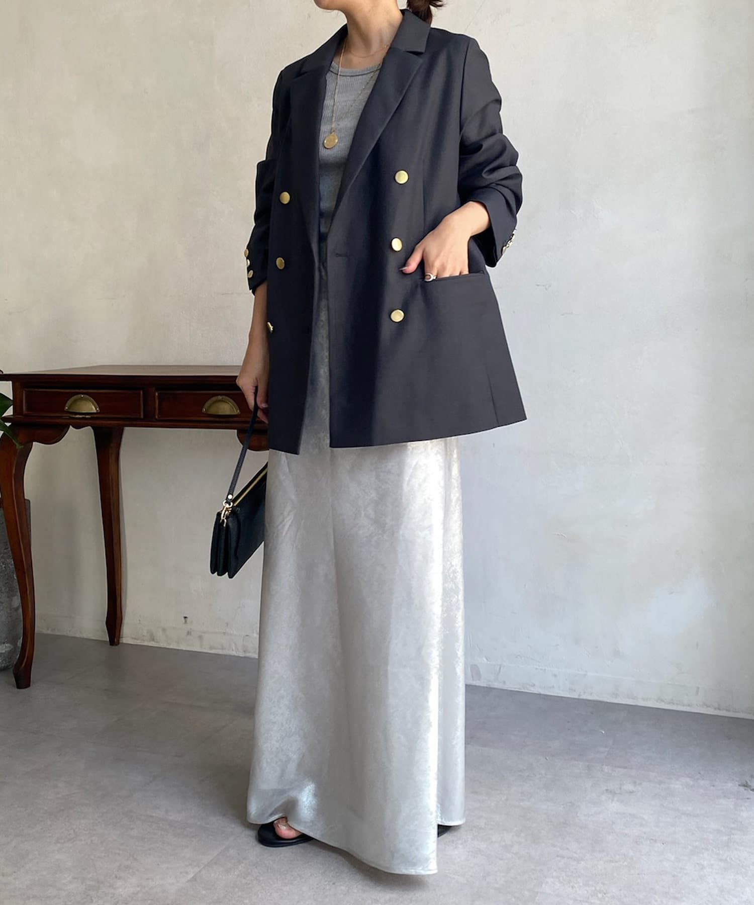 やや大きめのサイジングでありながら、肩のラインは落とさないことで華奢見せ効果をプラス。