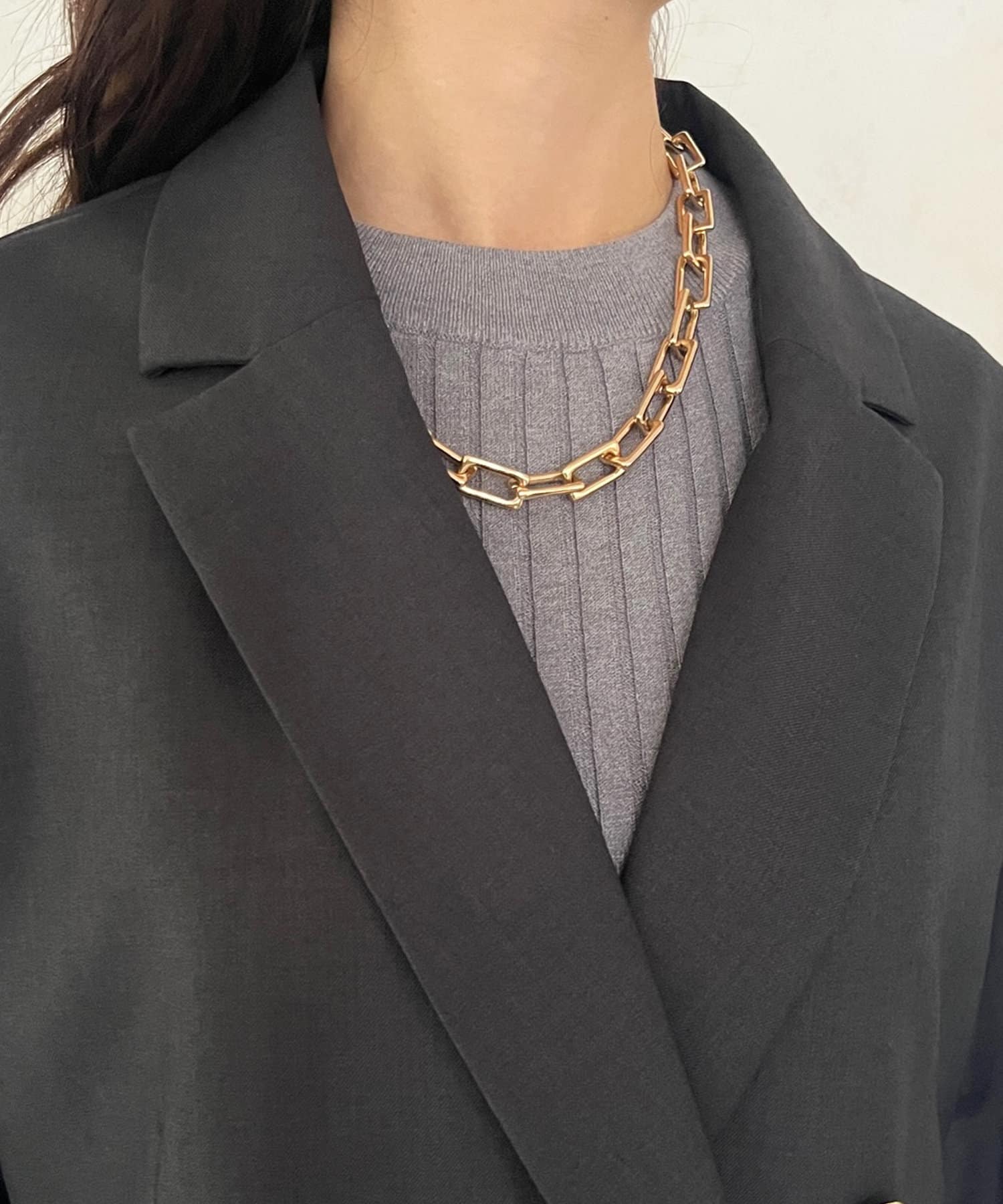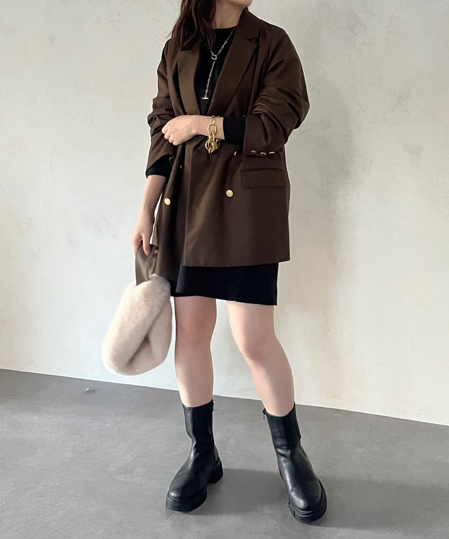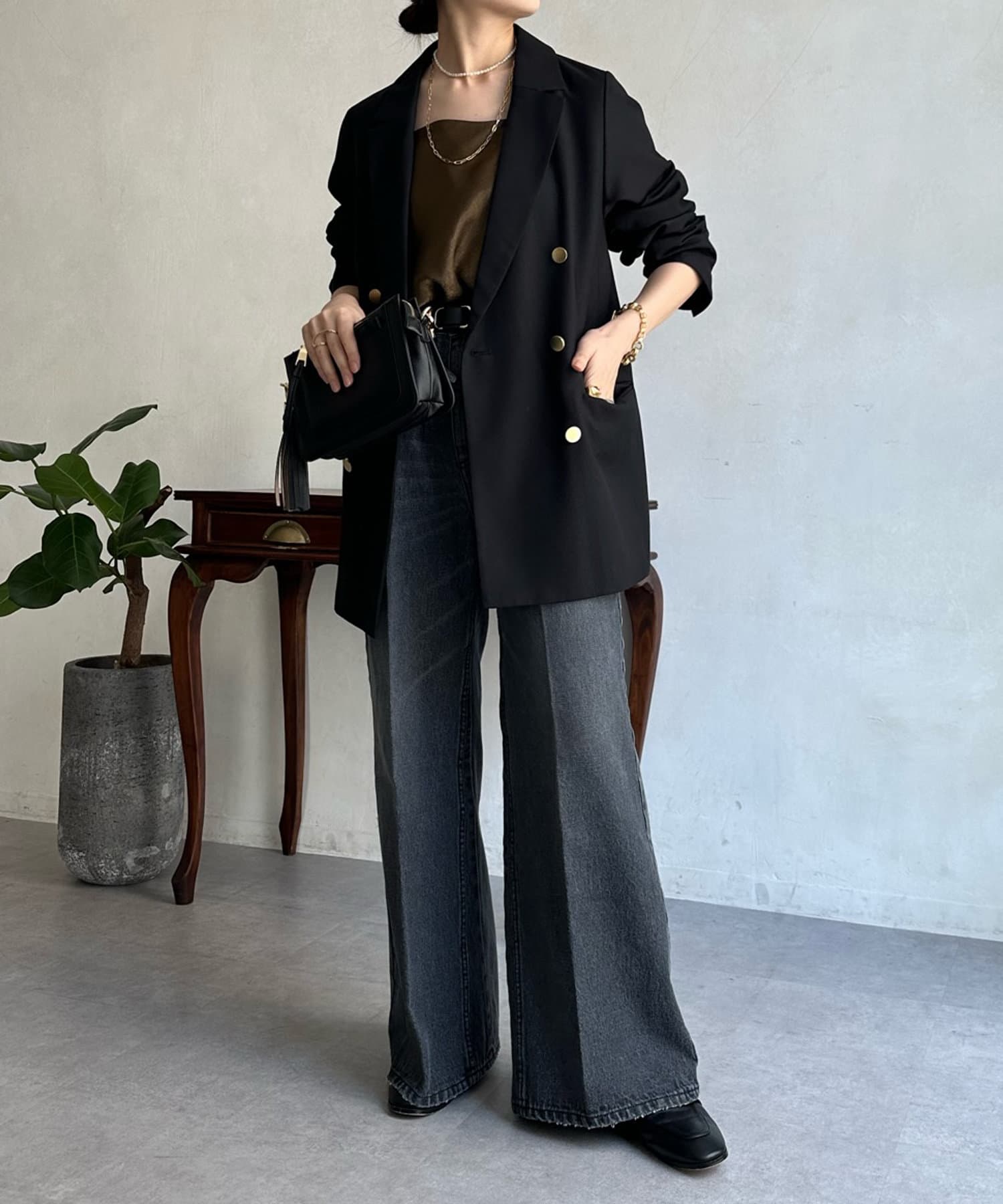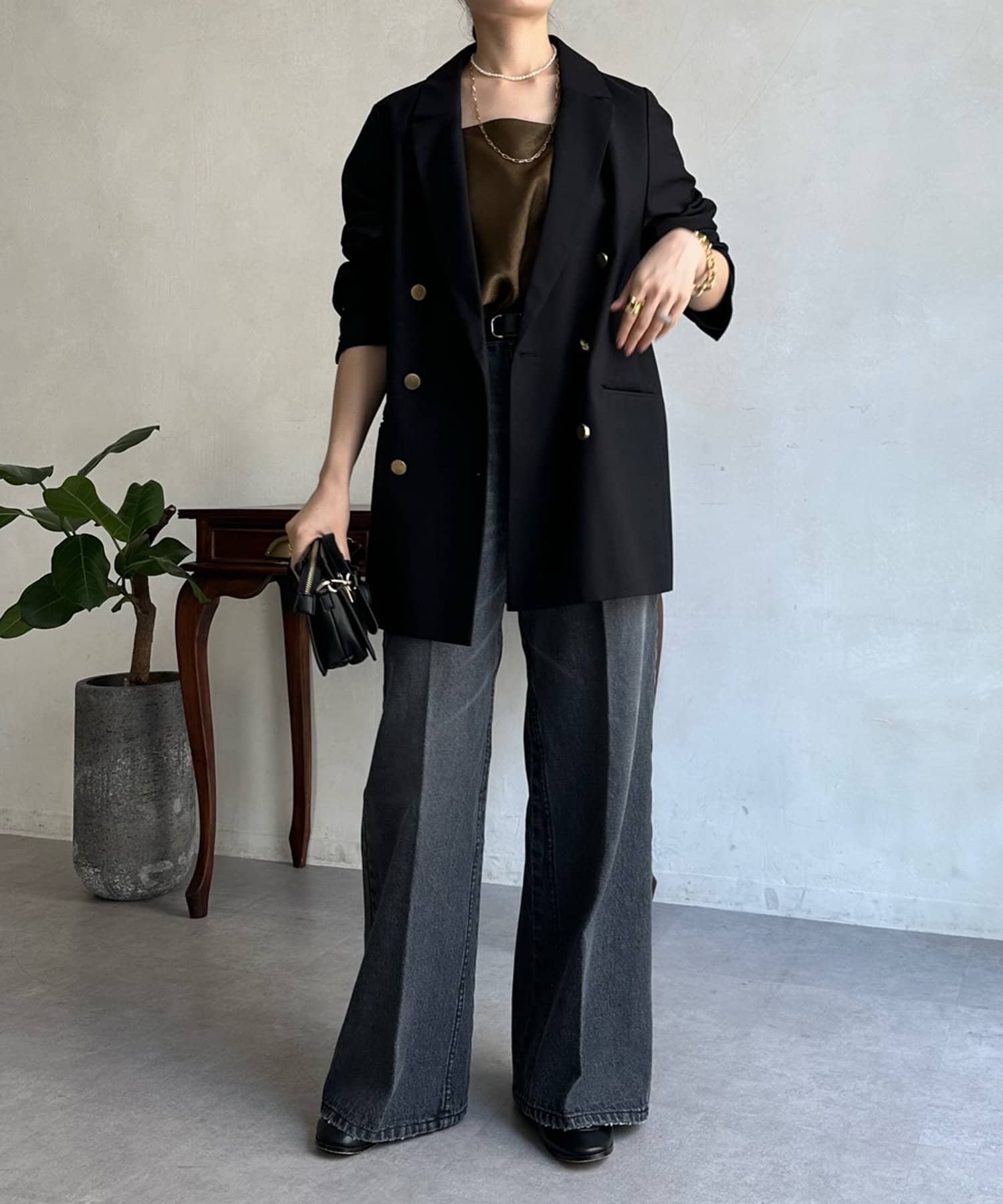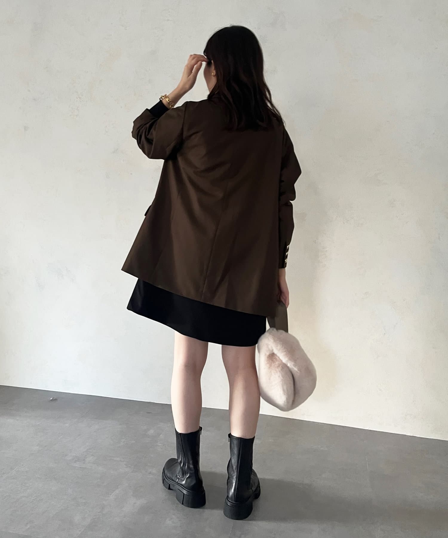 やや大きめのサイジングでありながら、肩のラインは落とさないことで華奢見せ効果をプラス。