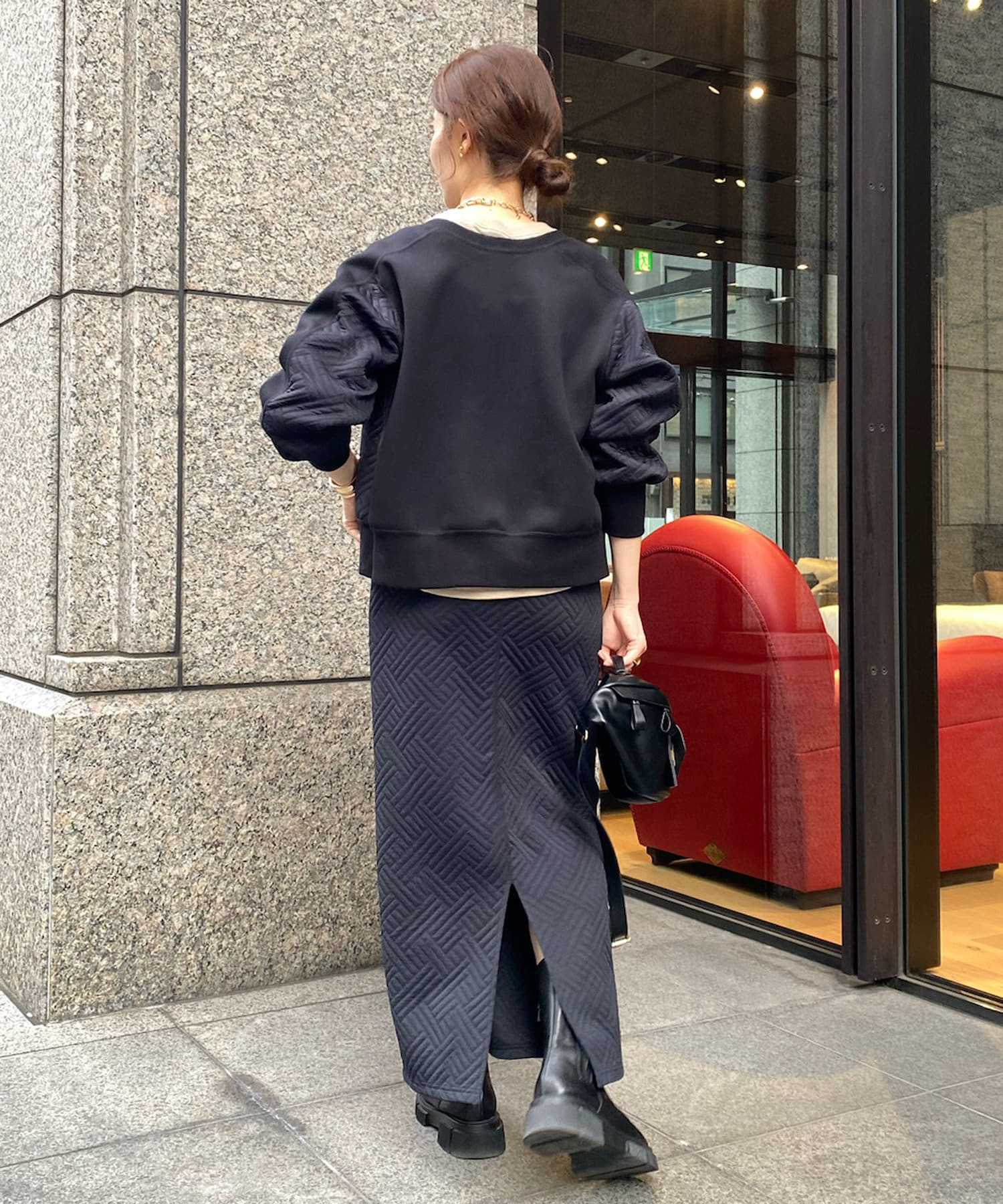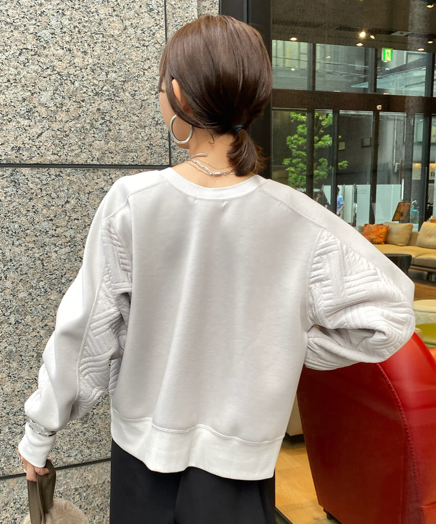 袖まくりをすると立体感のあるシルエットもこなれ感がでます。
