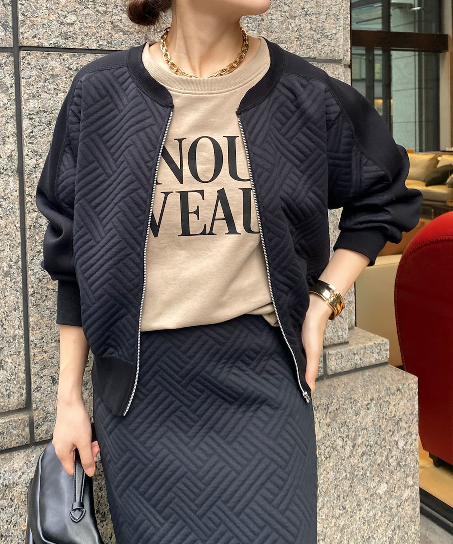 キルティング切替ブルゾン