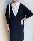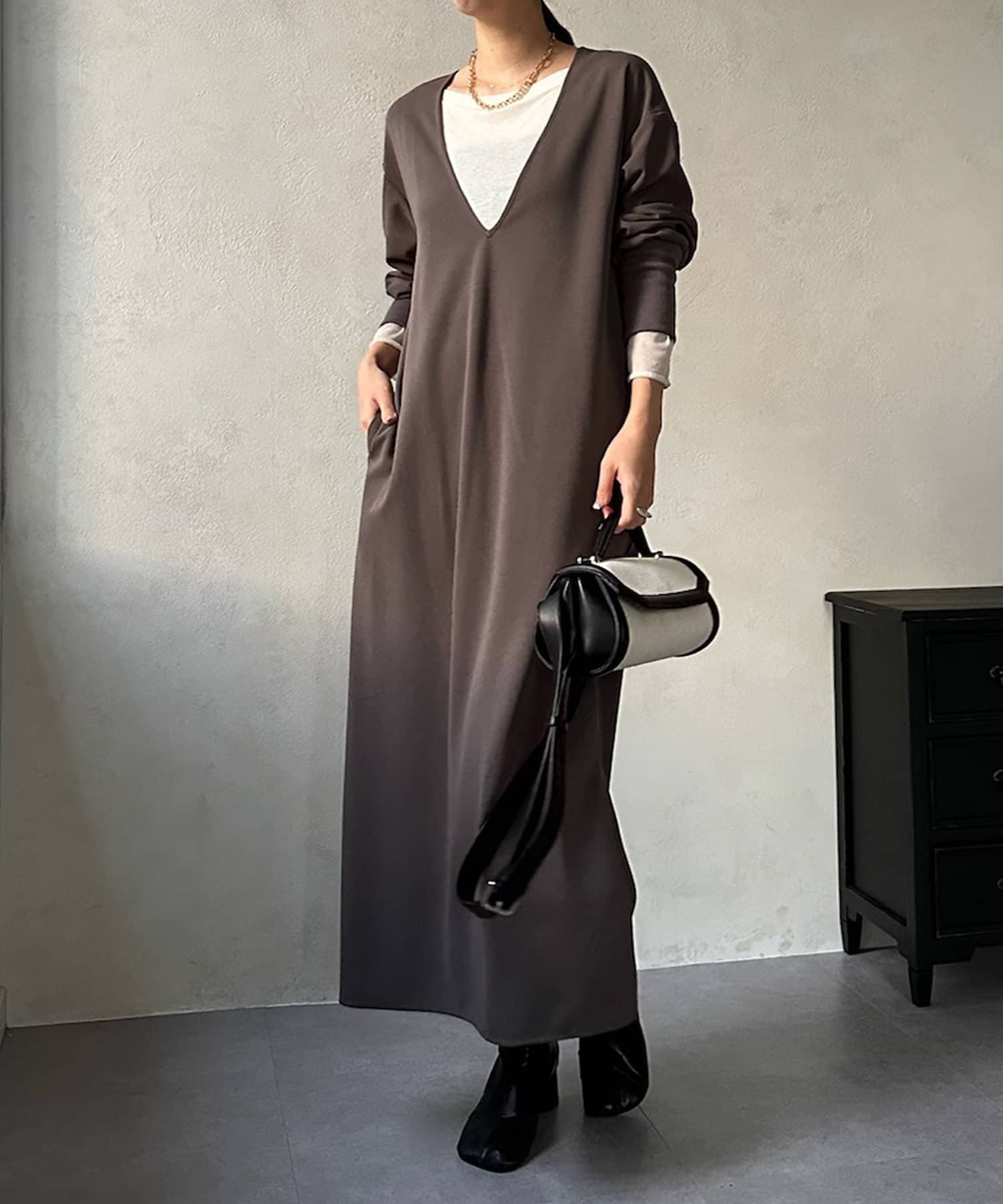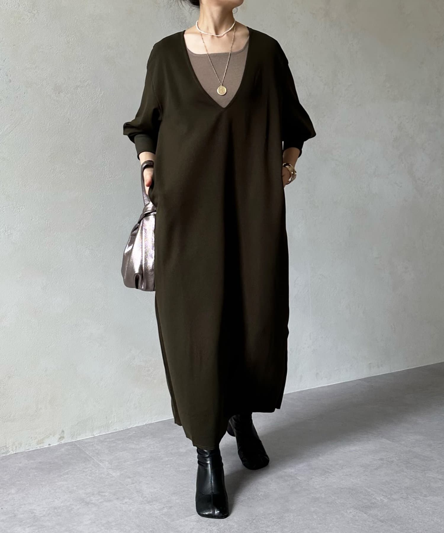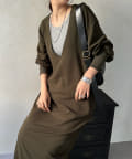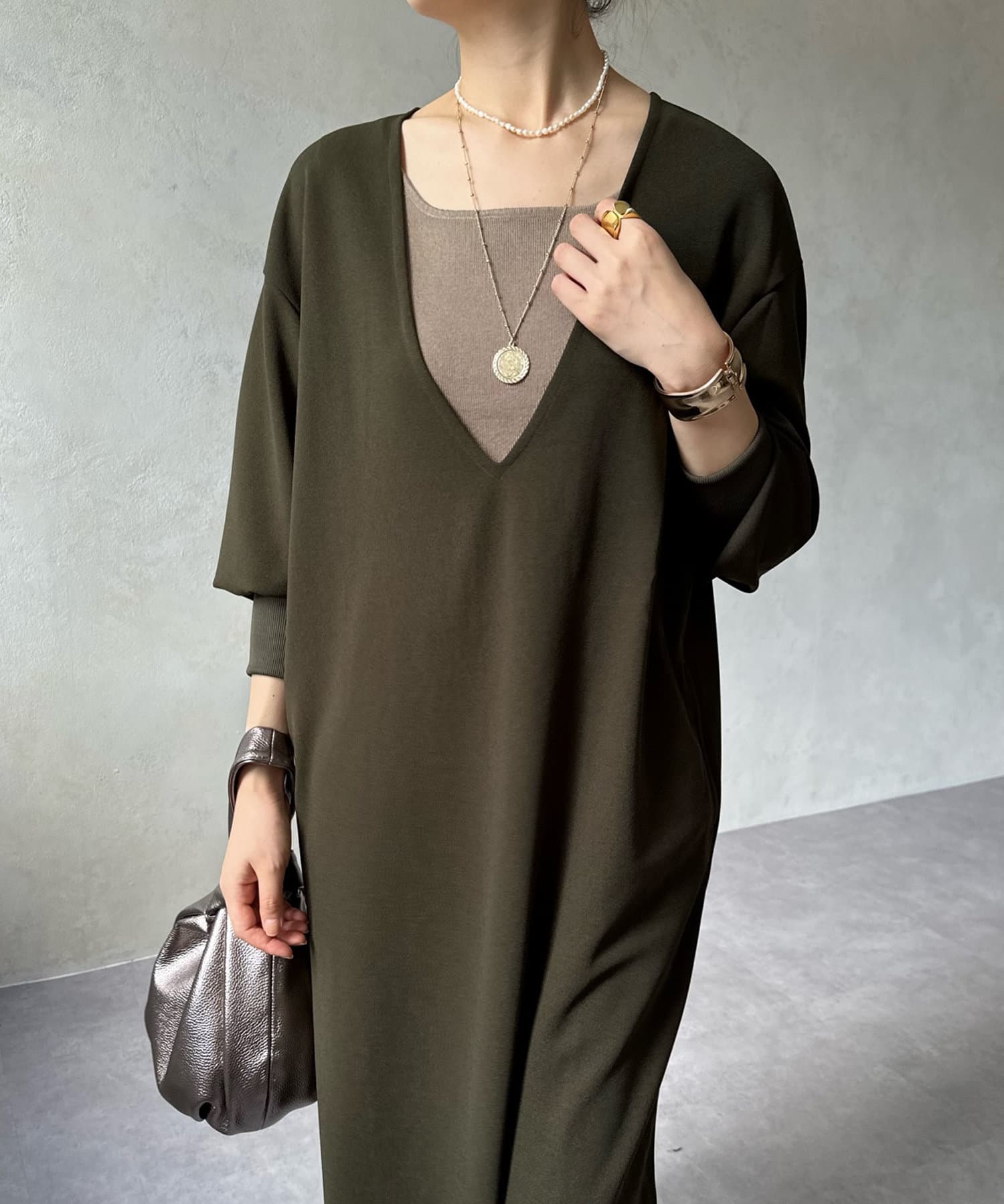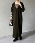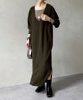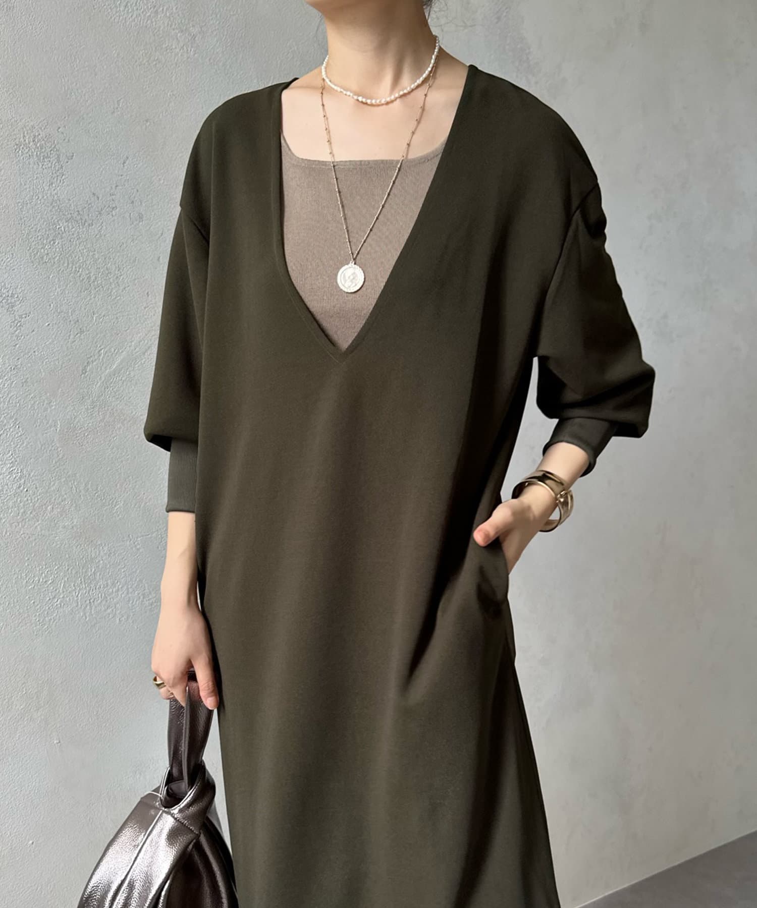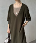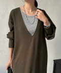 ざっくりと深めのVネックに仕上げたロングワンピース。