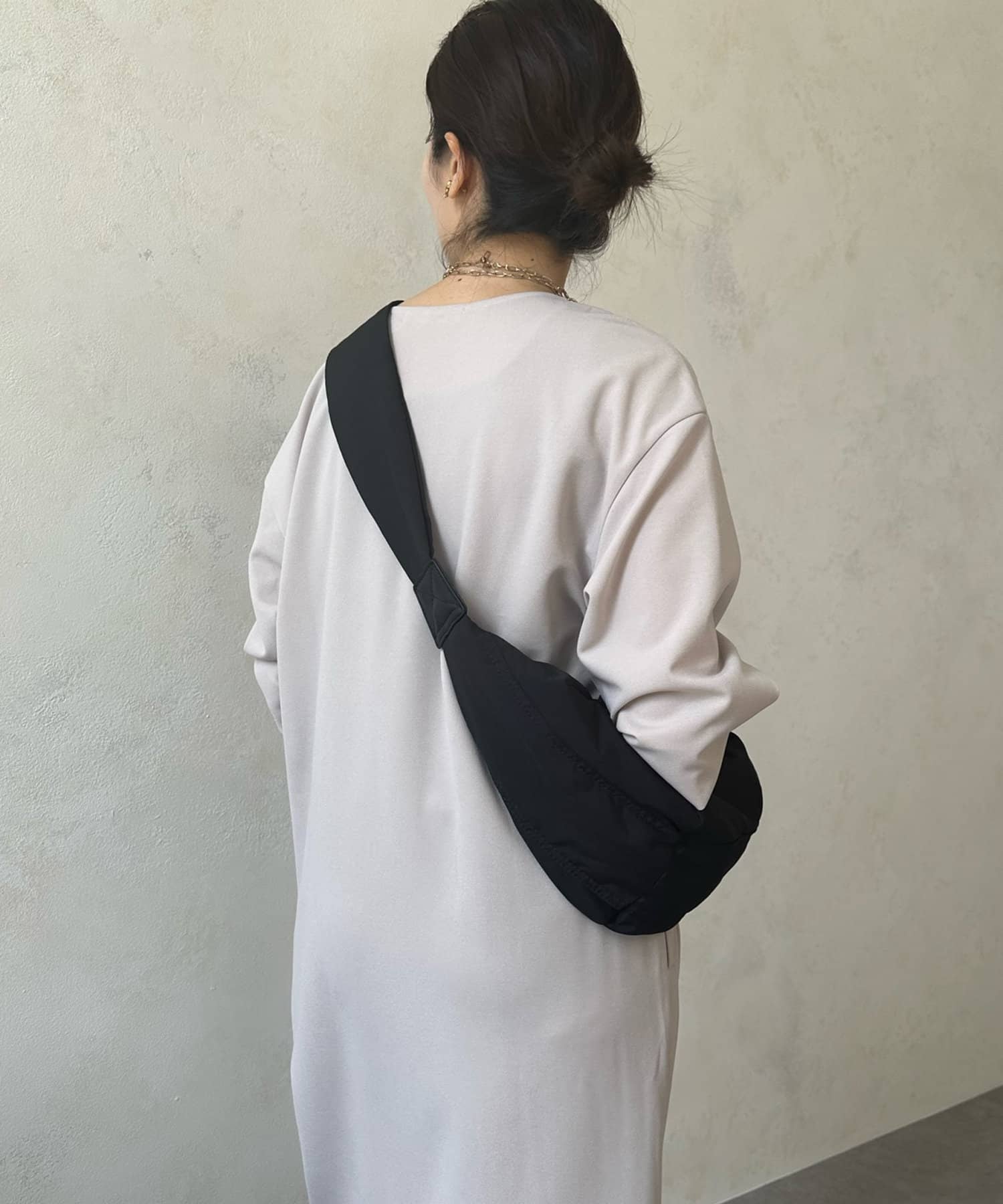 滑らかな素材感でややオーバーなサイジングの為、ゆったりとリラックス感のある印象に仕上がります。