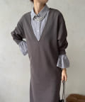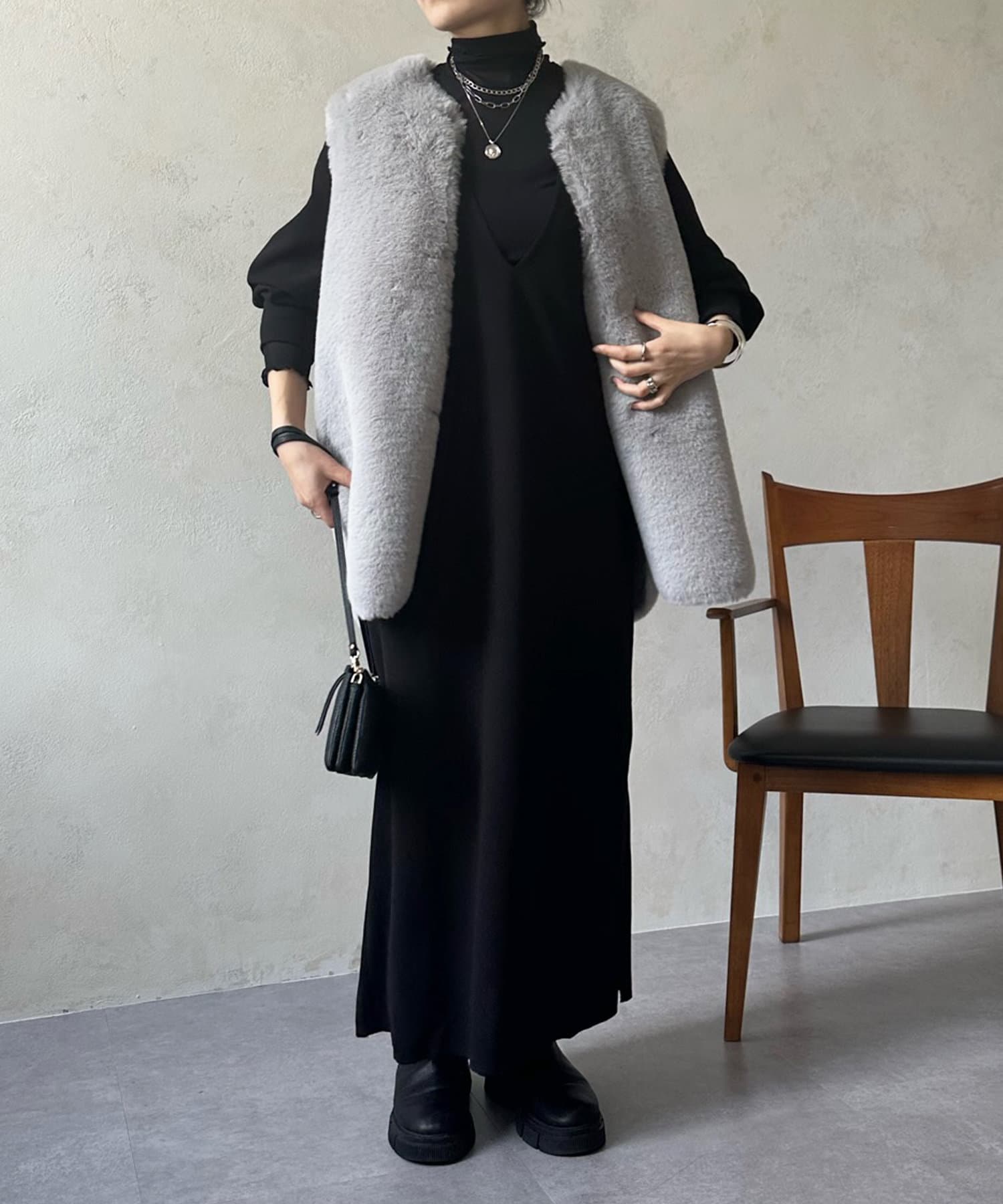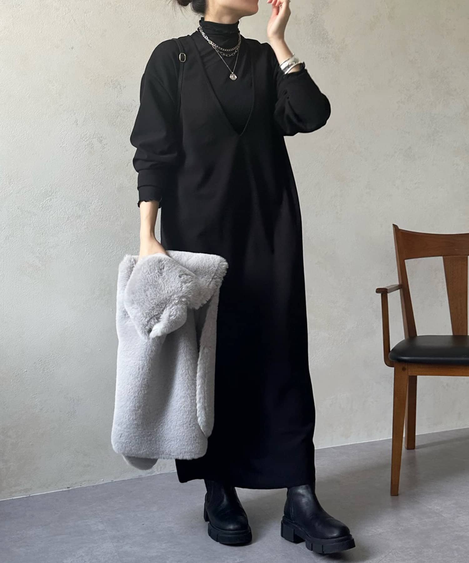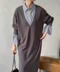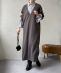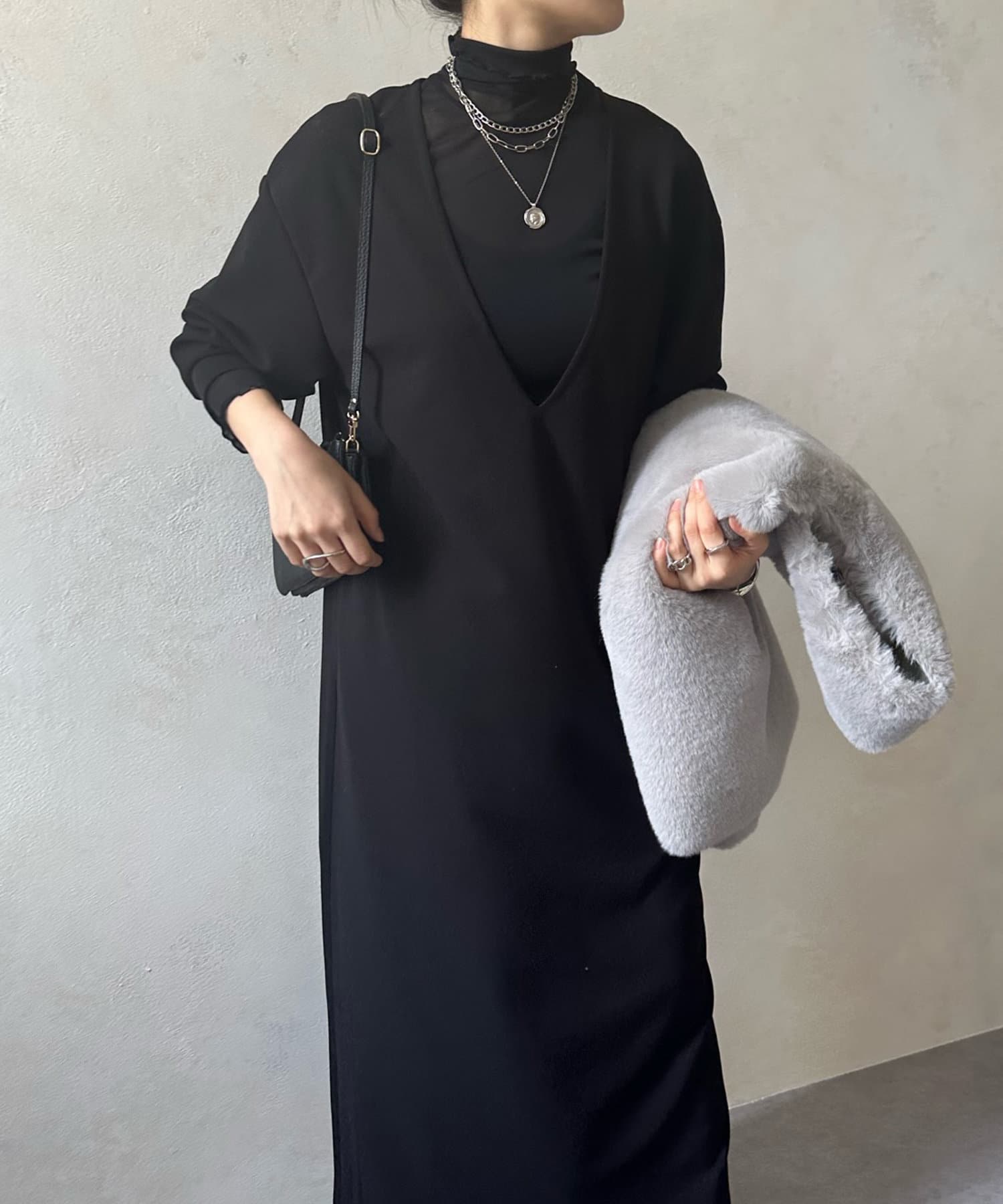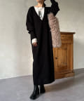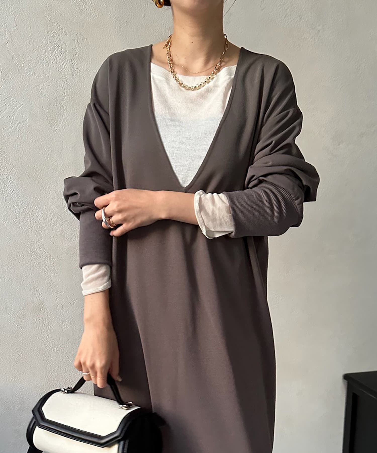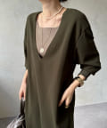 ざっくりと深めのVネックに仕上げたロングワンピース。