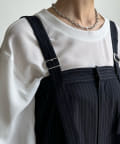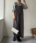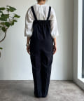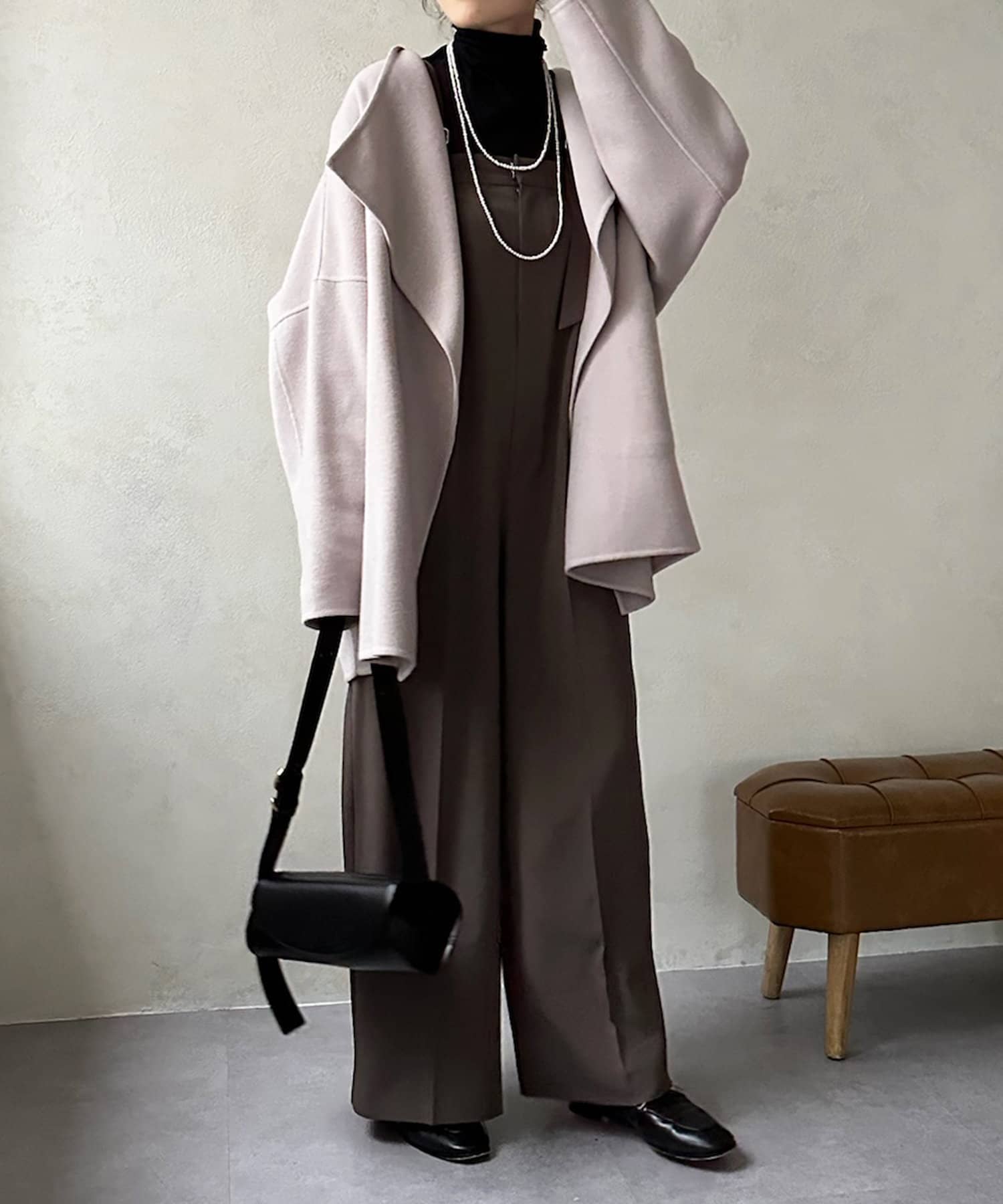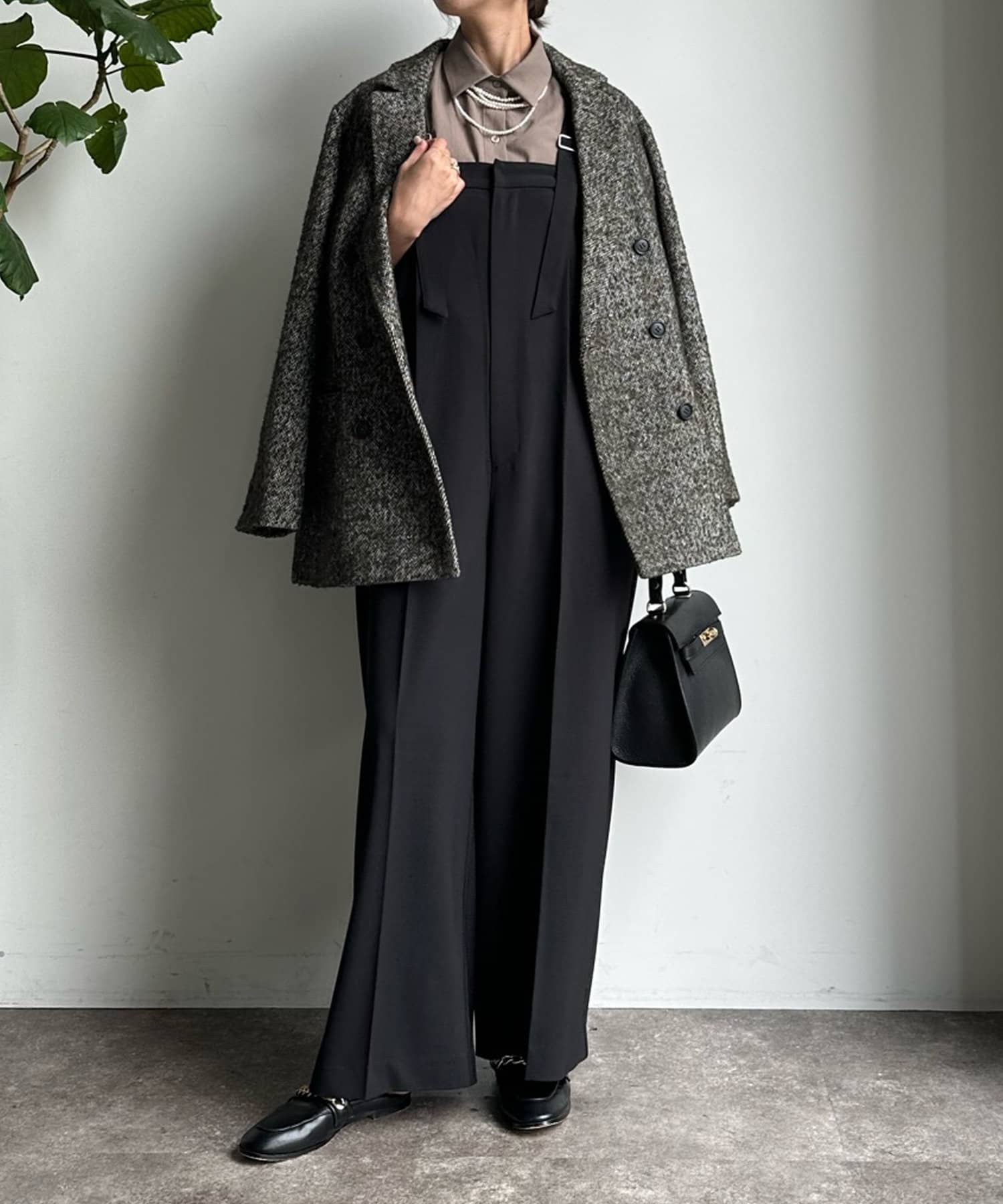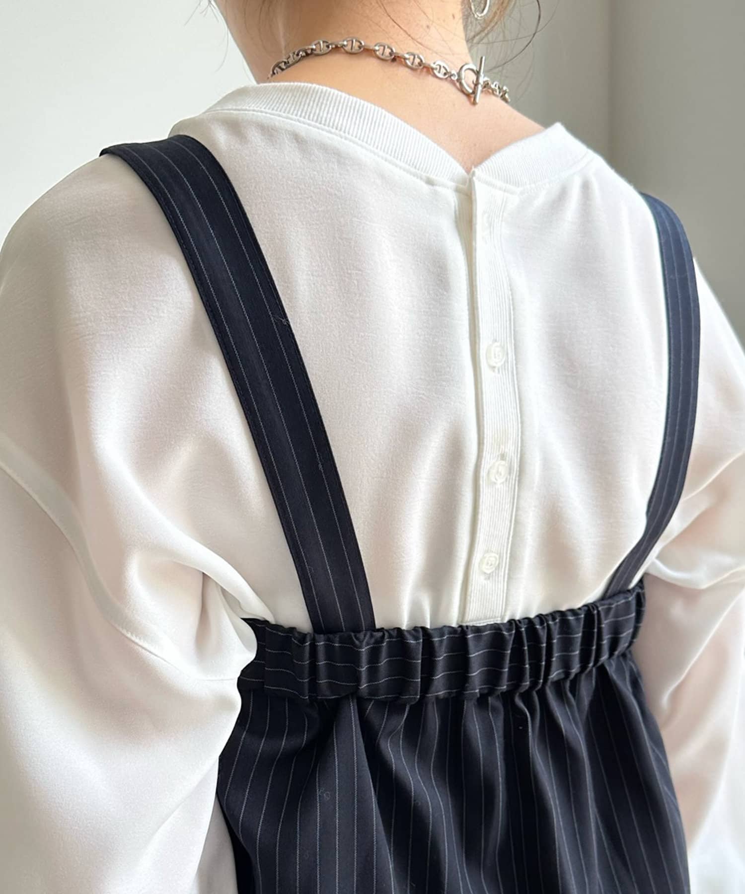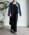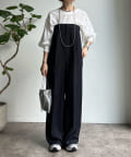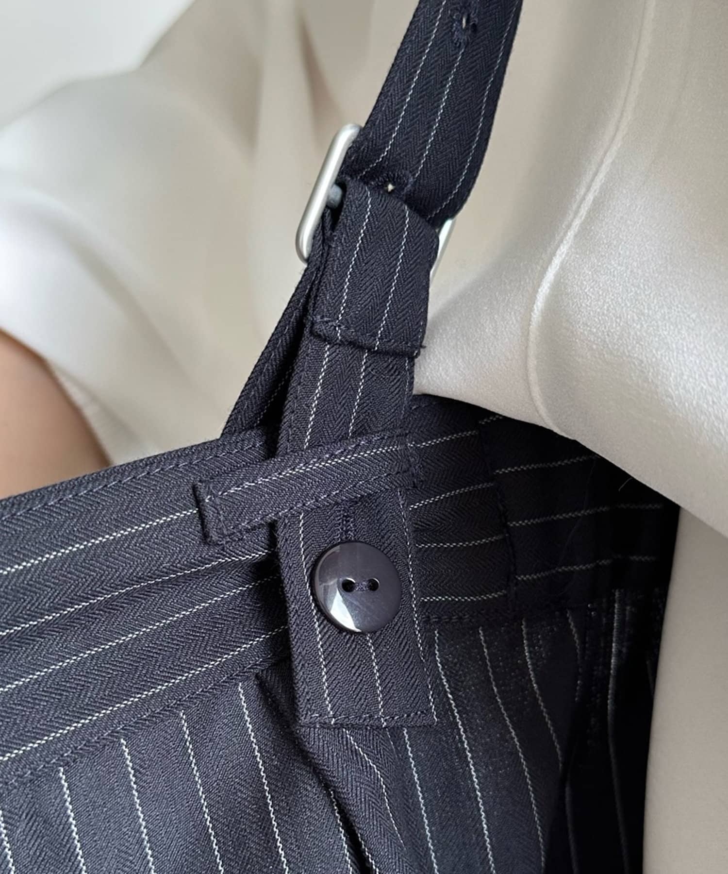 程よいワイドシルエットなので身体のラインを拾いすぎず、肩紐で長さを調整できるのも嬉しいポイントです。