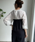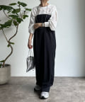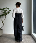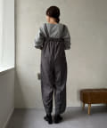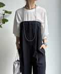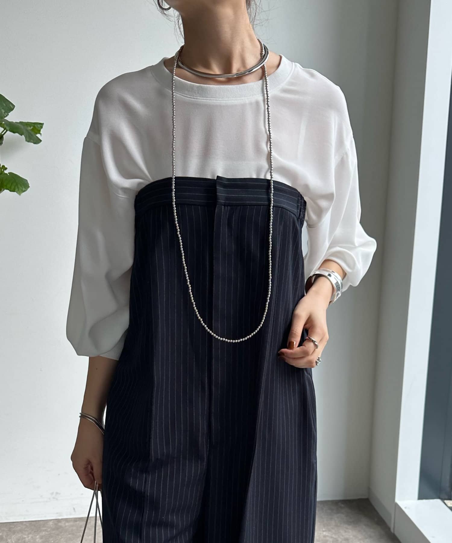 カジュアルなアイテムながら、ベアトップのラインやパンツ部分のシルエットにこだわり、こなれた雰囲気のある風合いに仕上げました。