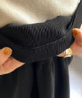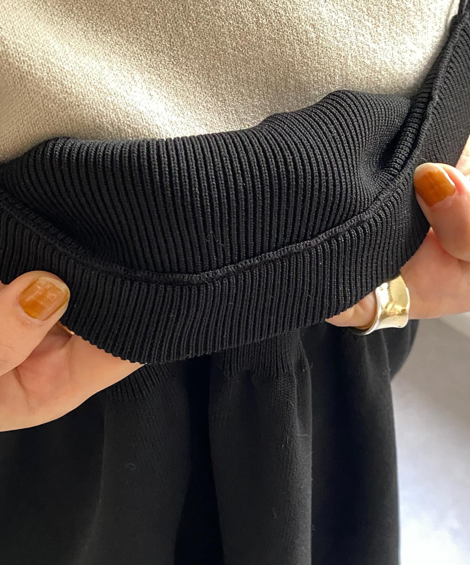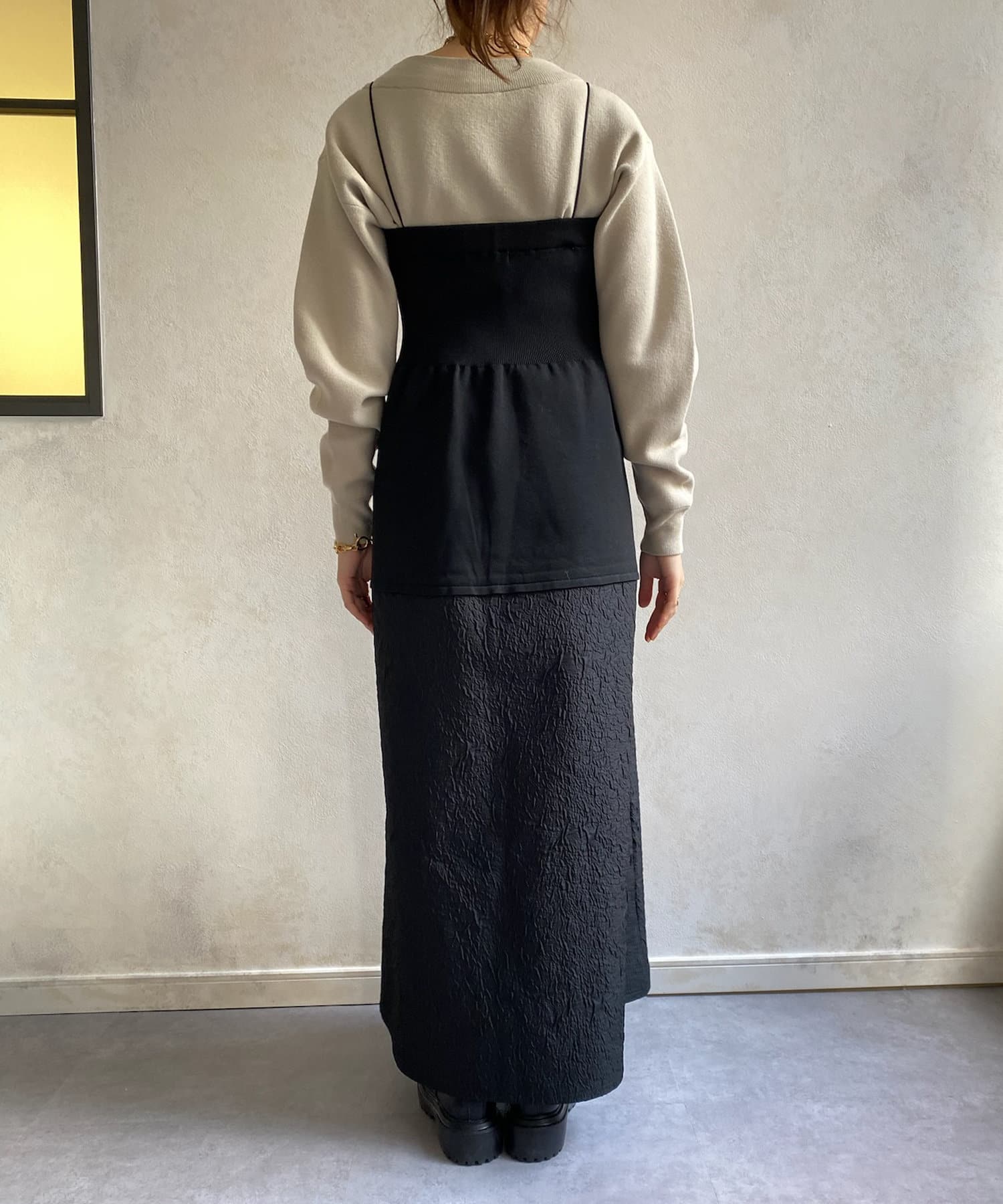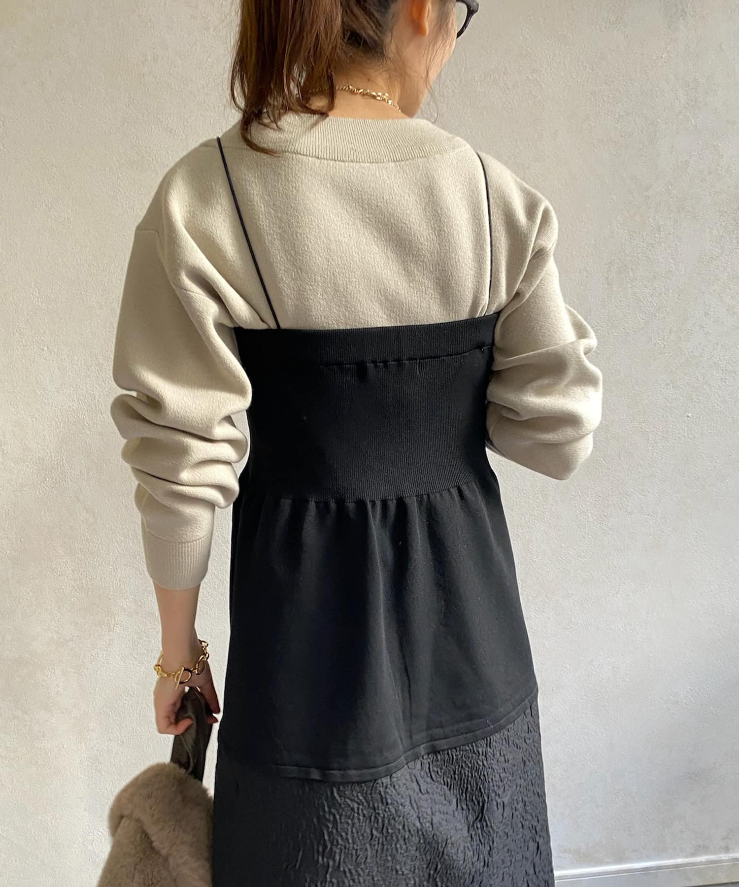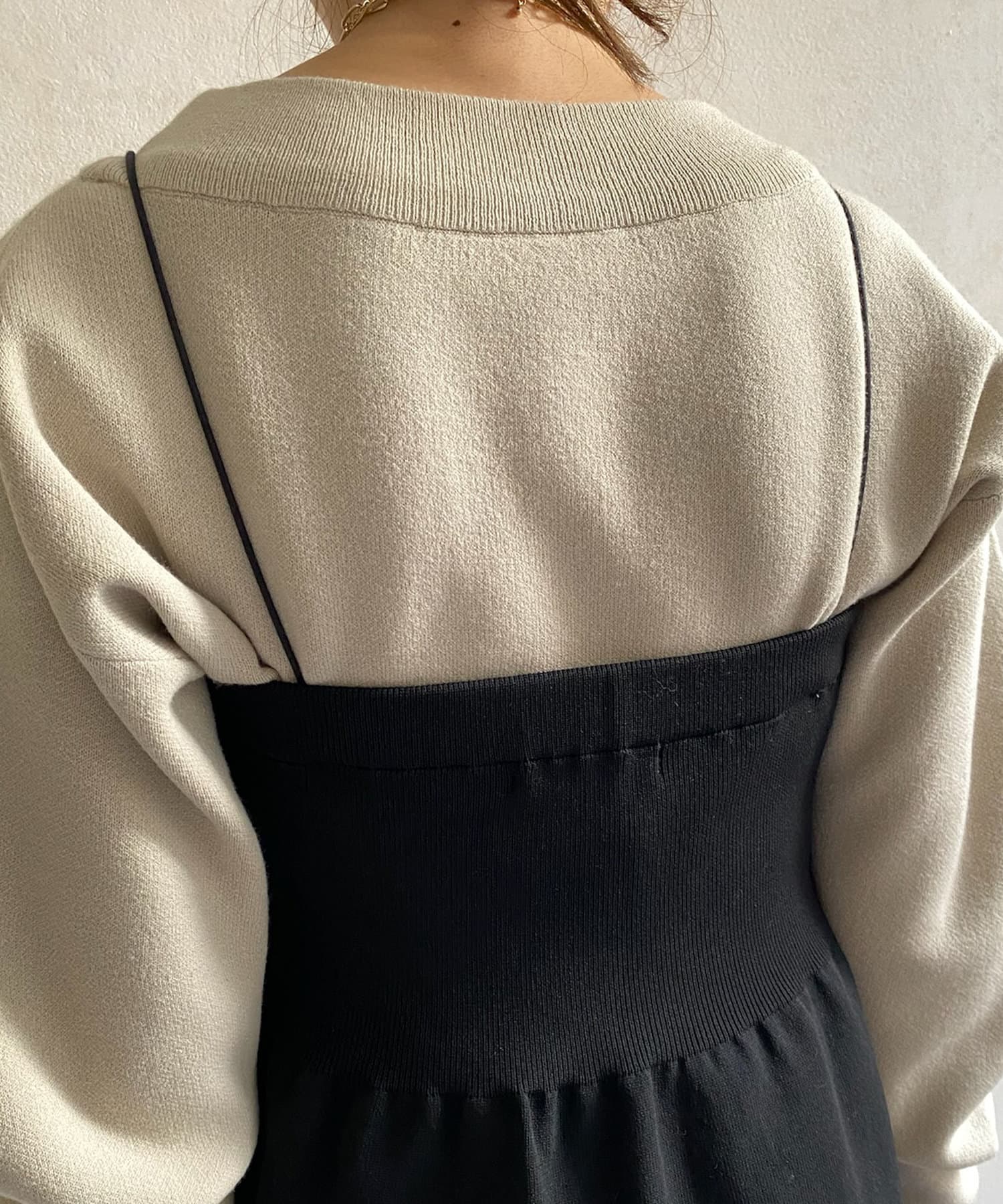 伸縮性抜群のニット部分に、華奢な肩紐をプラス。結ぶ長さ次第で自由に長さ調節が可能です。