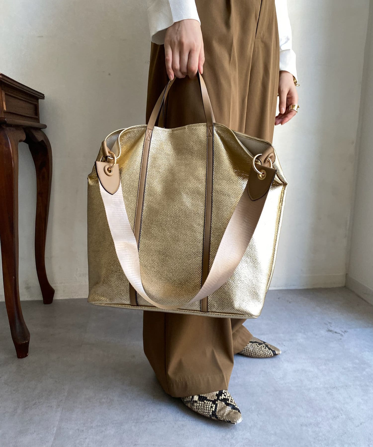 持ち運び便利で、様々なスタイルで合わせて頂ける万能なトートバッグです。