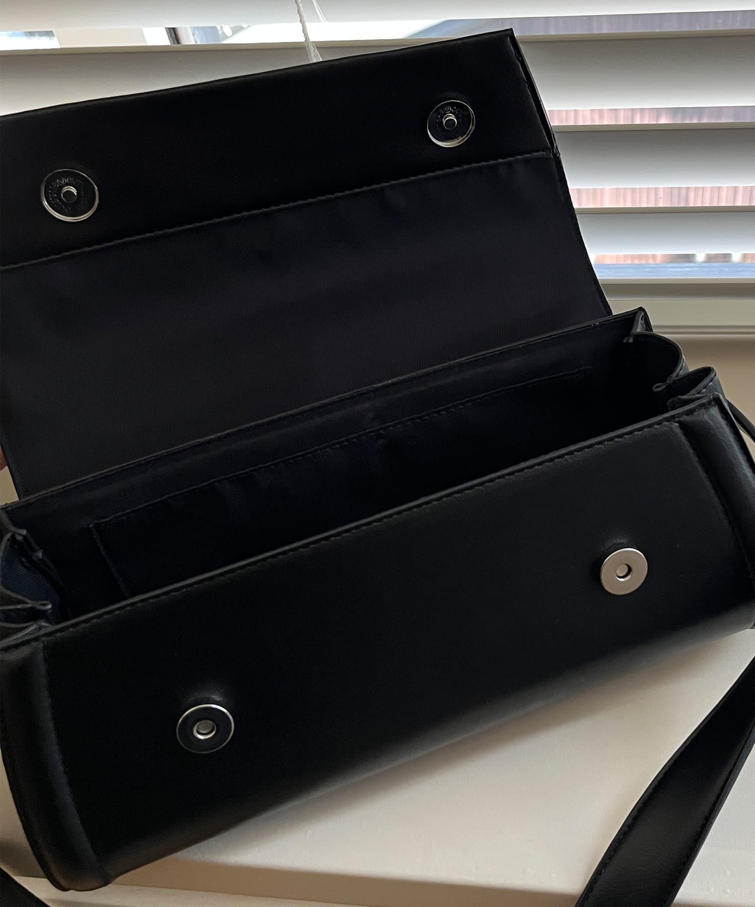 届いて分かったのが、ロングのベルトが斜めがけする前提の取り付けになっているところ。デザイナーさんがこういう風に持って欲しいという作りなのかな?シンプルでベーシックな感じだけど、こだわりを感じます。