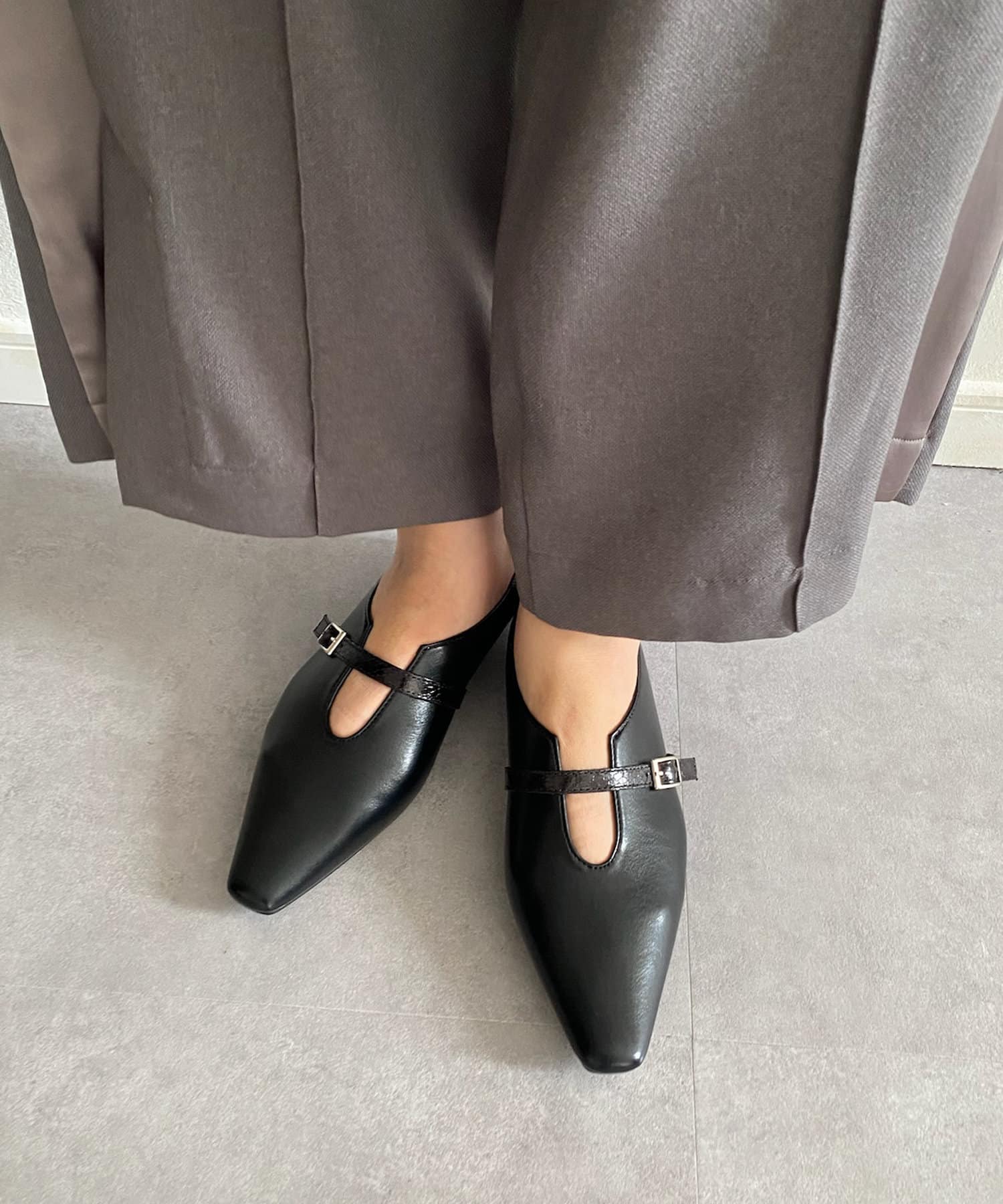 【WEB限定】 ソフトスクエアベルトフラットパンプス