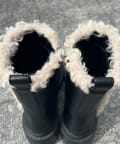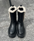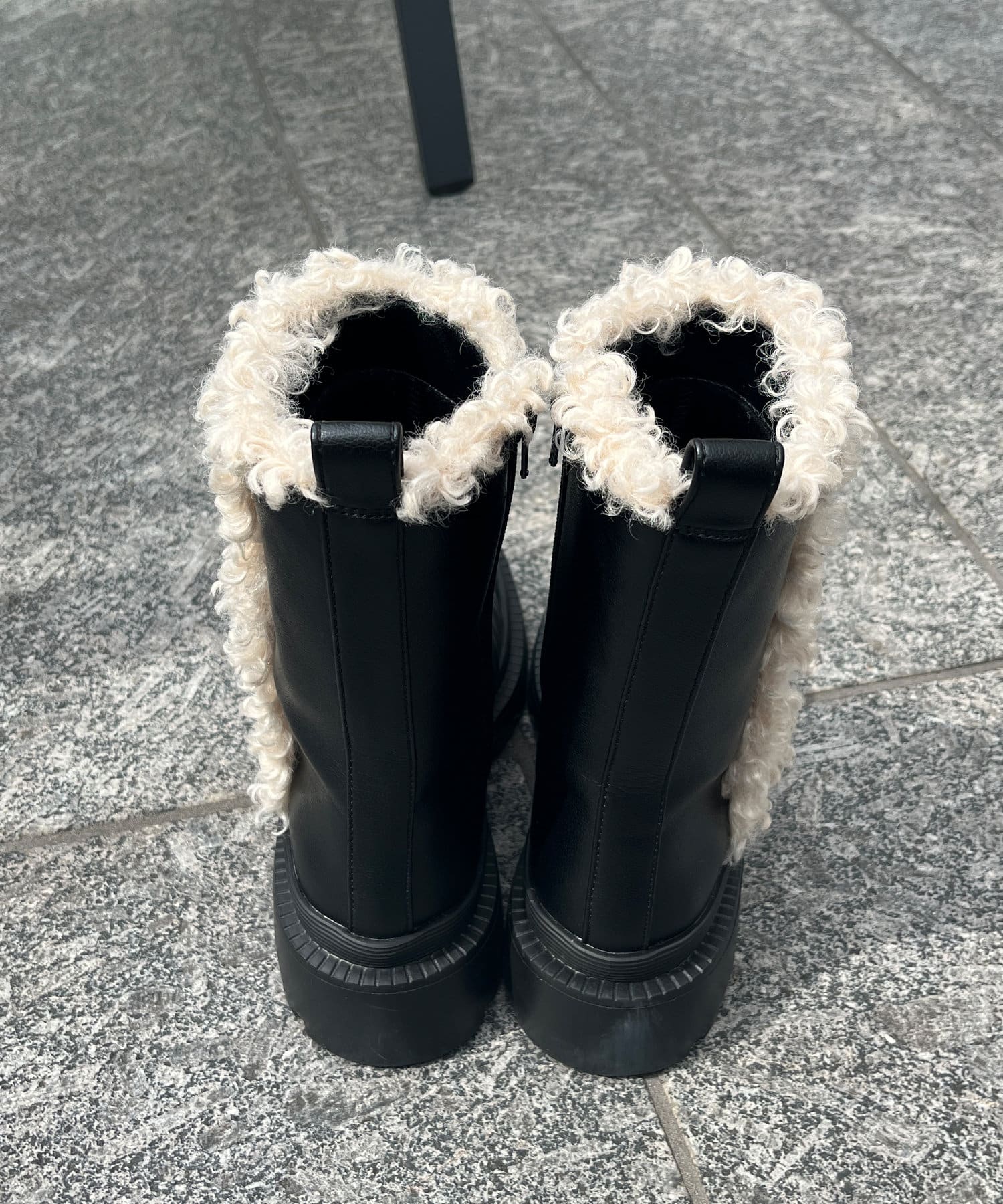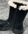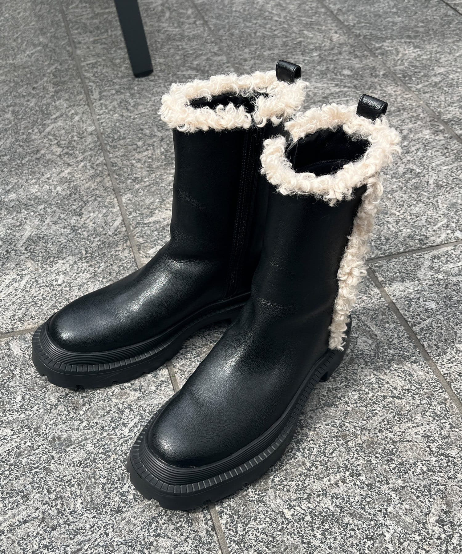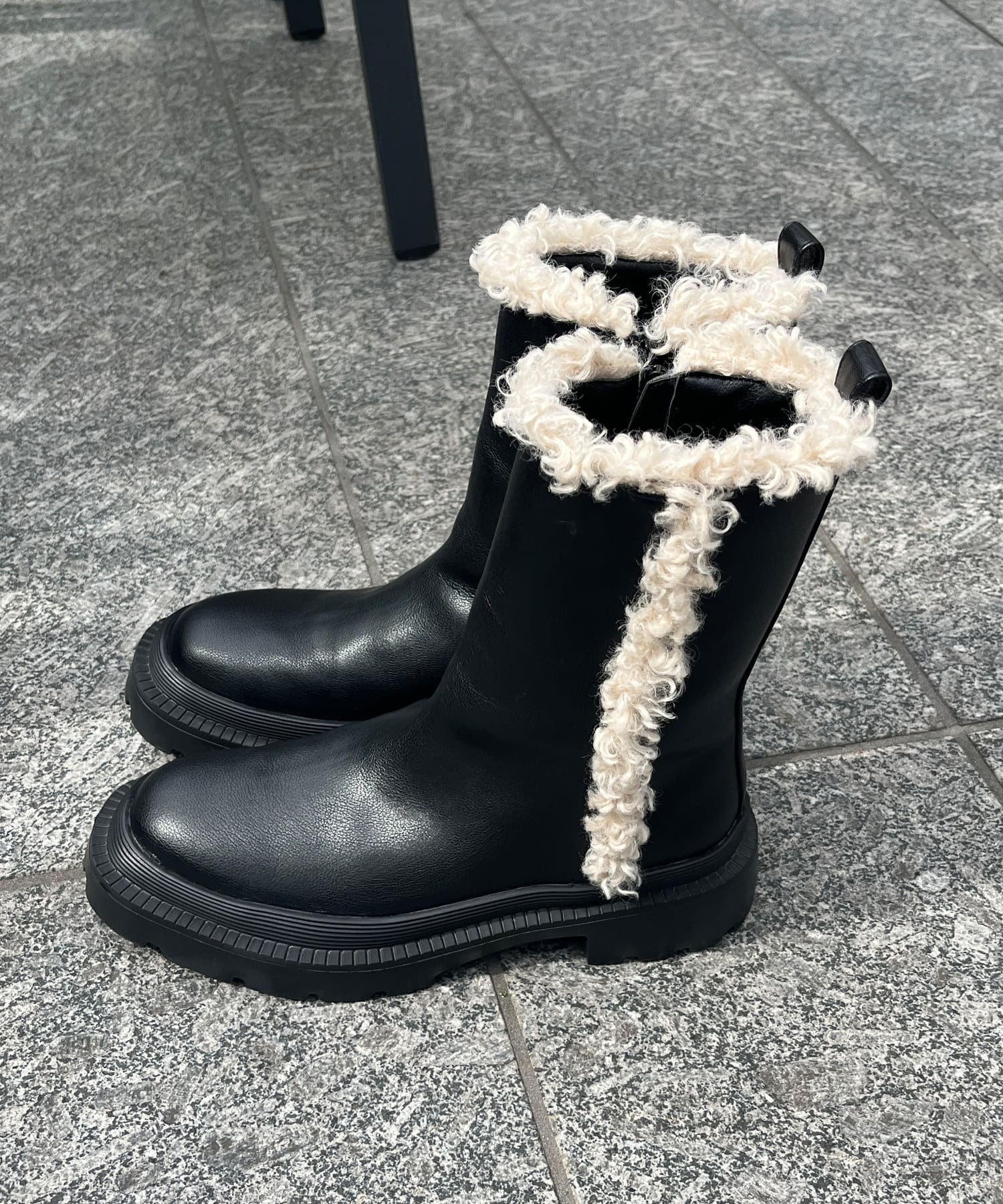 ゴロンとボリューム感のあるショートブーツに、トレンドのファーのデザインをプラスした新鮮な一足。
