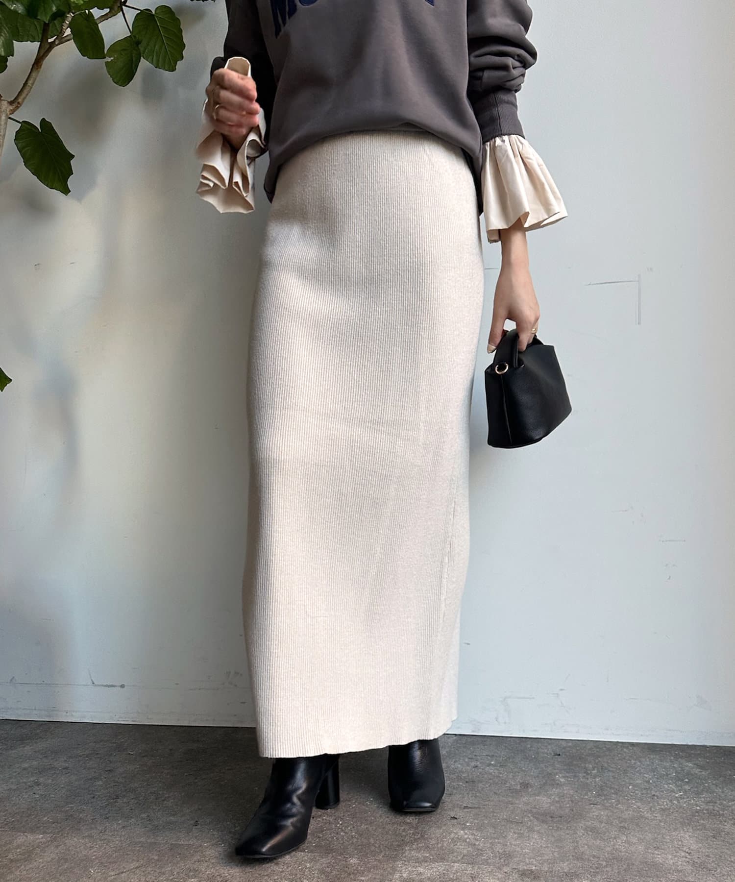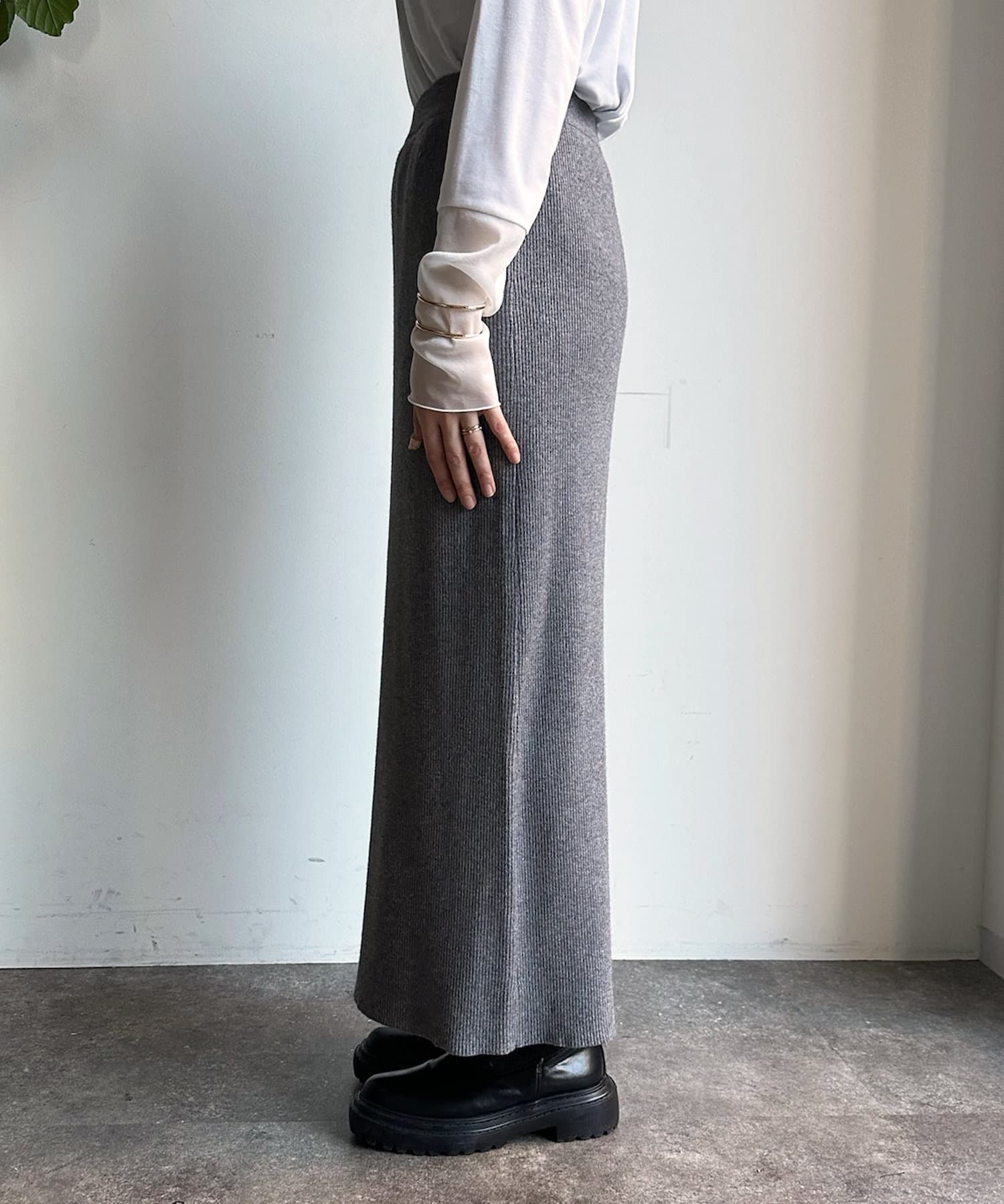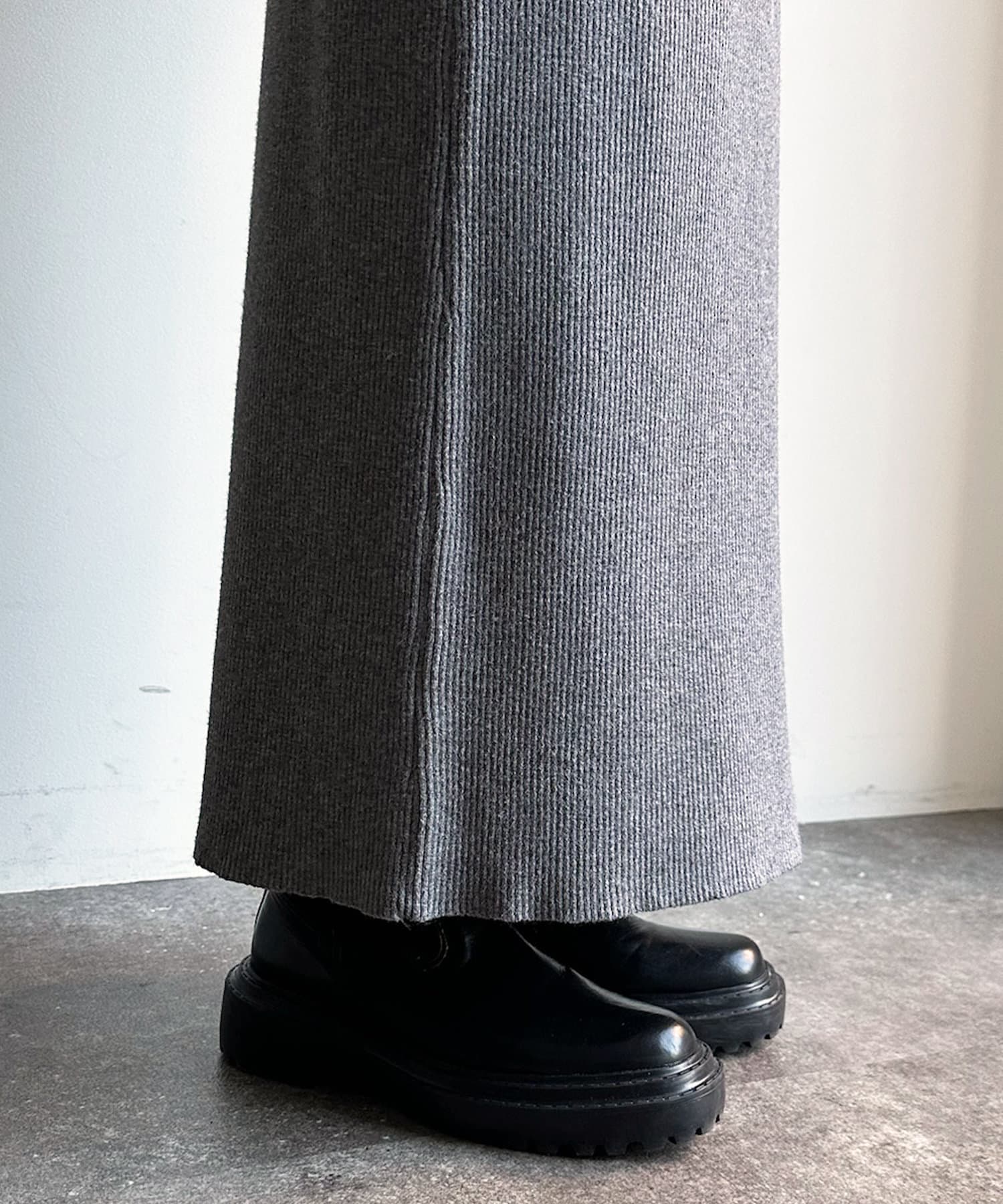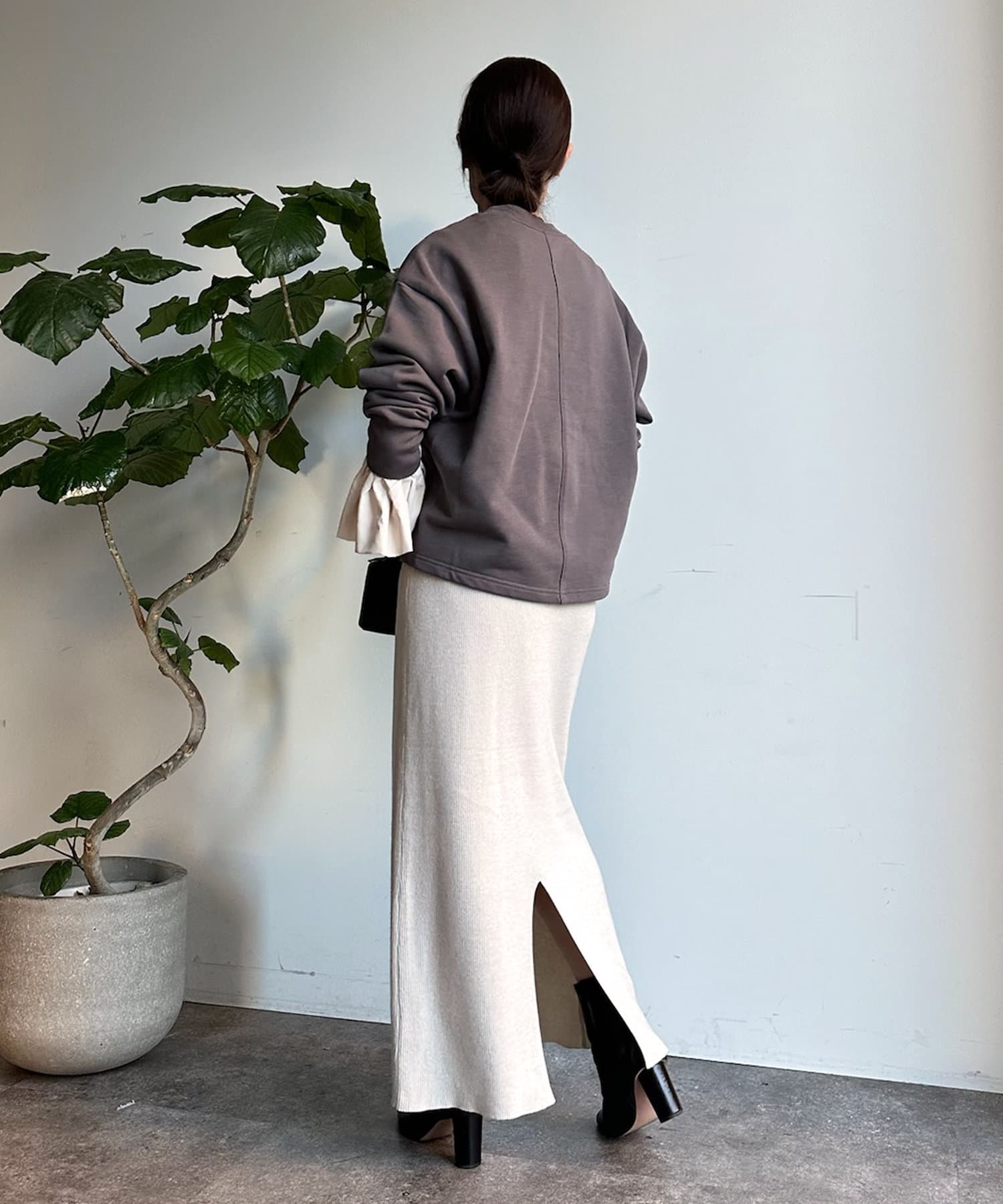 程よくボディラインに沿うIラインのタイトシルエットでありながらも、ぴたぴたとした窮屈感はなくリラクシーな着心地。