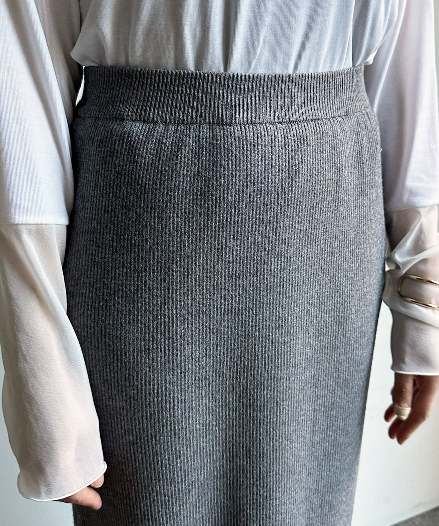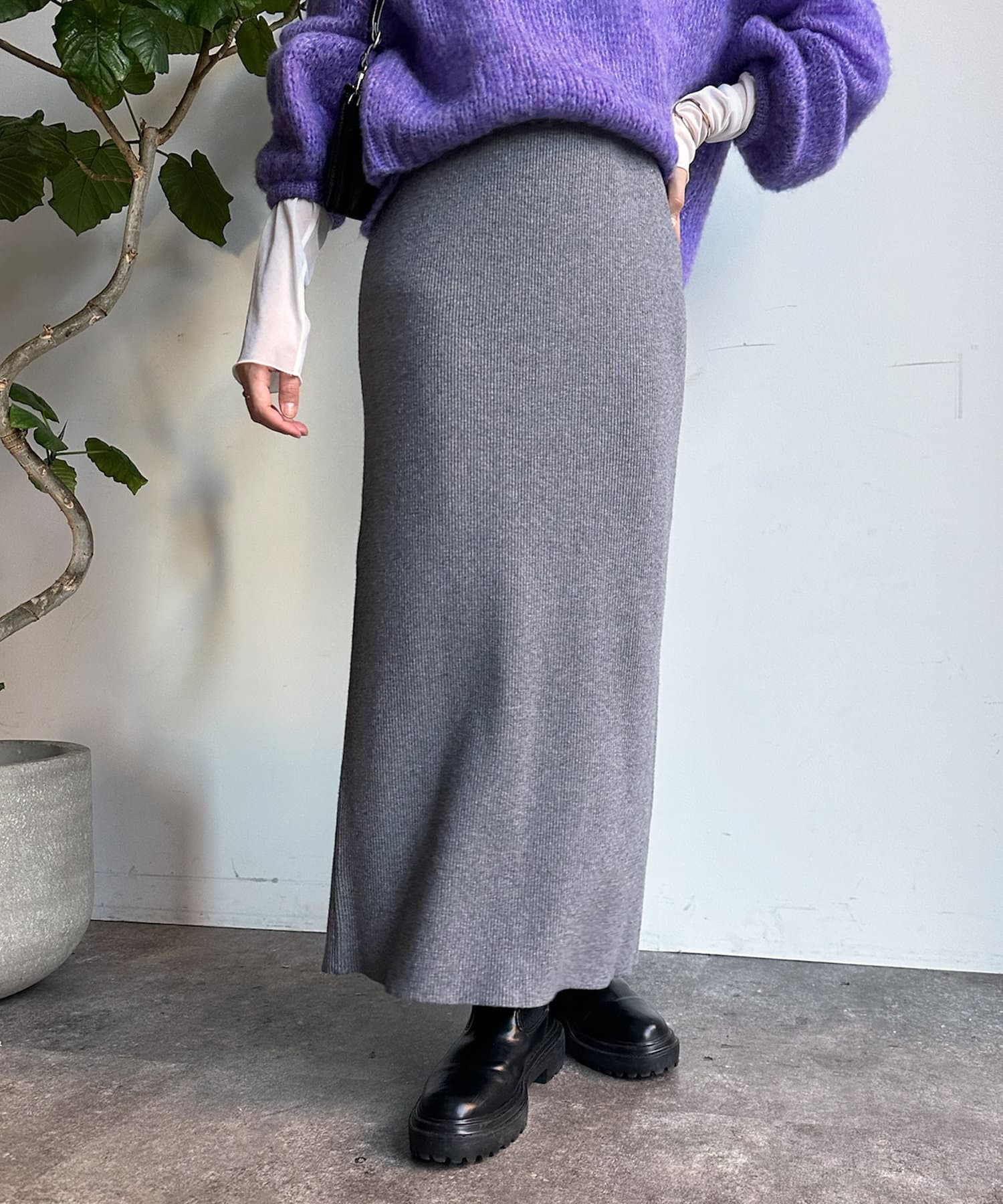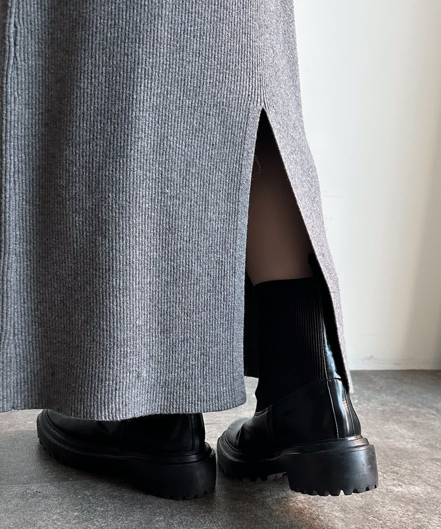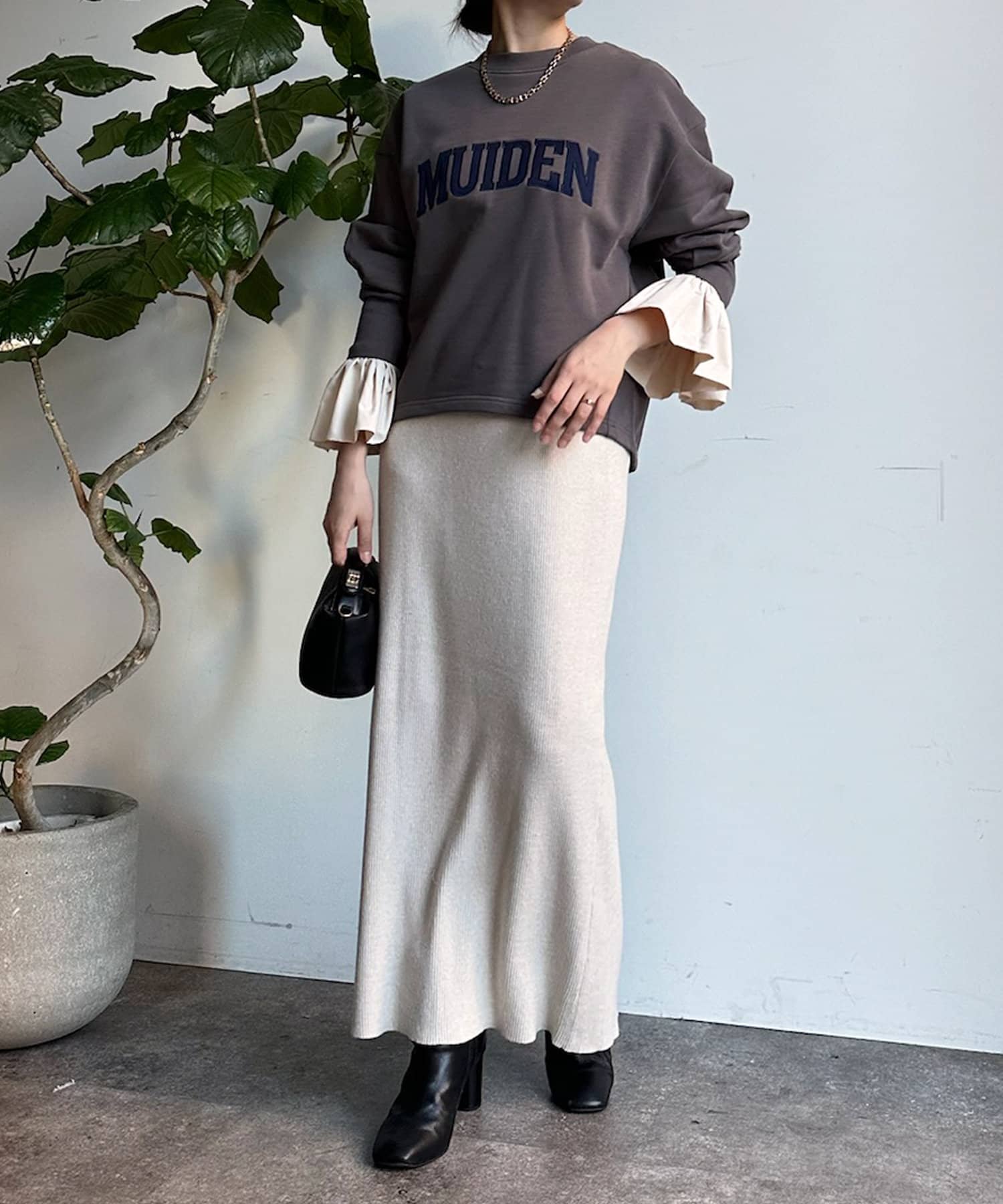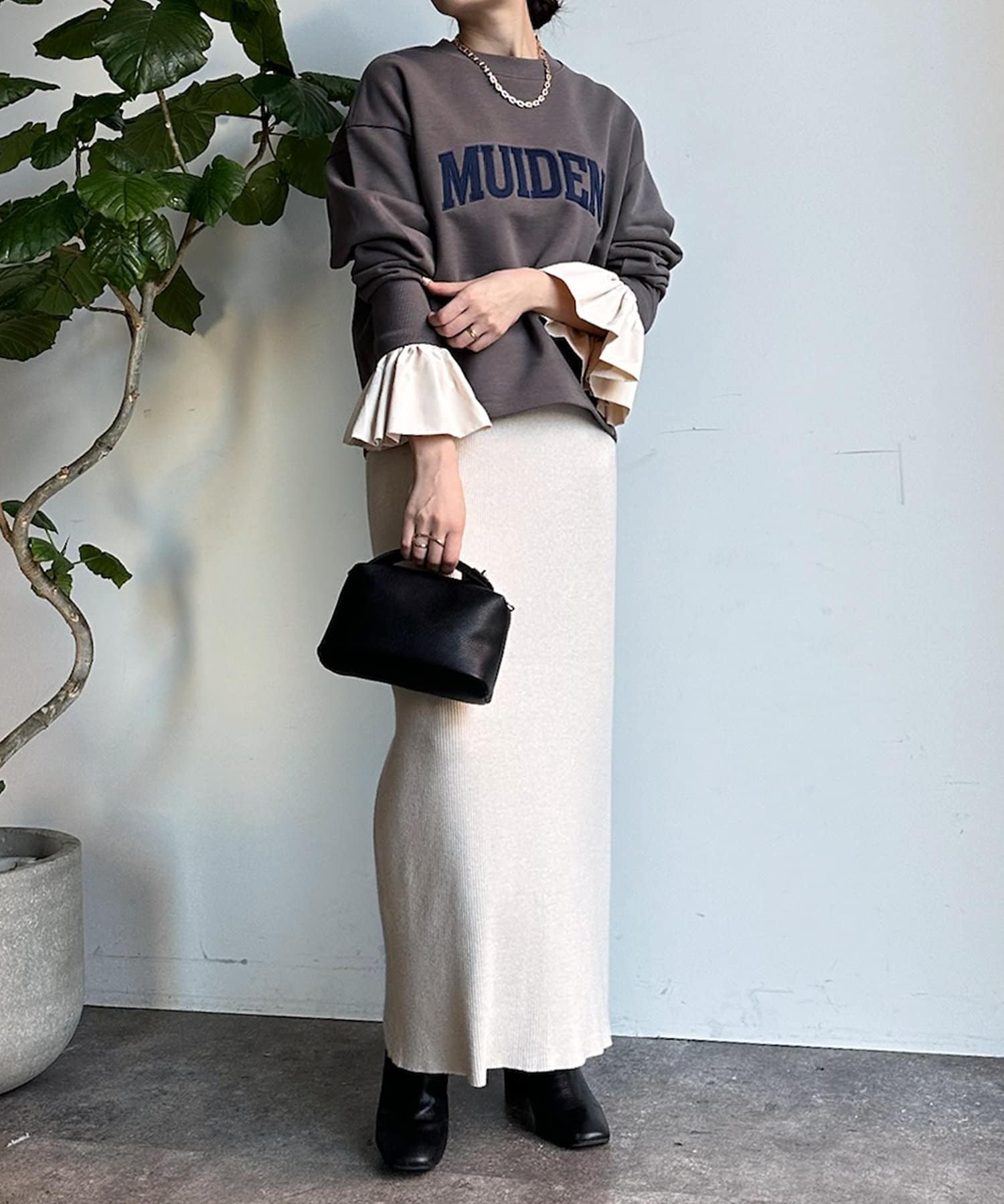 程よくボディラインに沿うIラインのタイトシルエットでありながらも、ぴたぴたとした窮屈感はなくリラクシーな着心地。