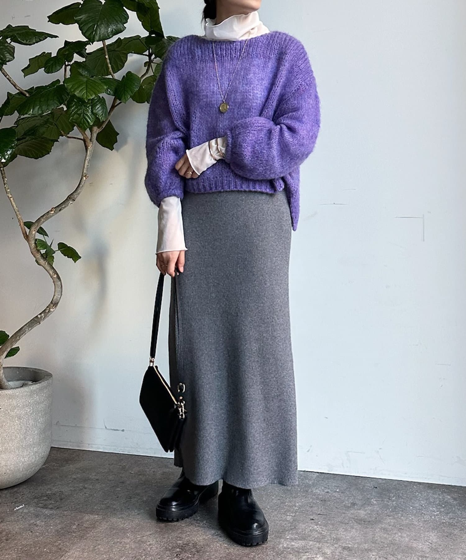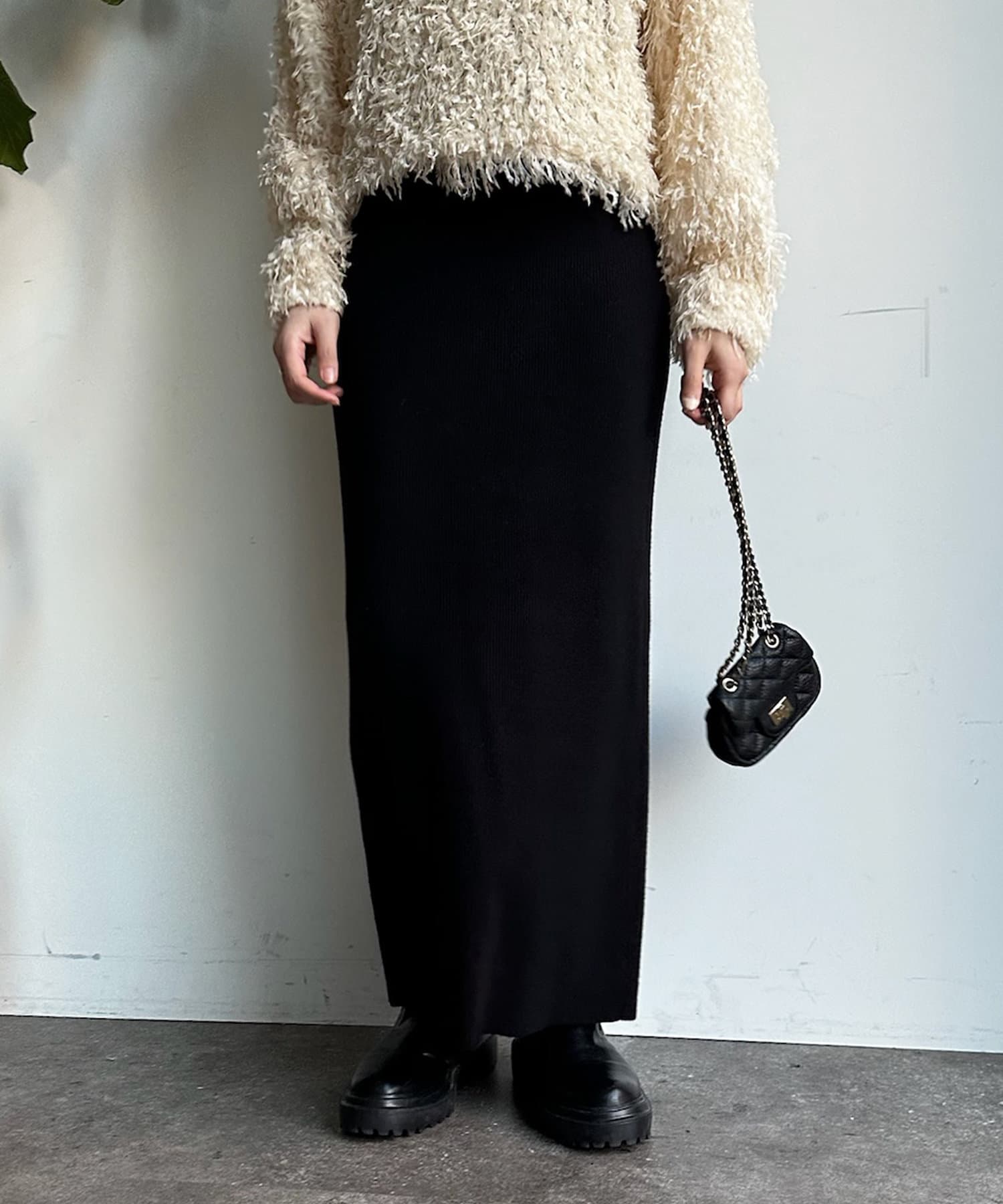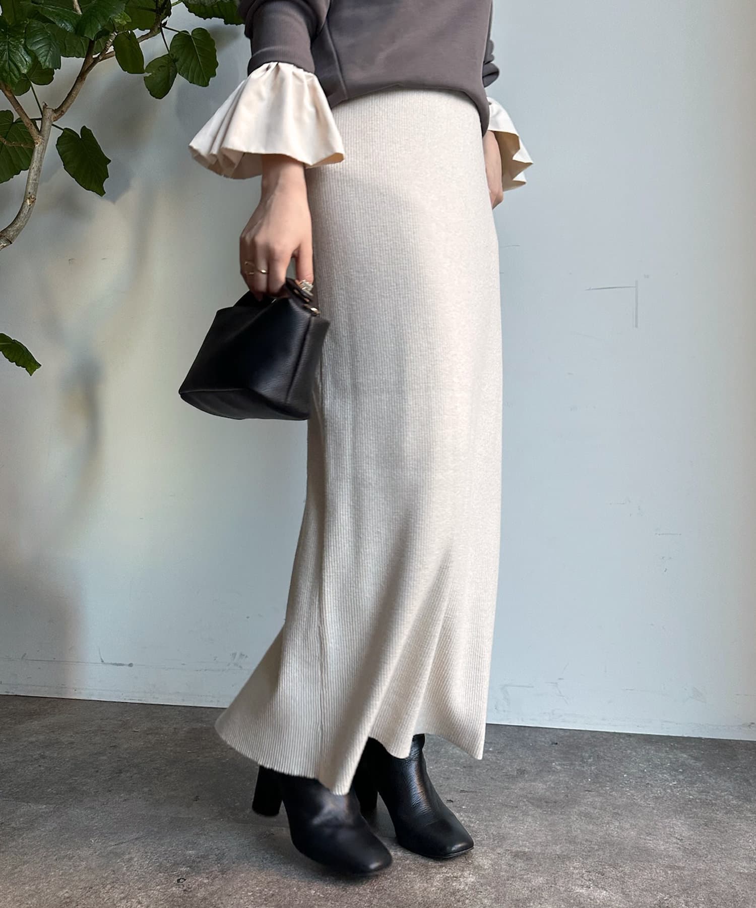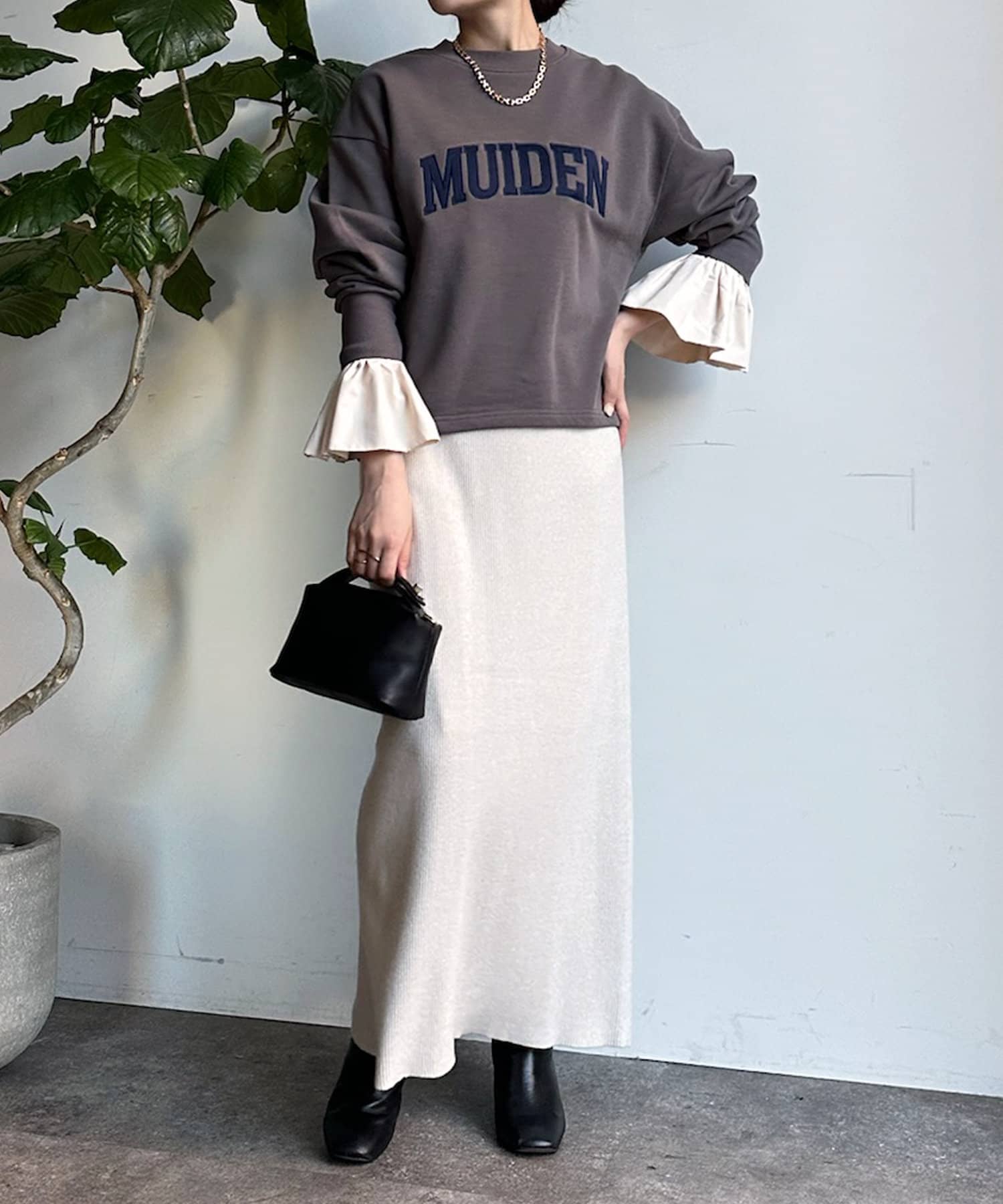程よくボディラインに沿うIラインのタイトシルエットでありながらも、ぴたぴたとした窮屈感はなくリラクシーな着心地。