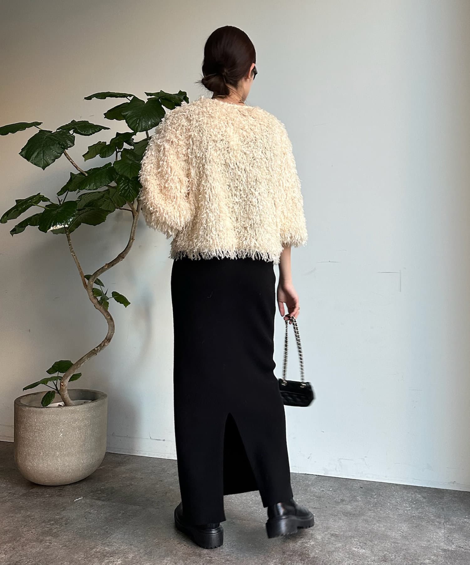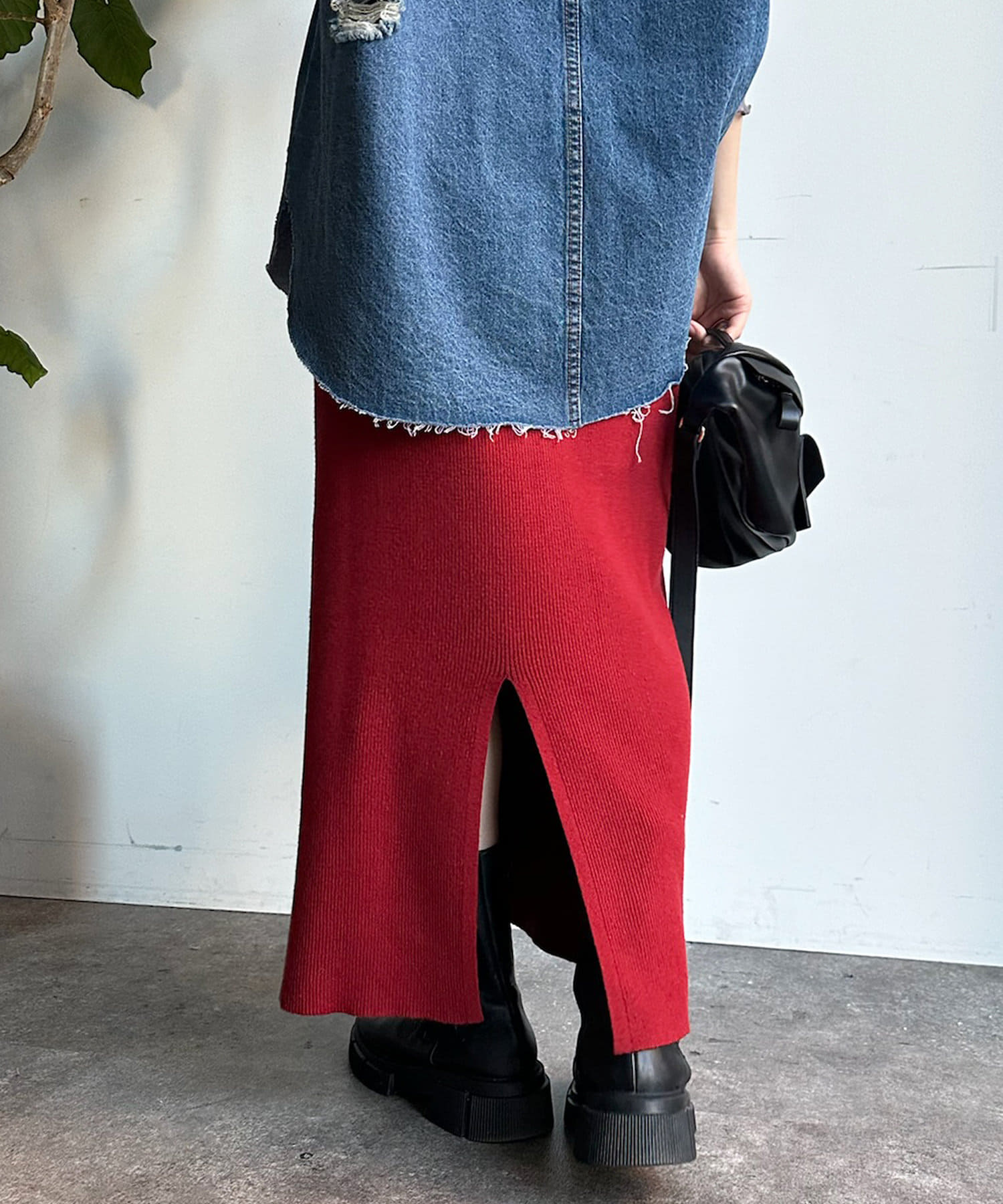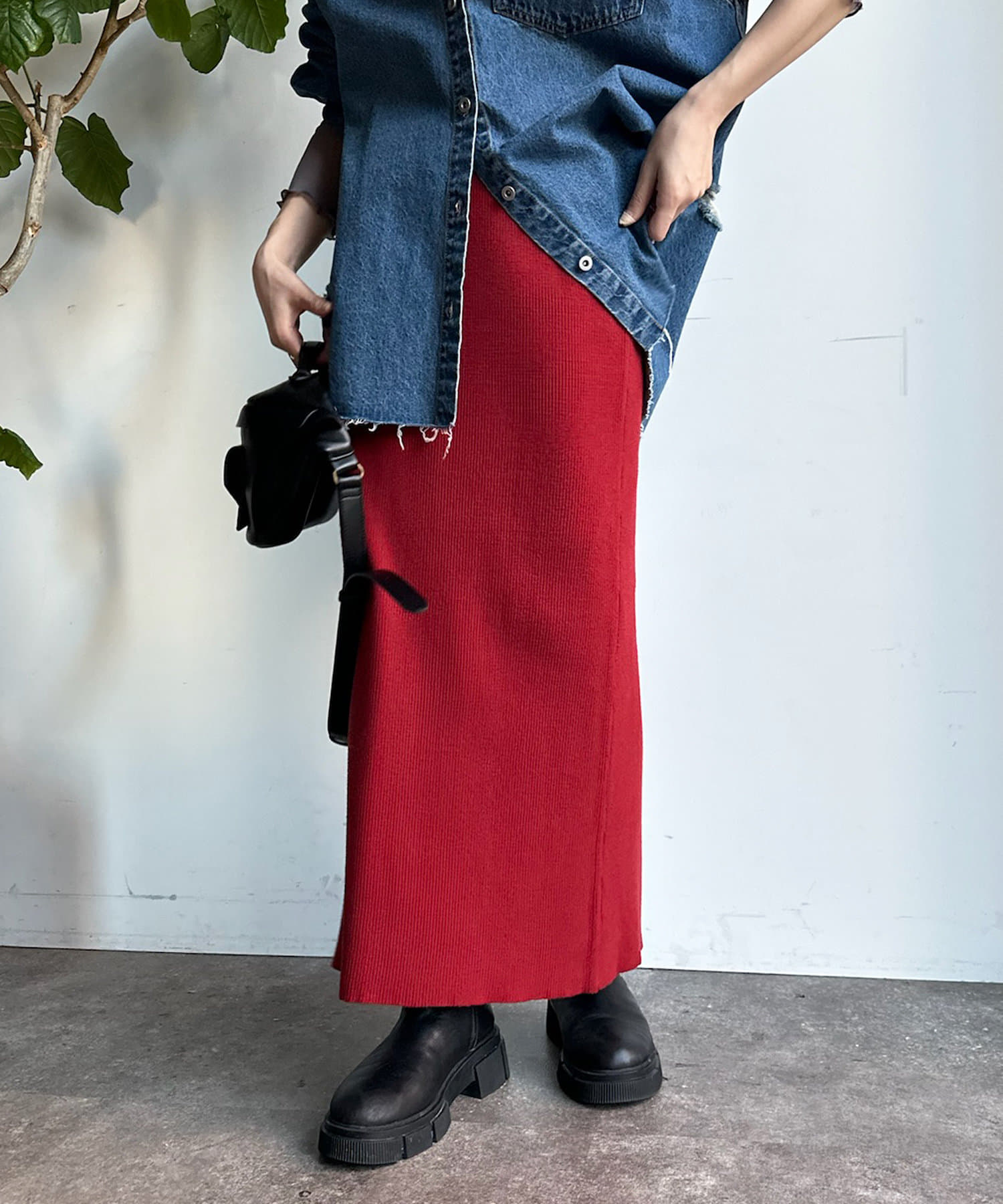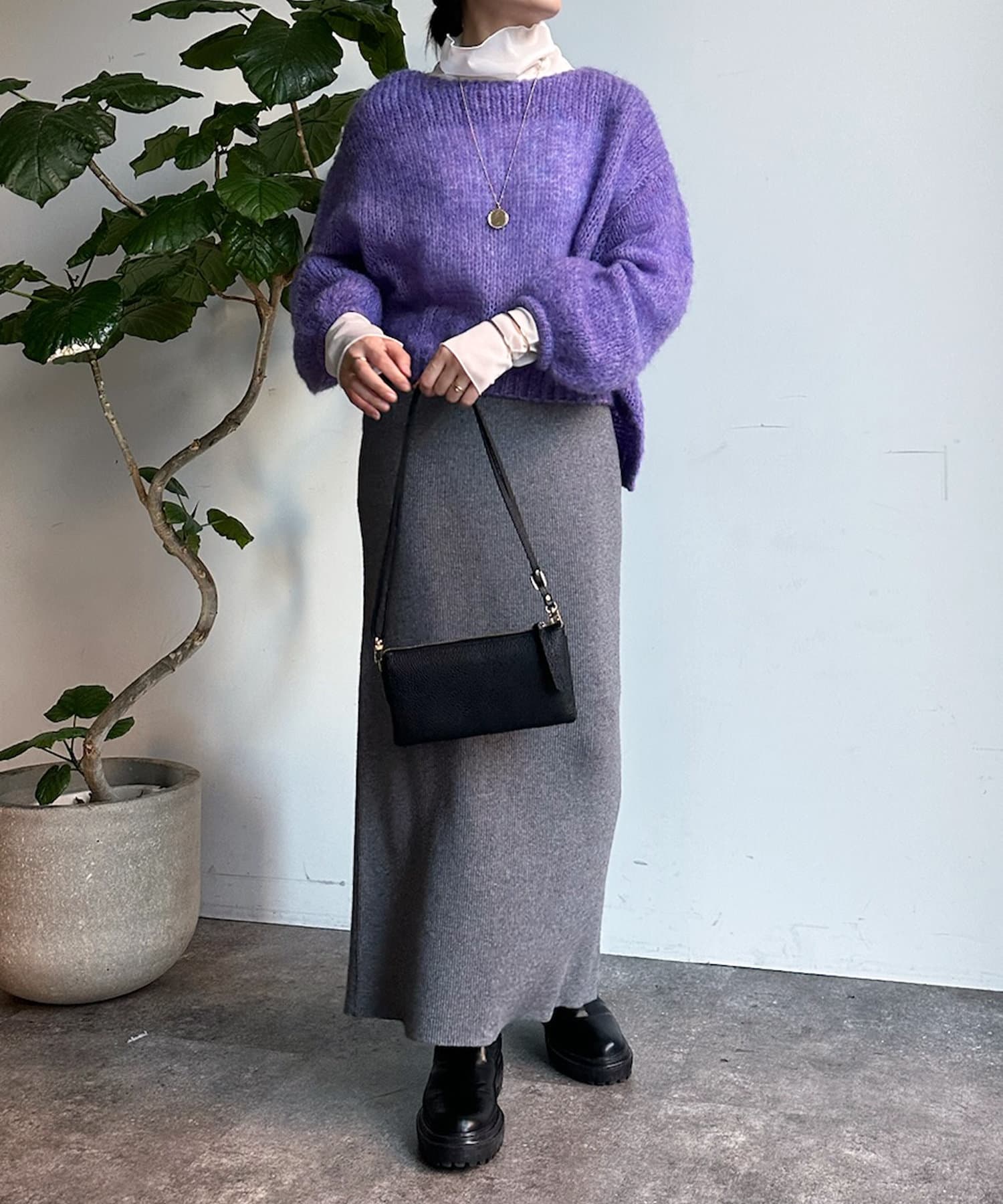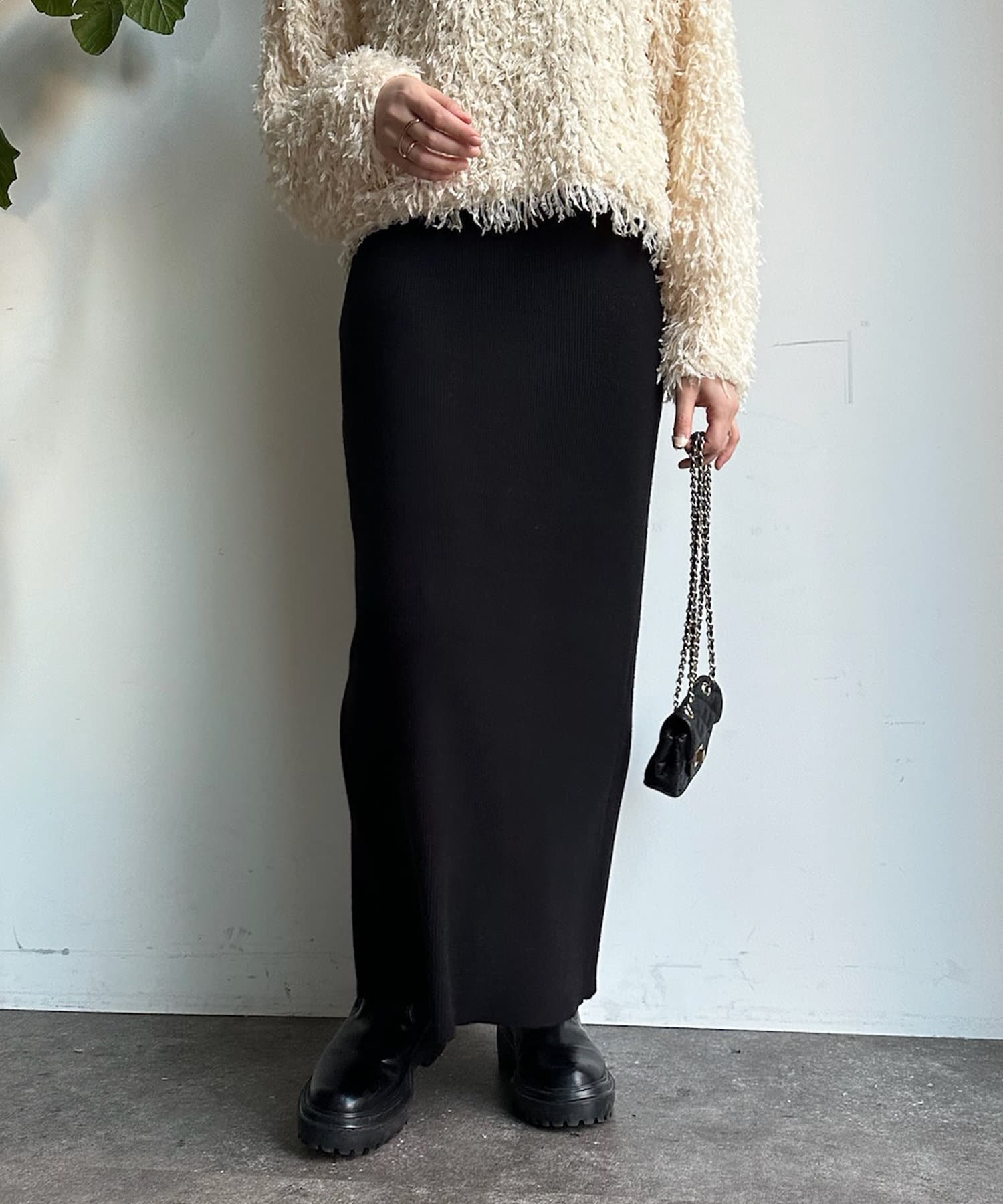 程よくボディラインに沿うIラインのタイトシルエットでありながらも、ぴたぴたとした窮屈感はなくリラクシーな着心地。