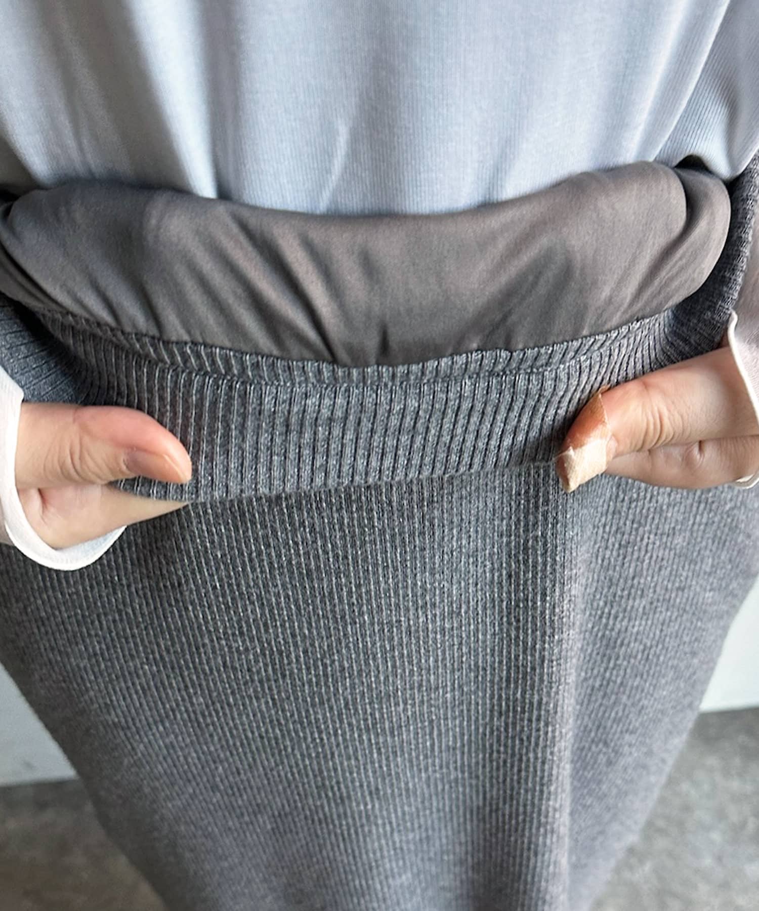 裏地もついているので、冬にも暖かく着ていただけます。ウエストはもちろんオールゴム仕様なので、とってもラクチンですよ。