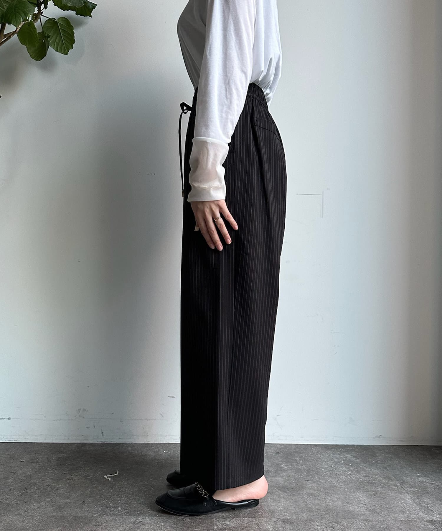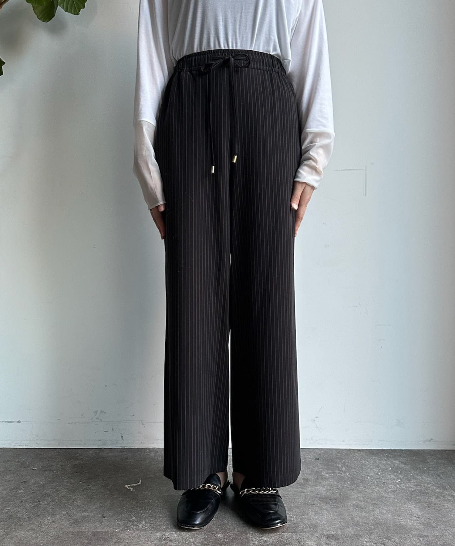 マニッシュな印象を与えてくれるのストライプパンツが登場!