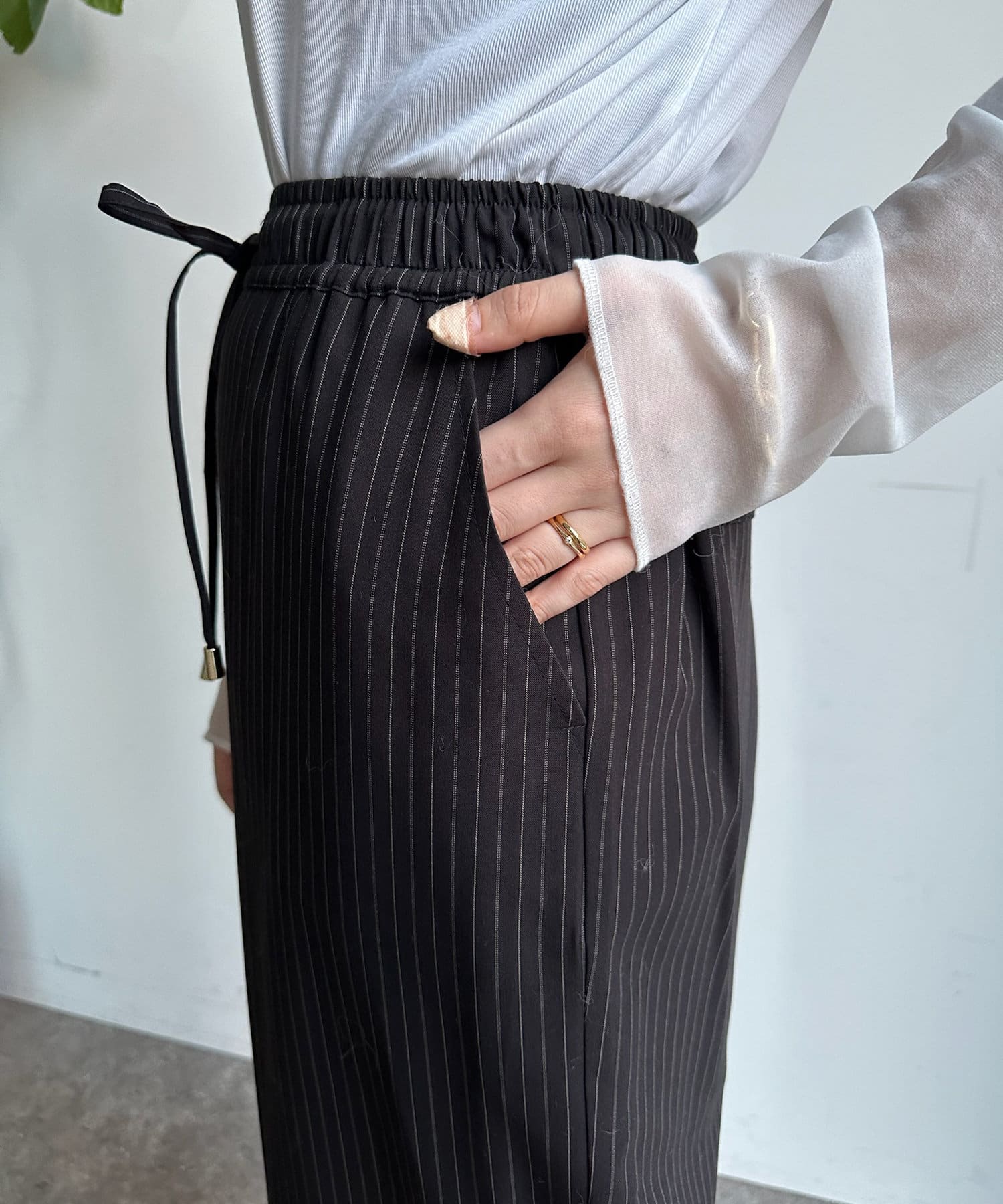 ウエストが紐使用なので調整可能も嬉しく、インしても紐のデザインが可愛く着用できるアイテムですよ!