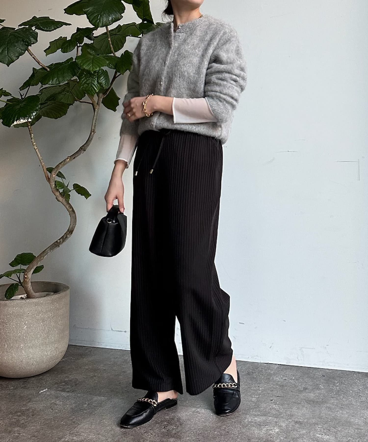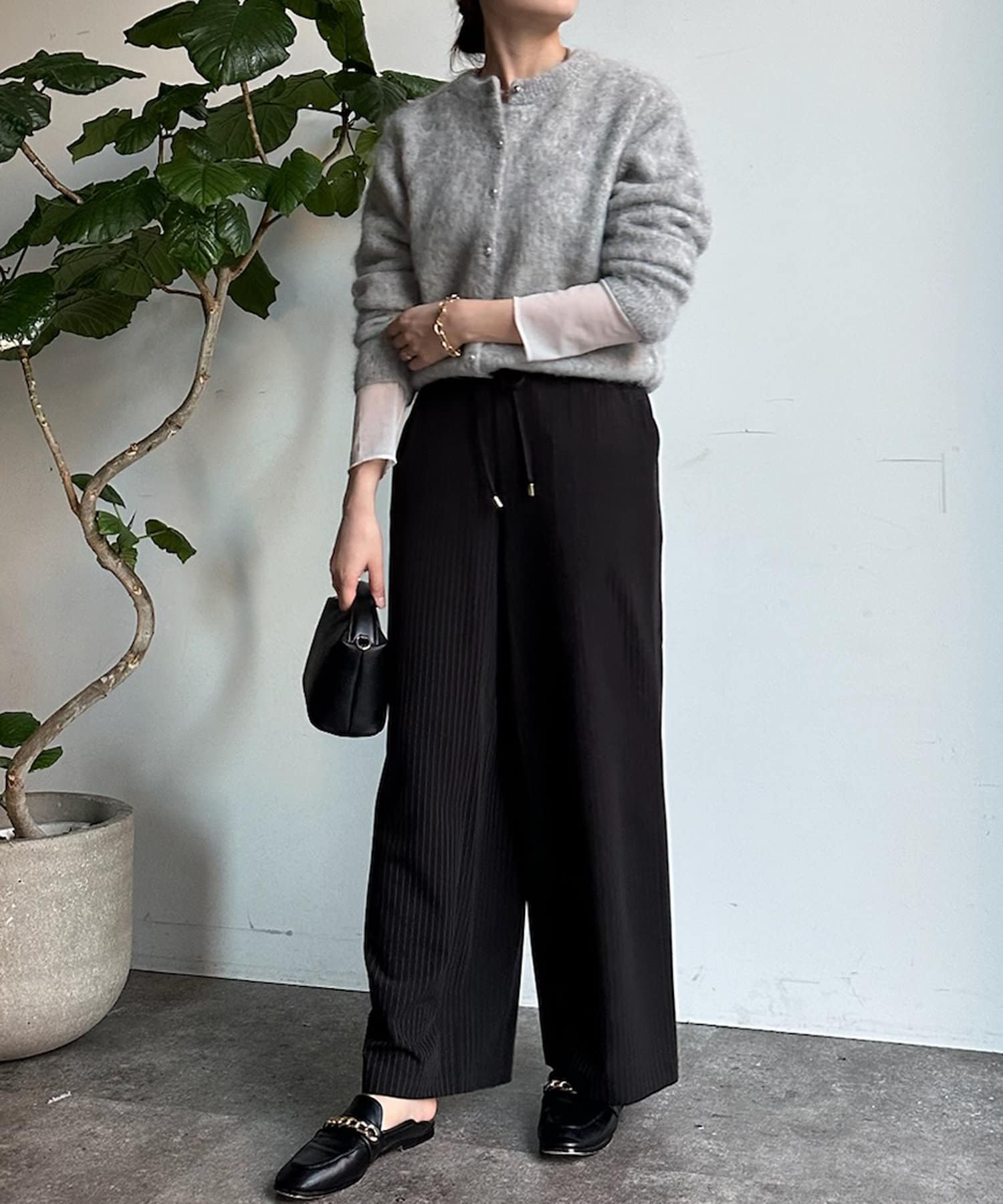 シルエットの為、体型ラインを拾わないパンツです。