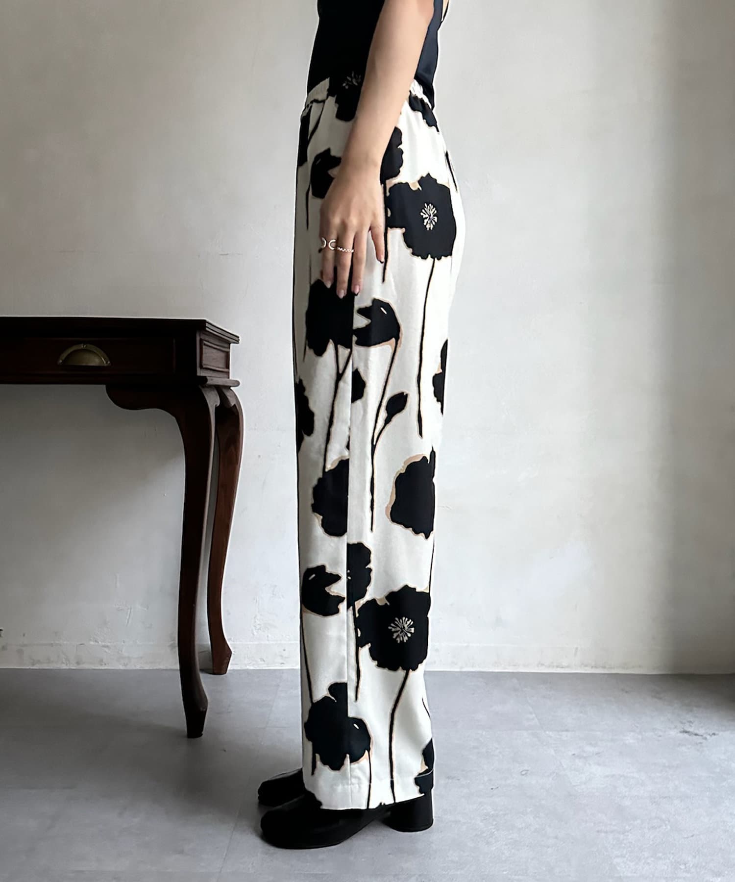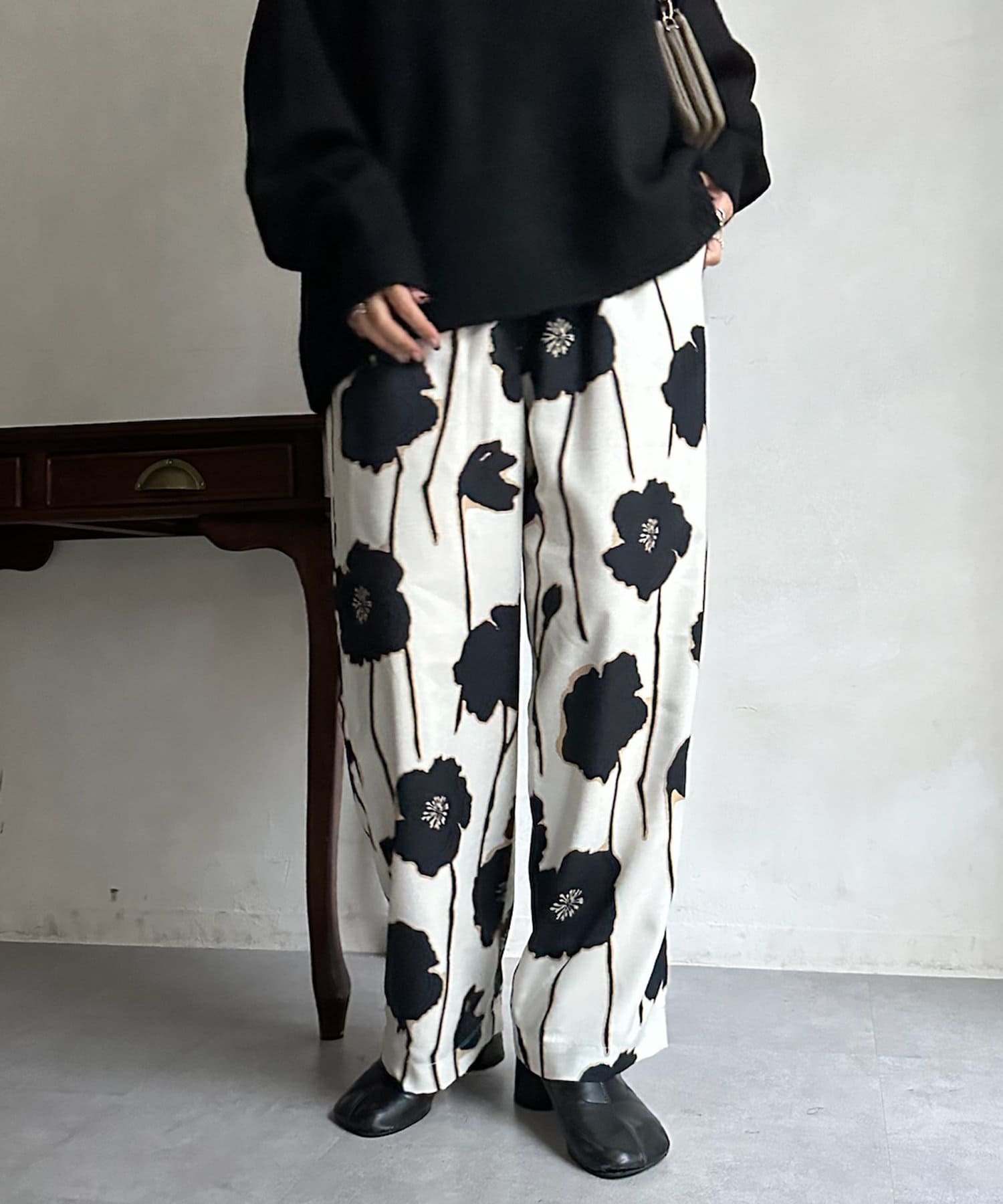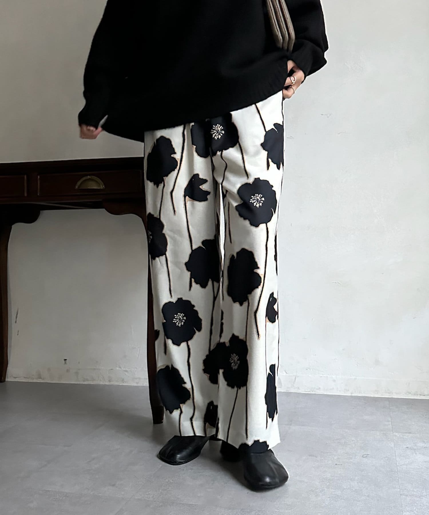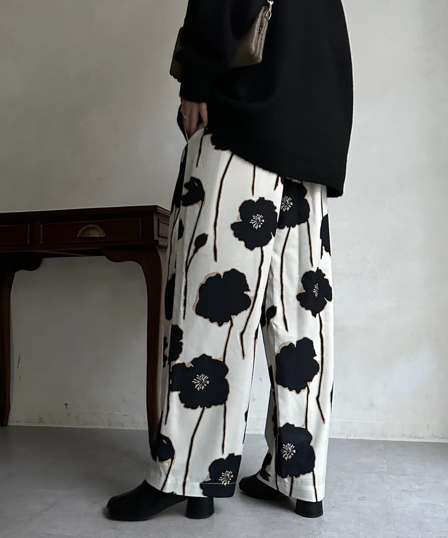 スタイリングを華やかに演出するフラワー柄パンツ!