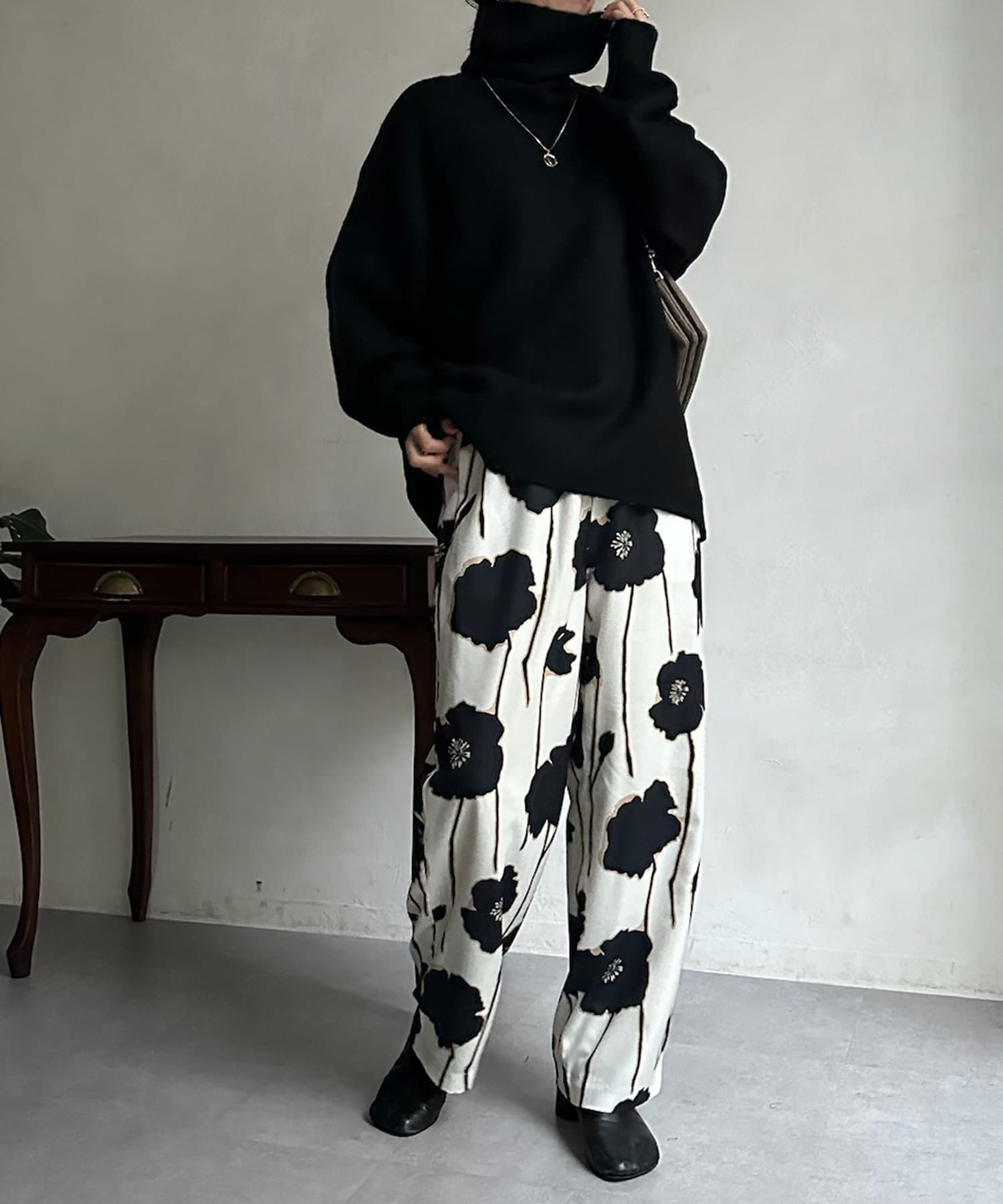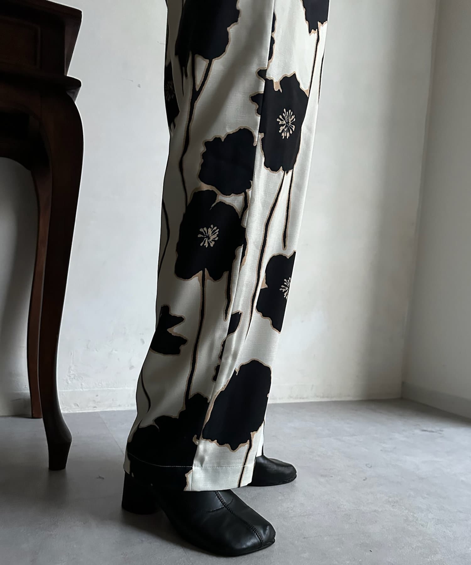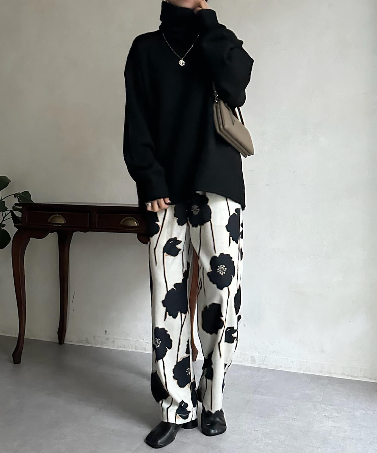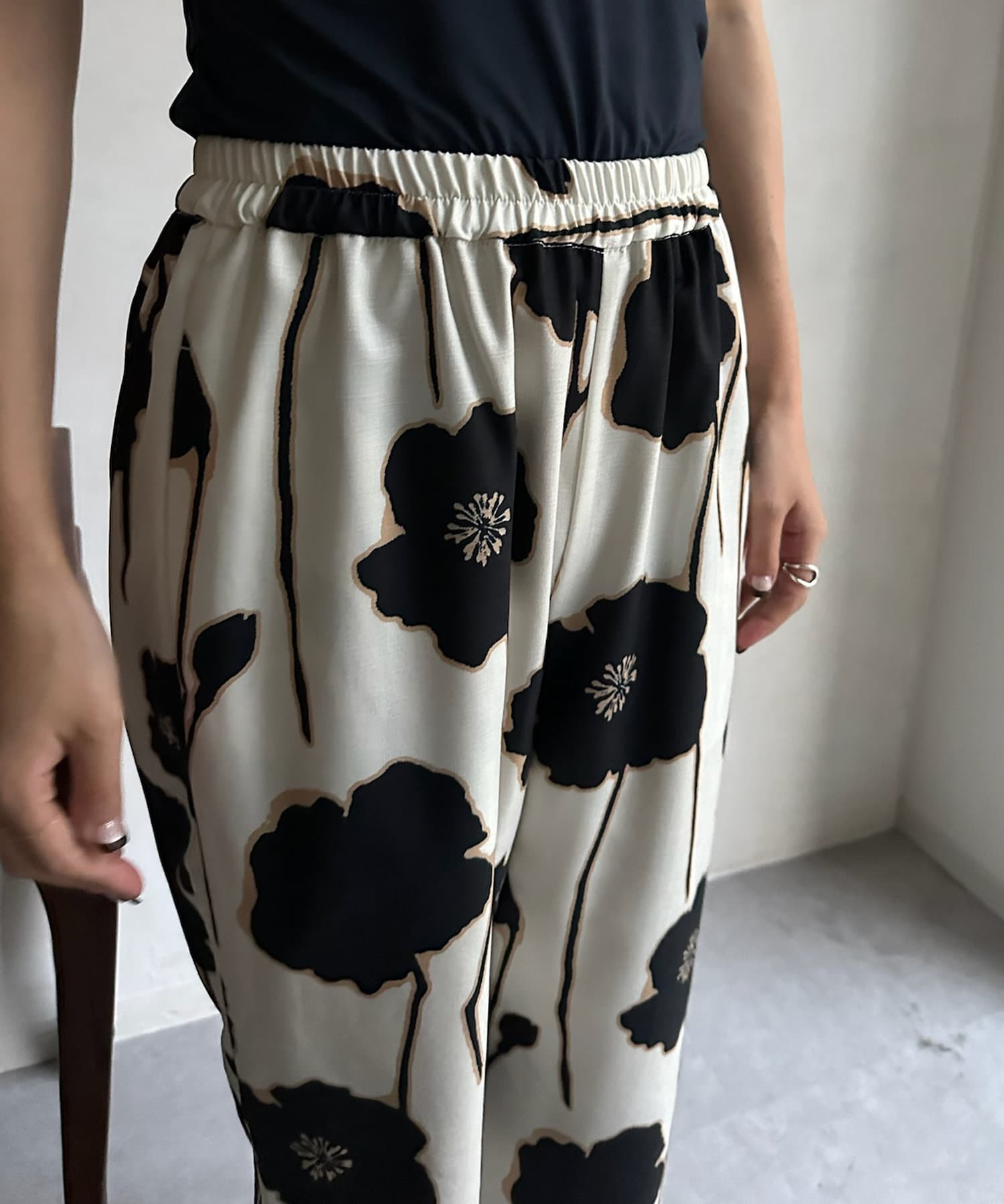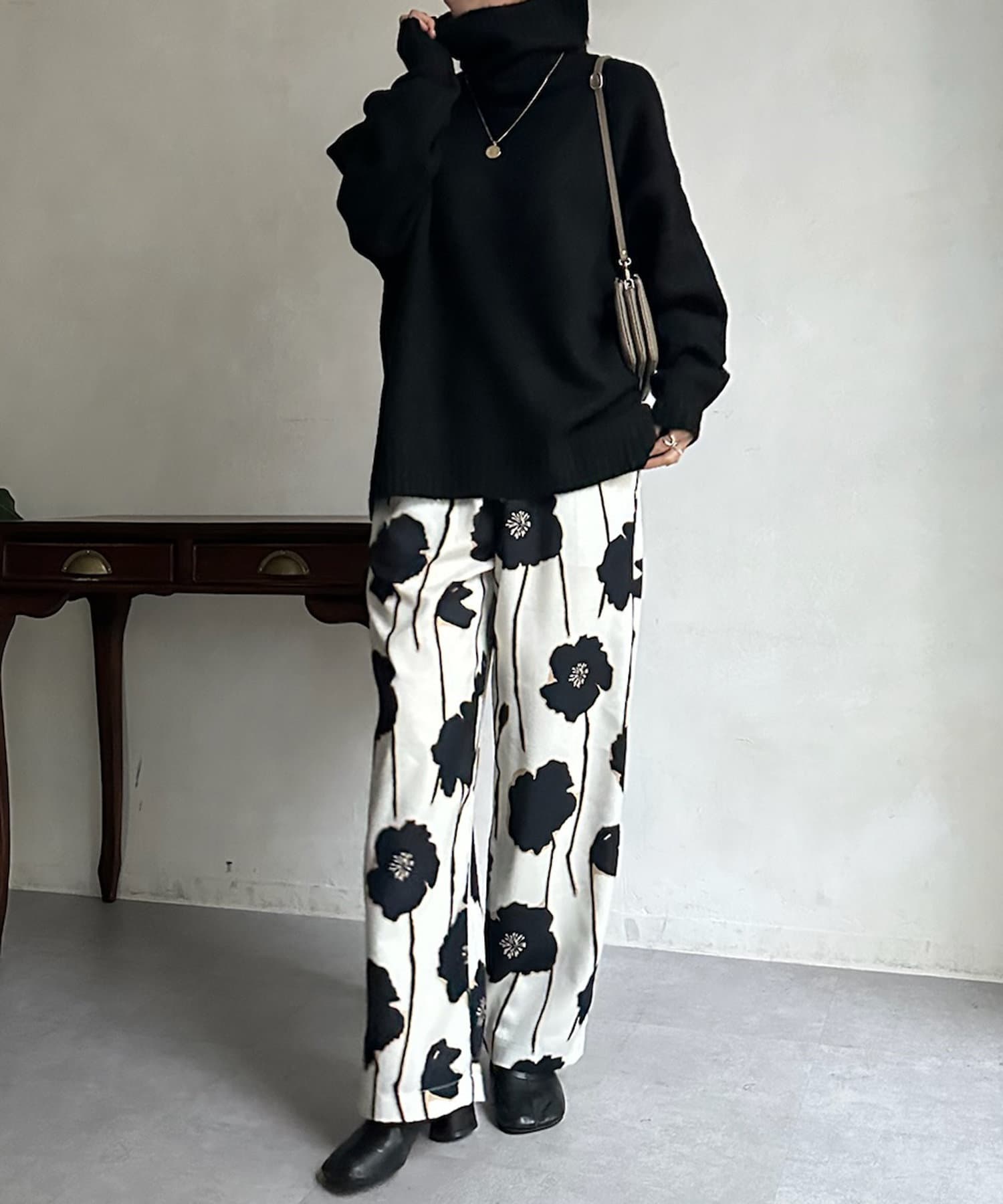 スタイリングを華やかに演出するフラワー柄パンツ!
