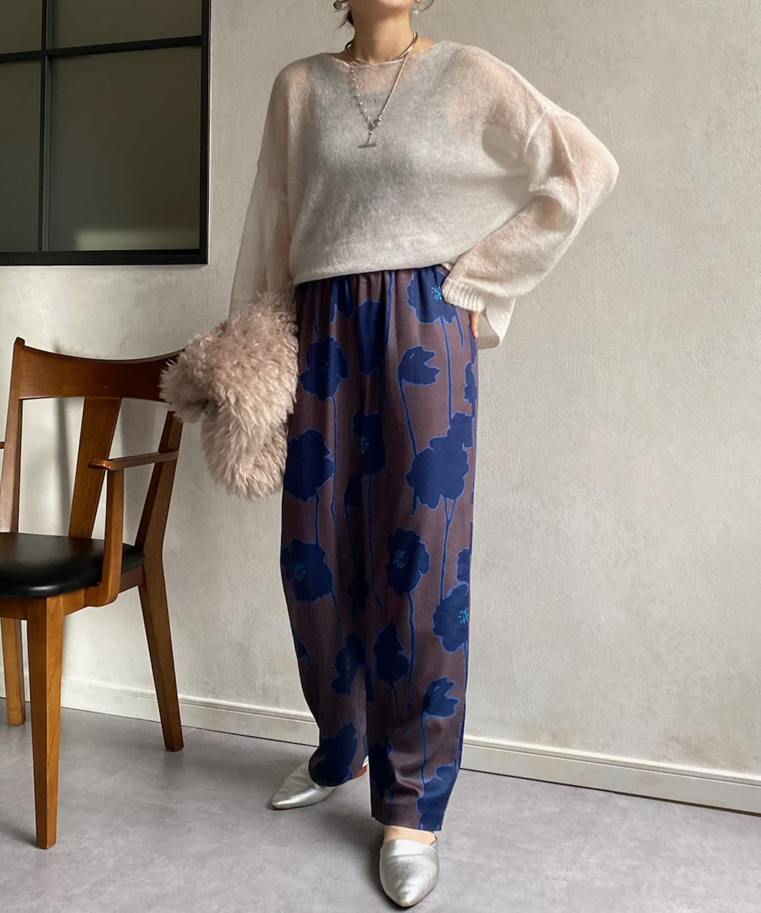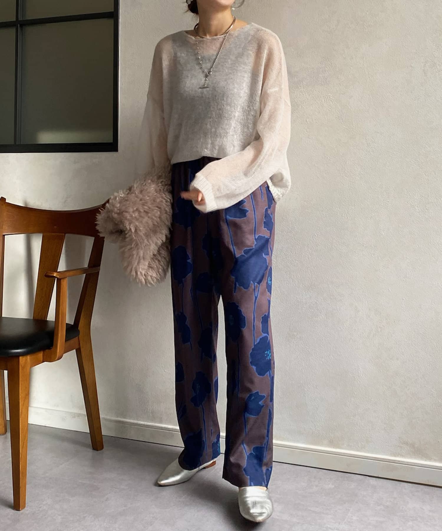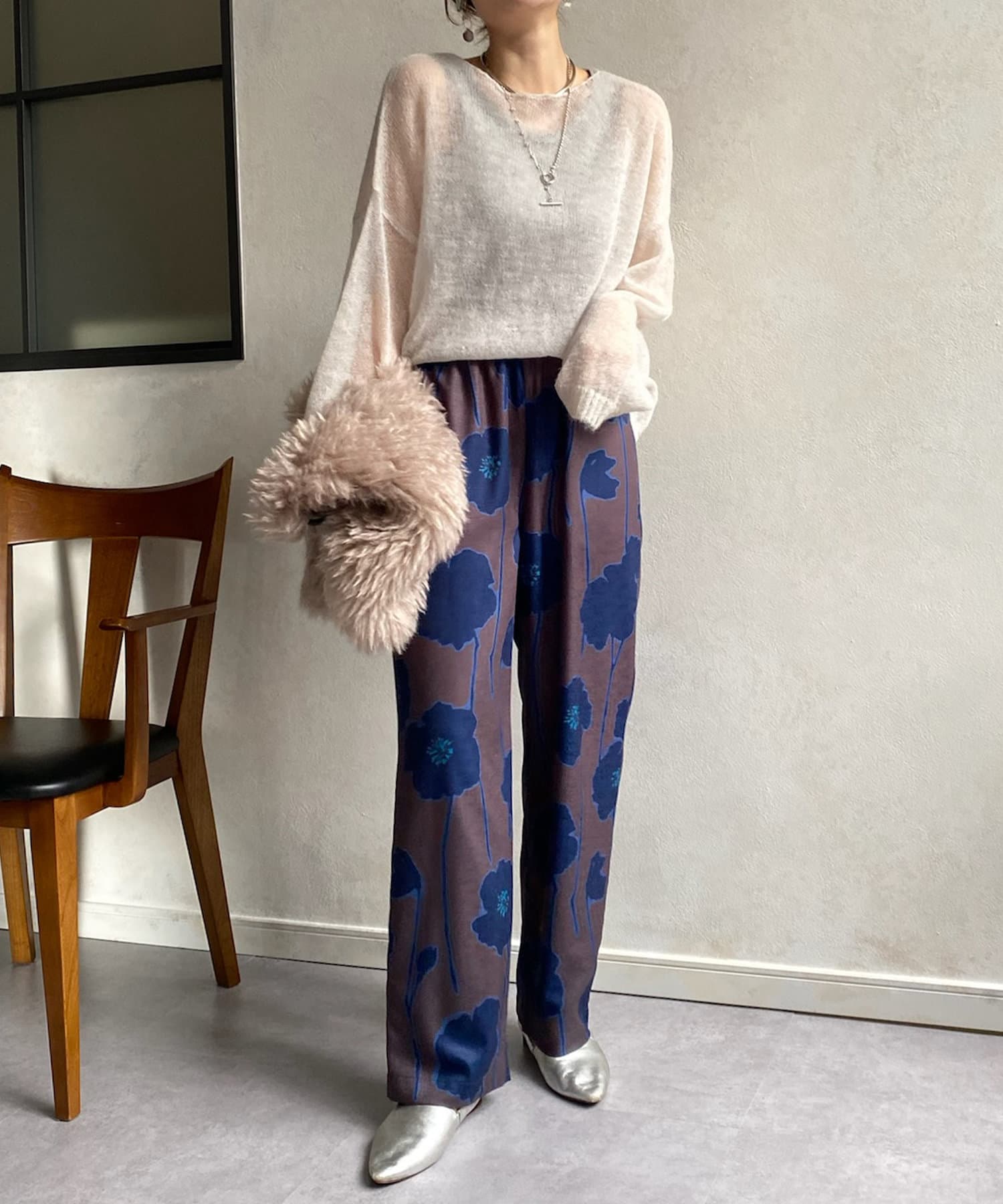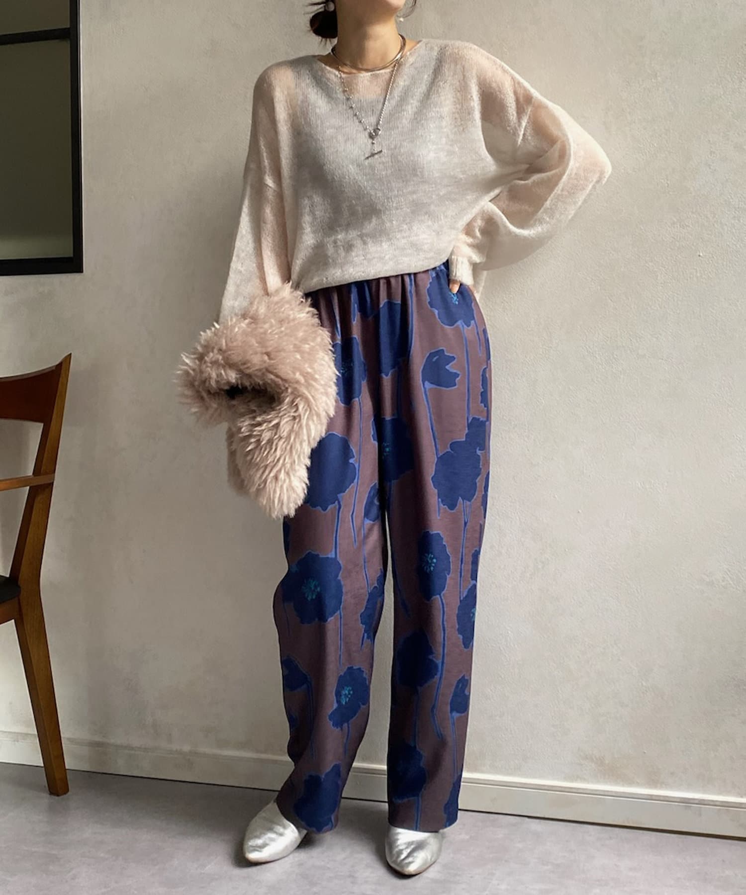 スタイリングを華やかに演出するフラワー柄パンツ!