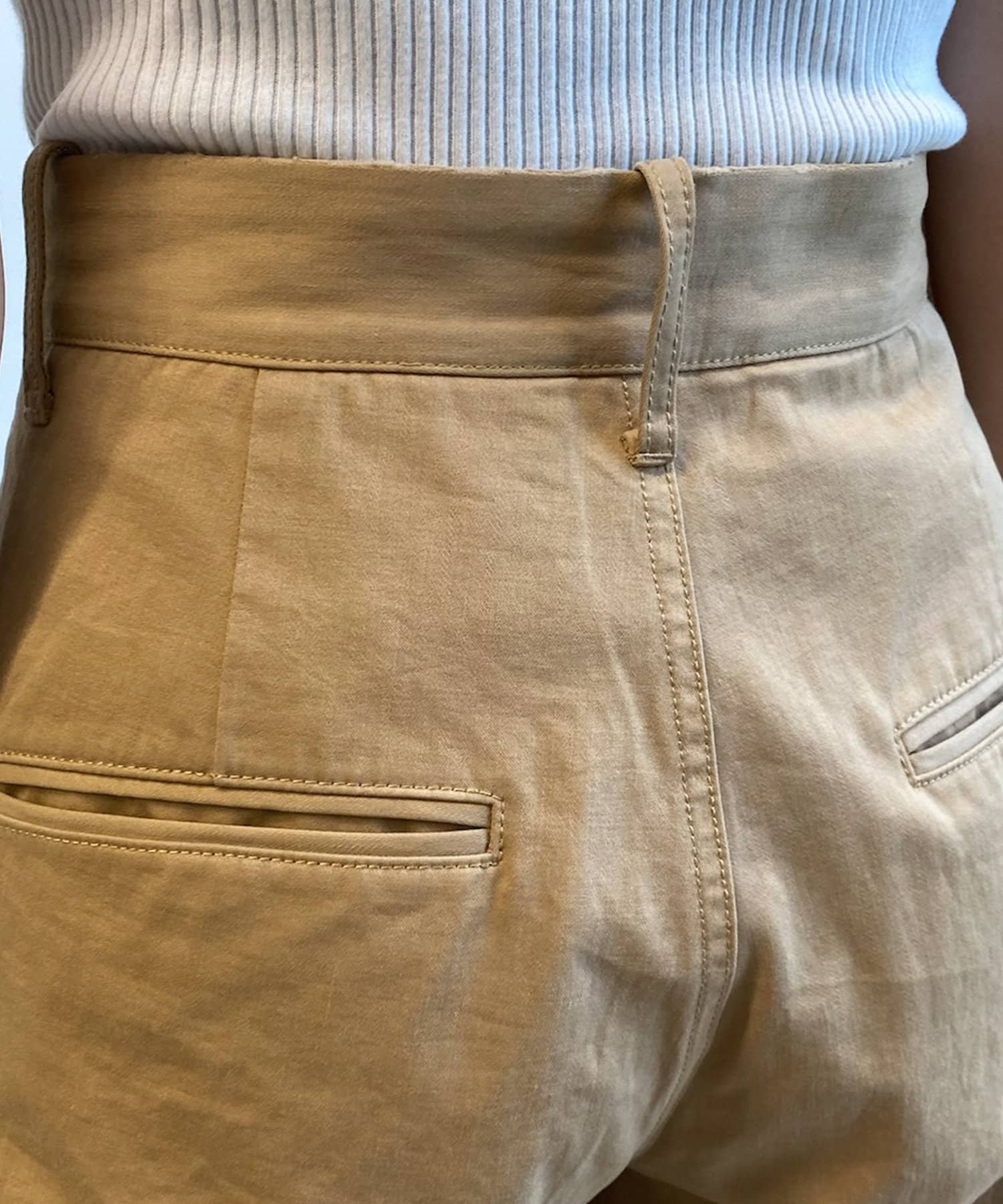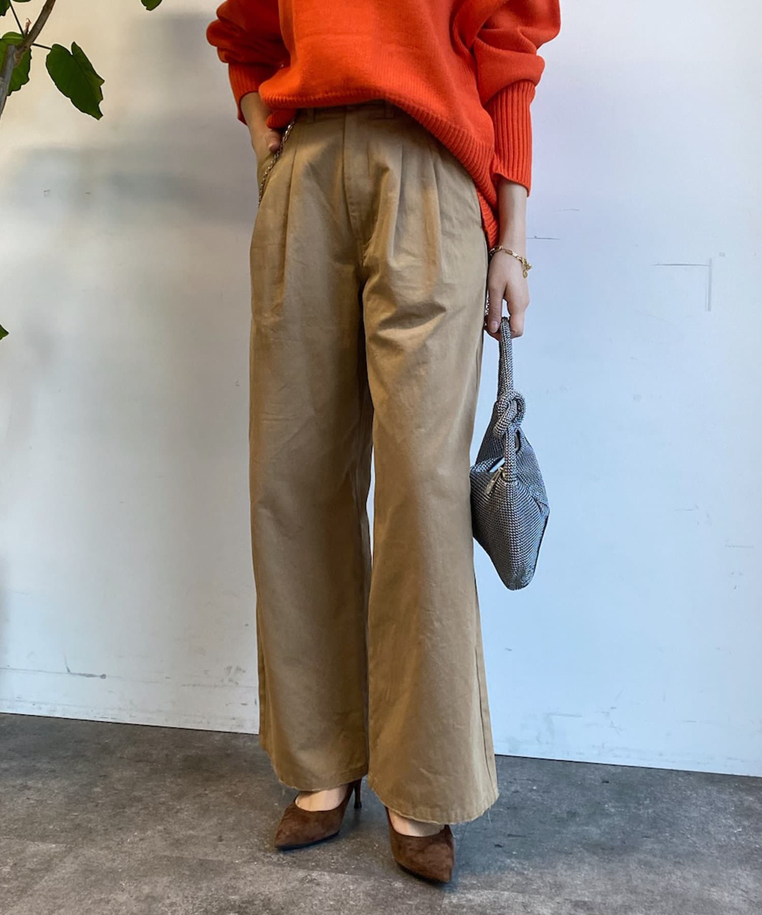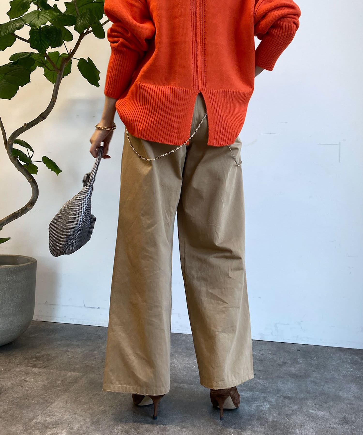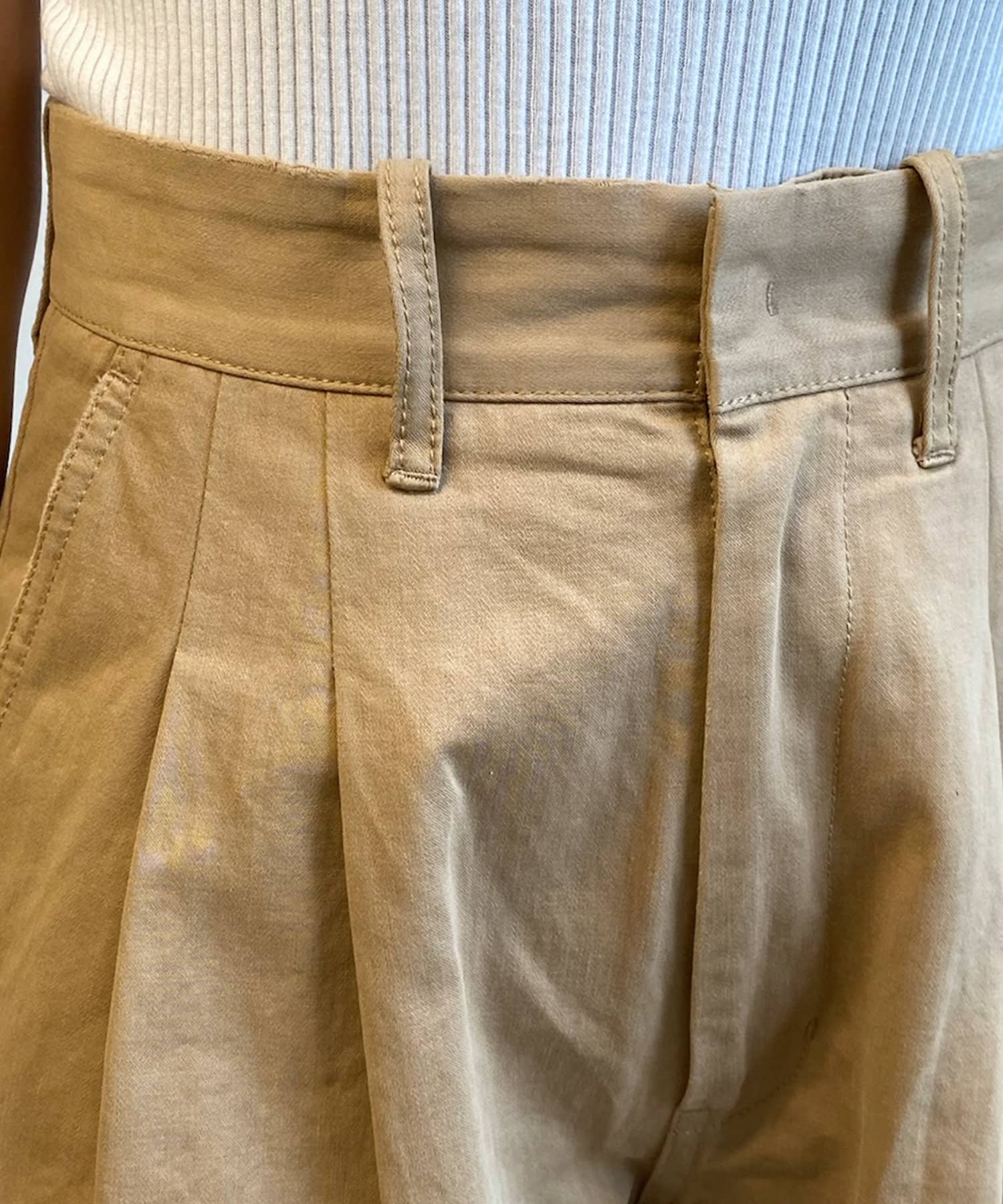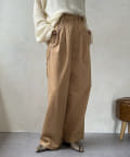 ワイドなシルエットながらもフロントに施したツータックが、ウエスト周りをすっきりと見せてくれます。