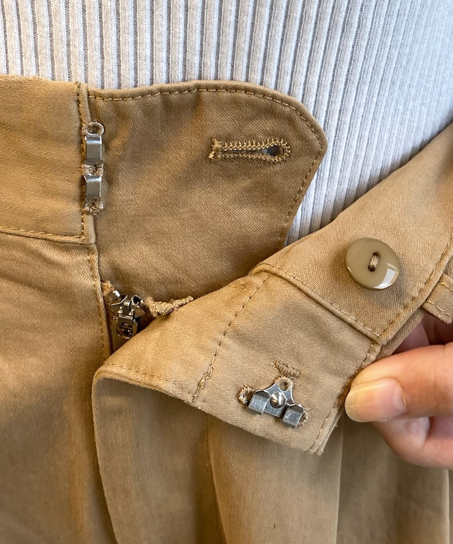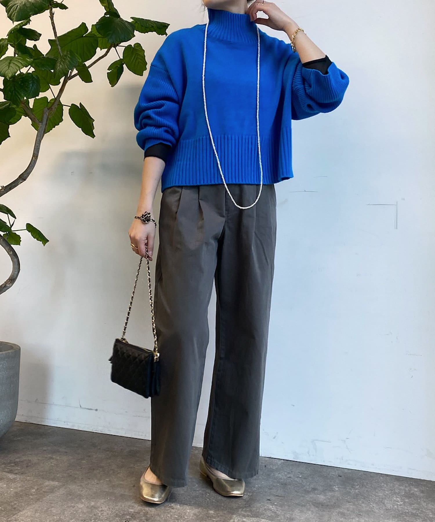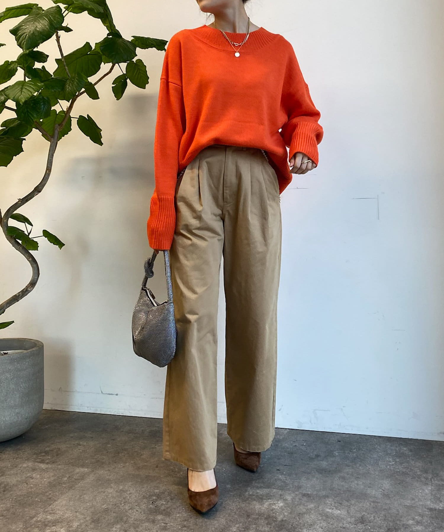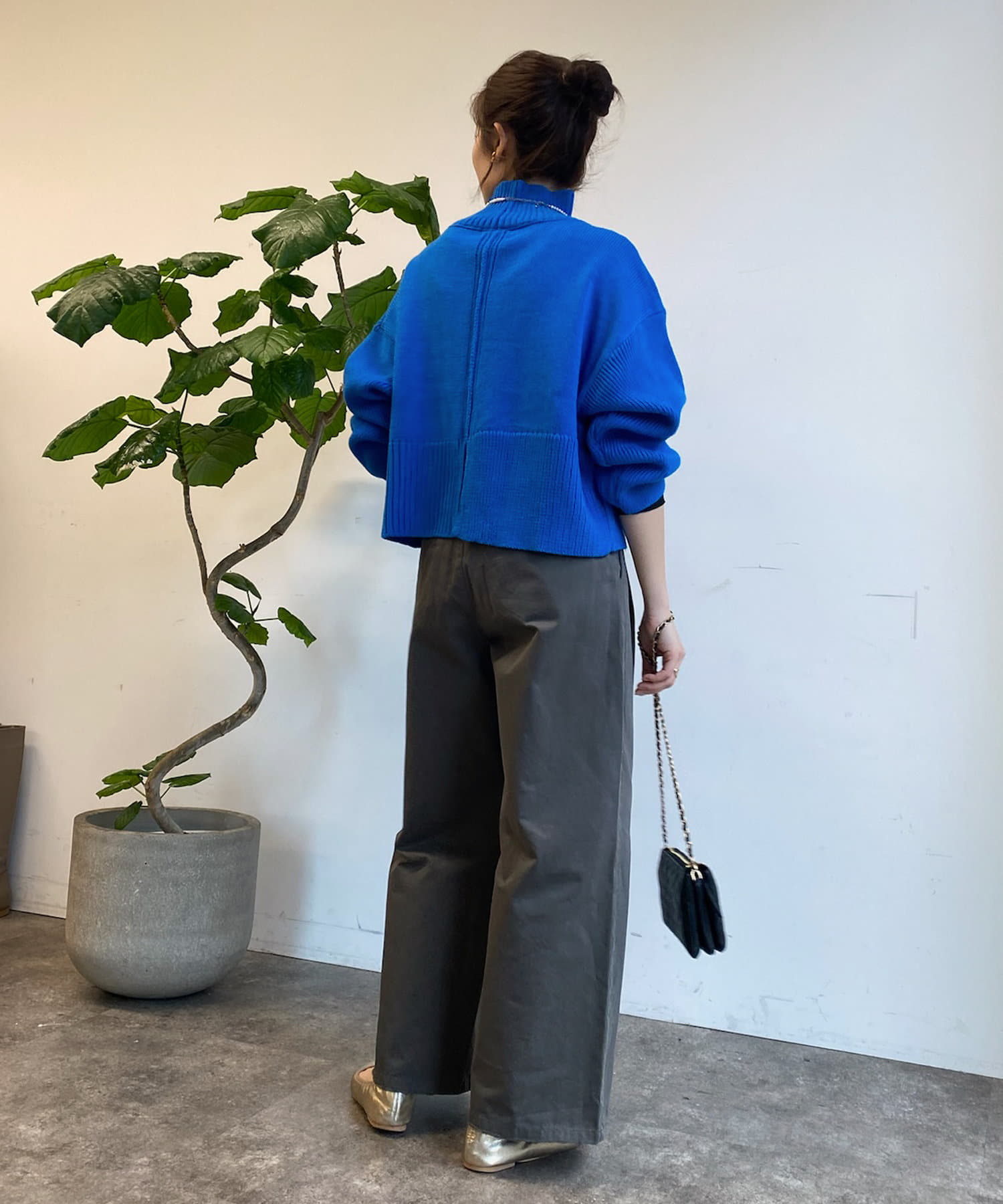 ワイドなシルエットながらもフロントに施したツータックが、ウエスト周りをすっきりと見せてくれます。