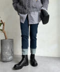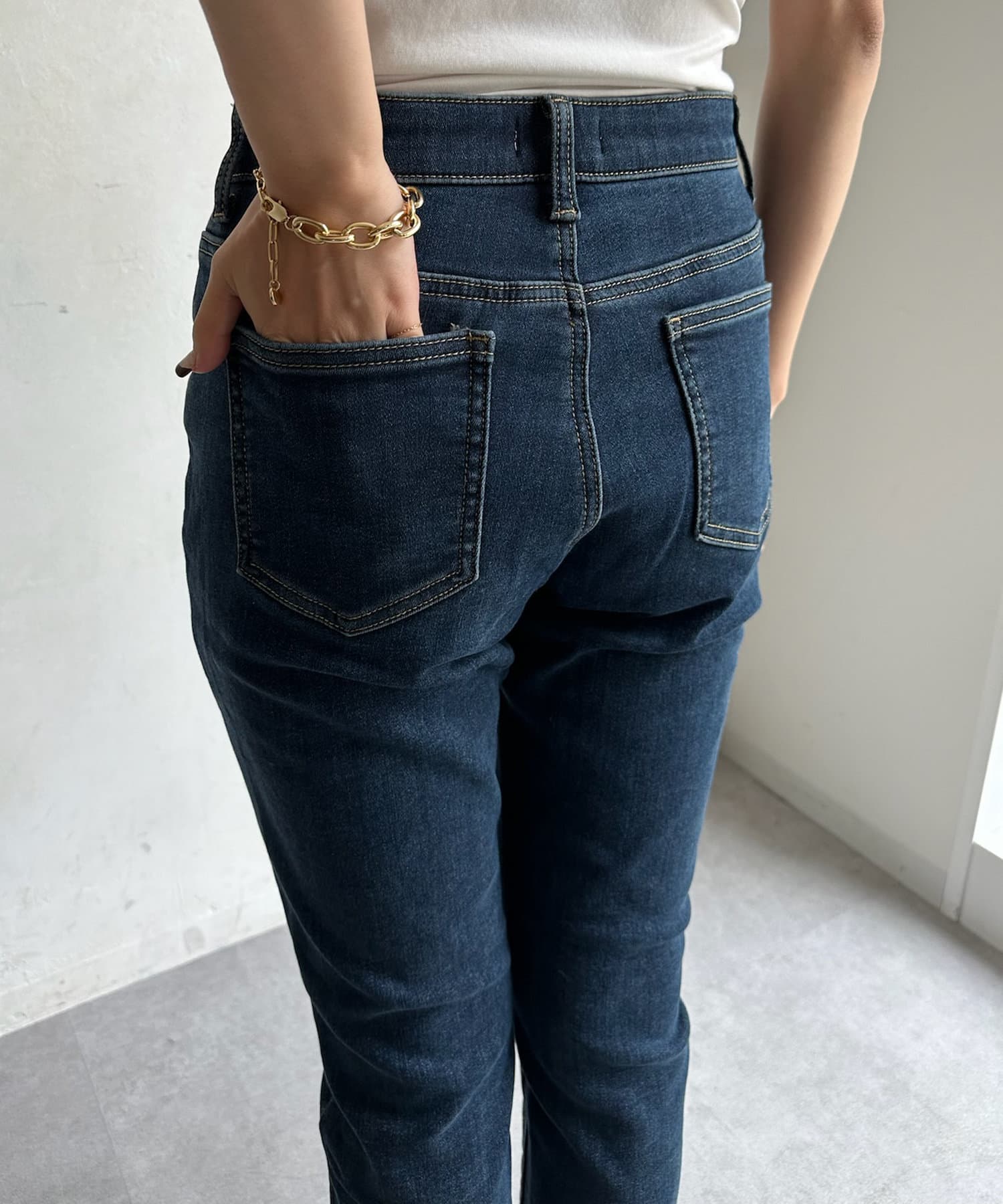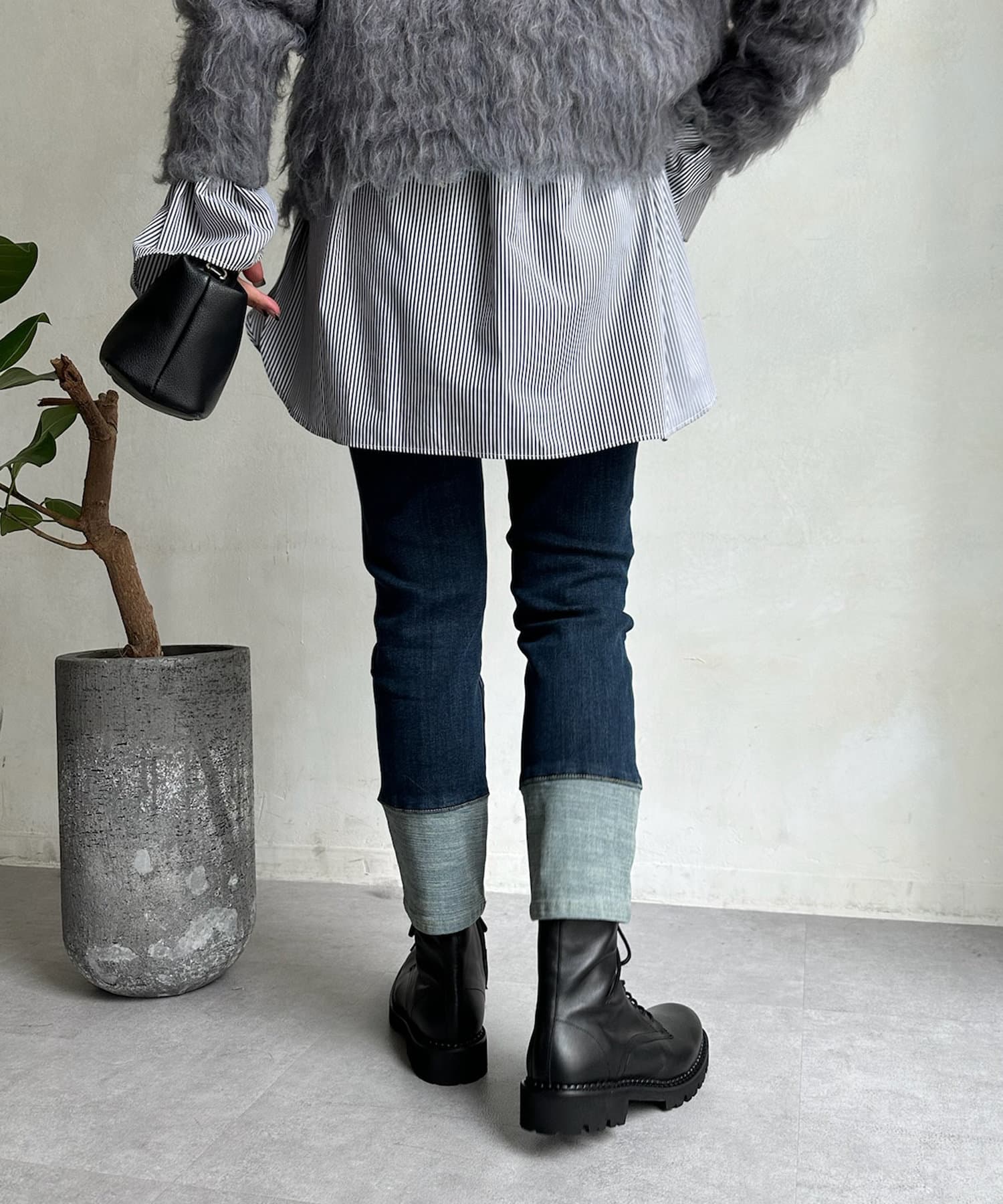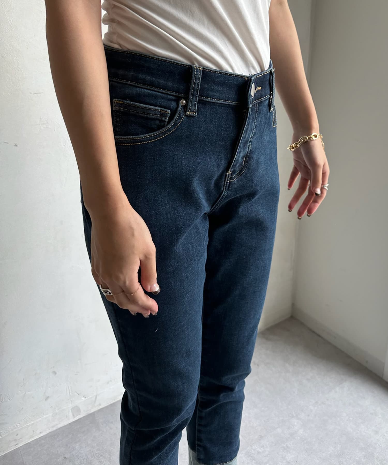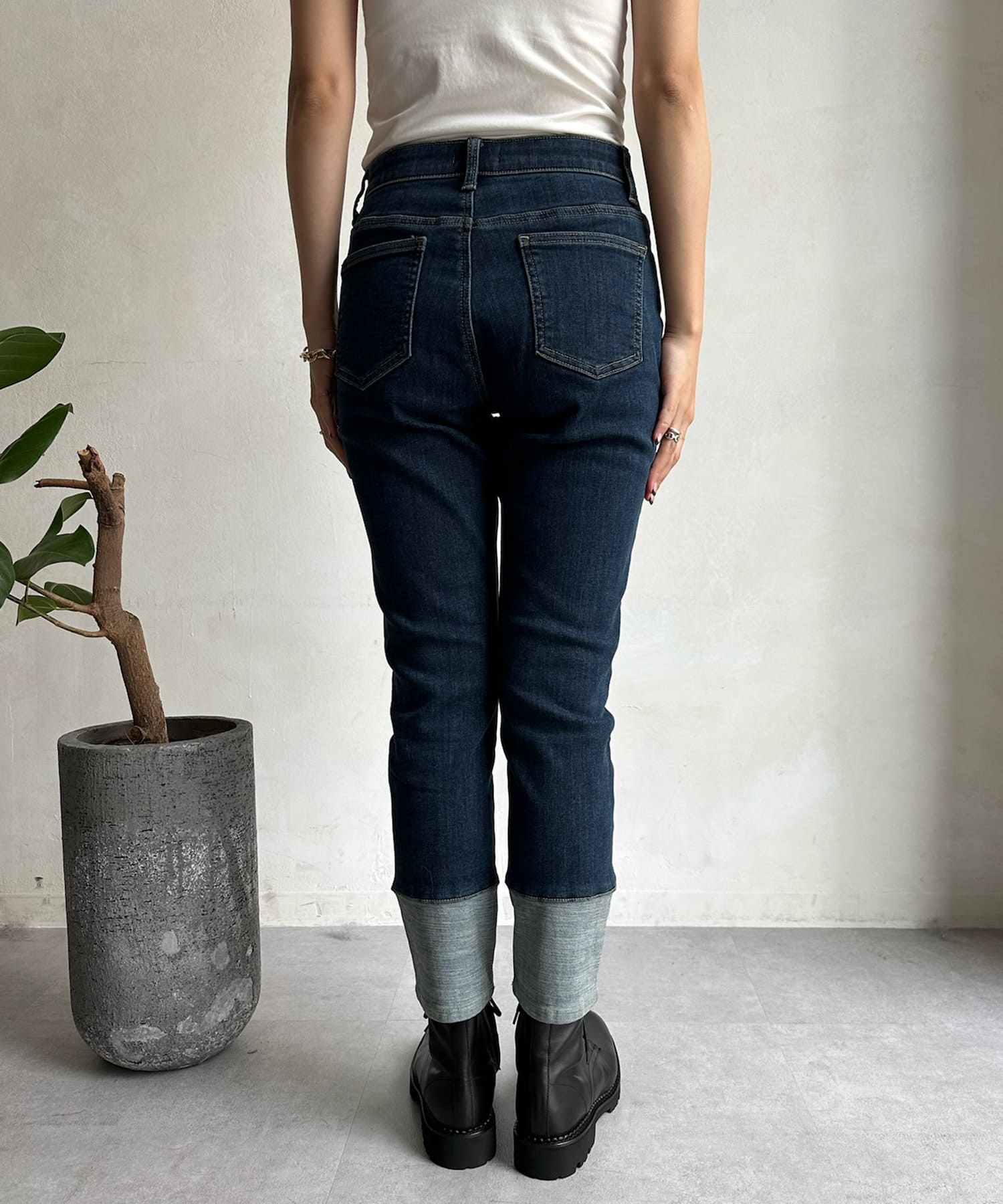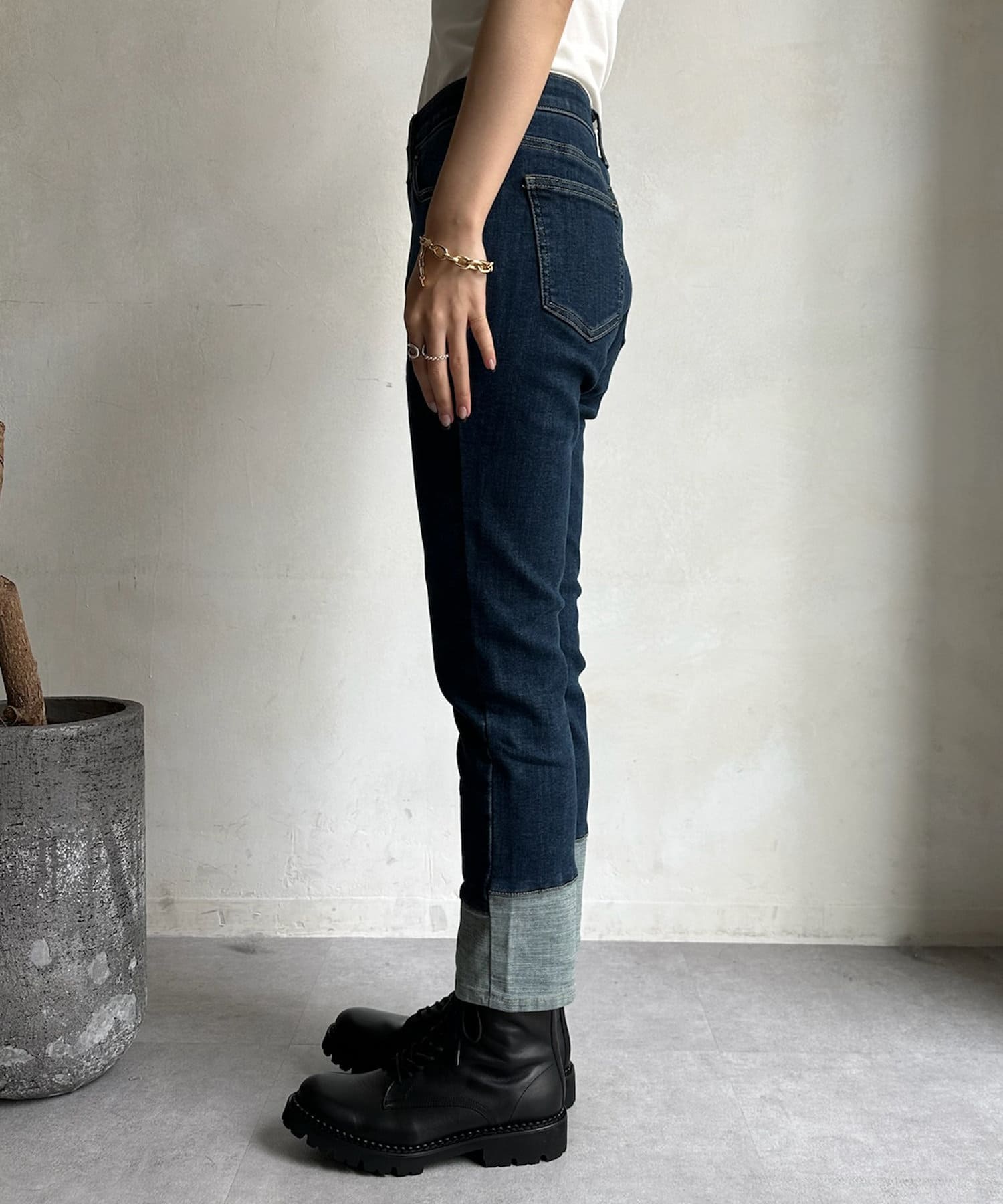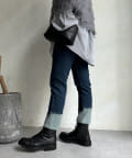【INDIMARK】【WEB限定】裏起毛折り返し風デザインボーイフレンドデニム