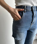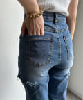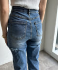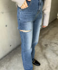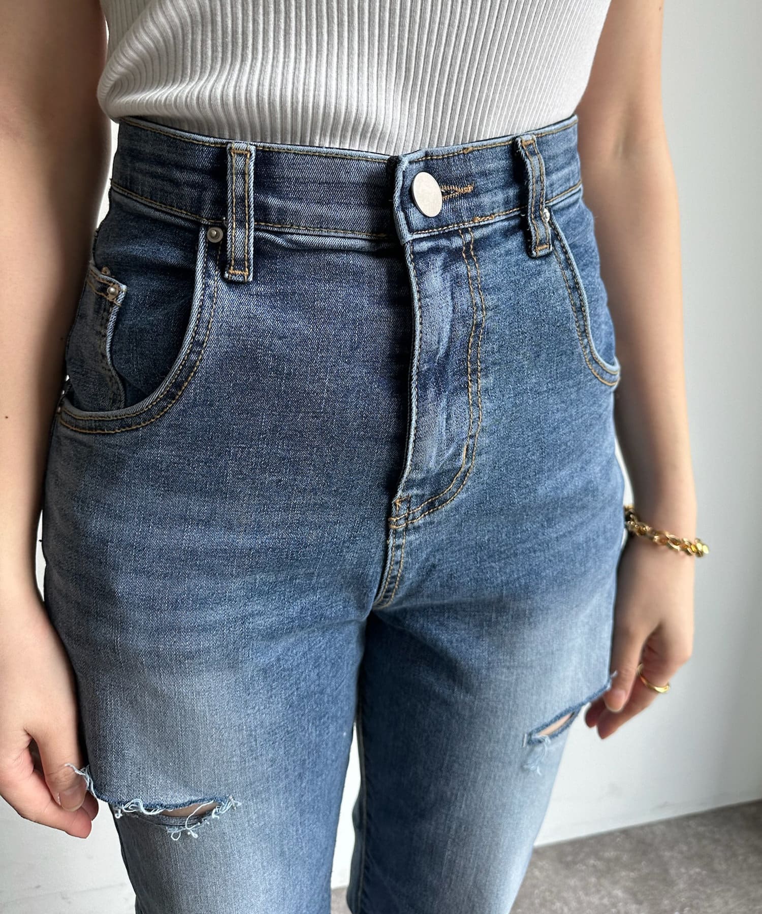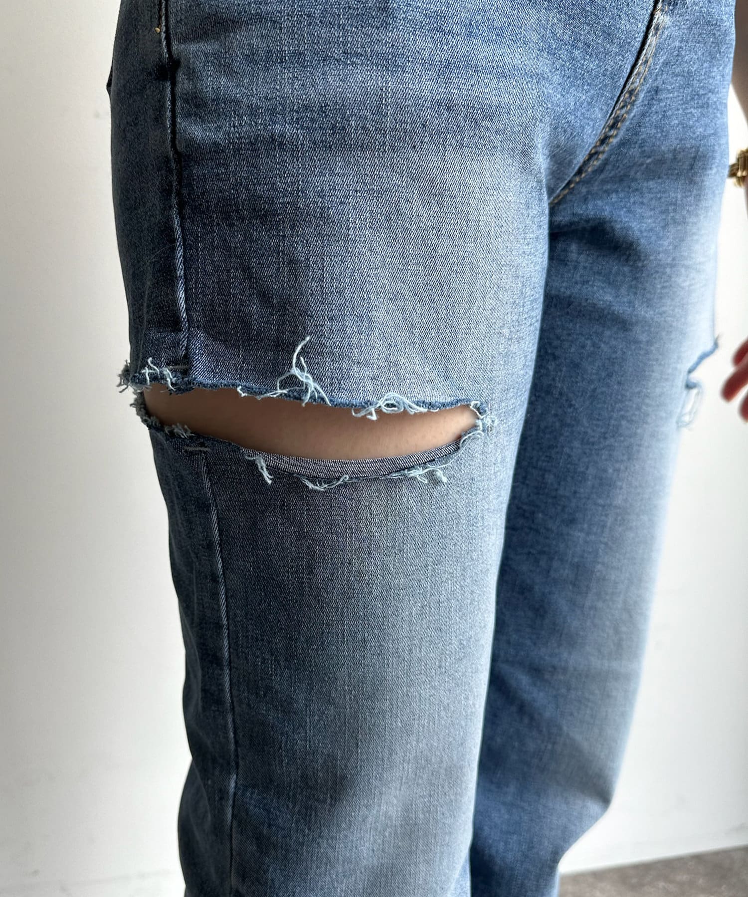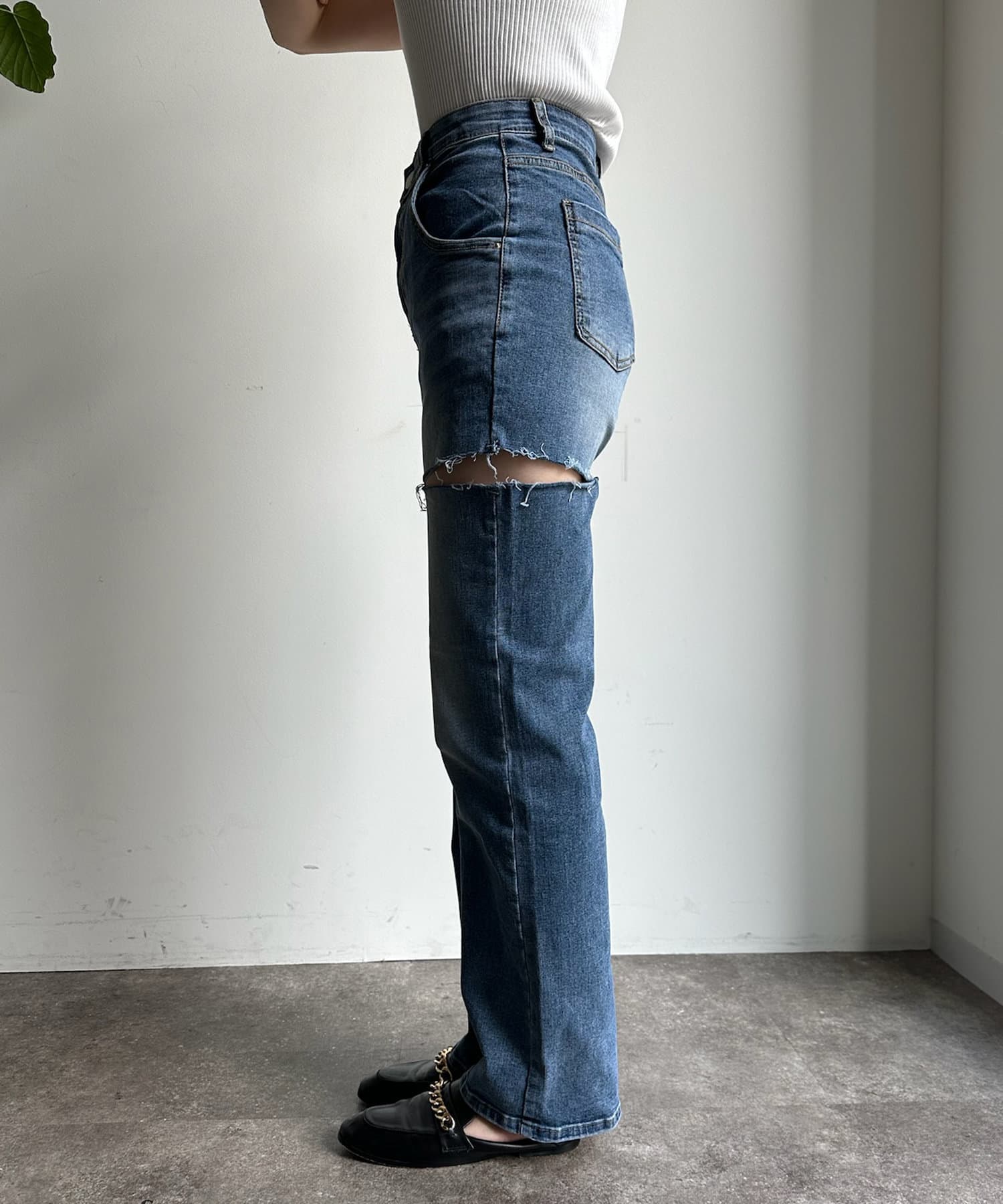 太ももにほつれ感のあるカットオフデザインが施されています。