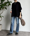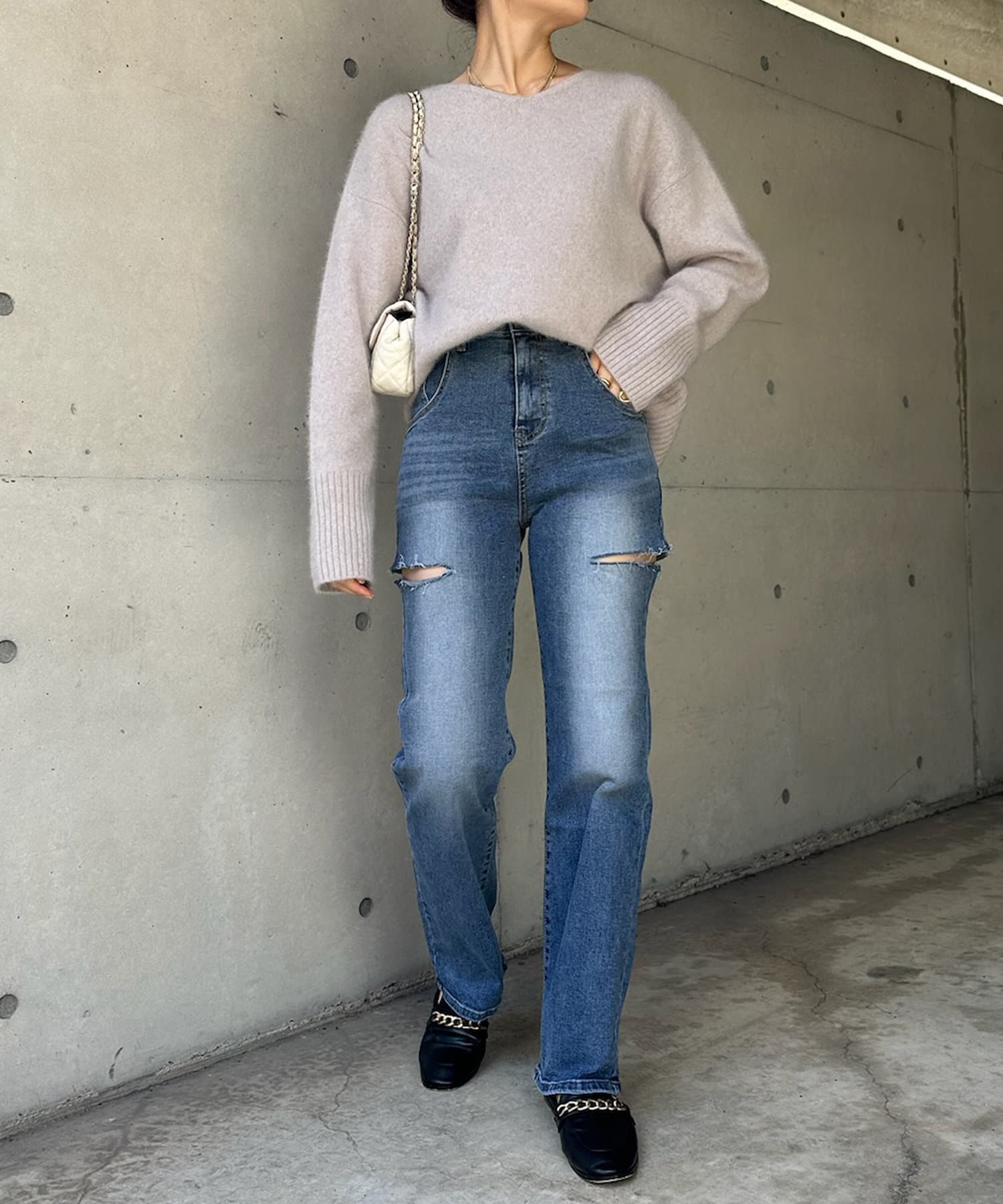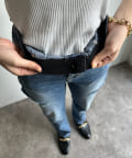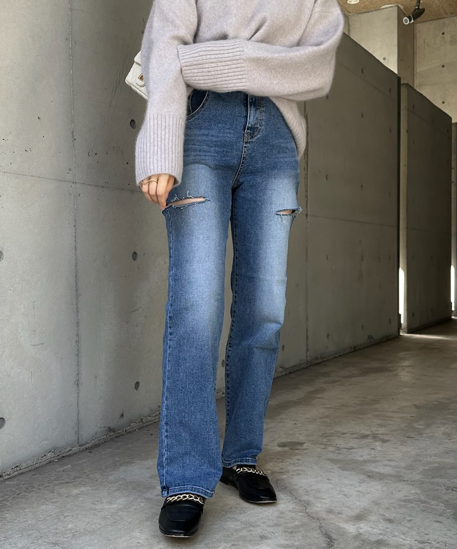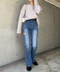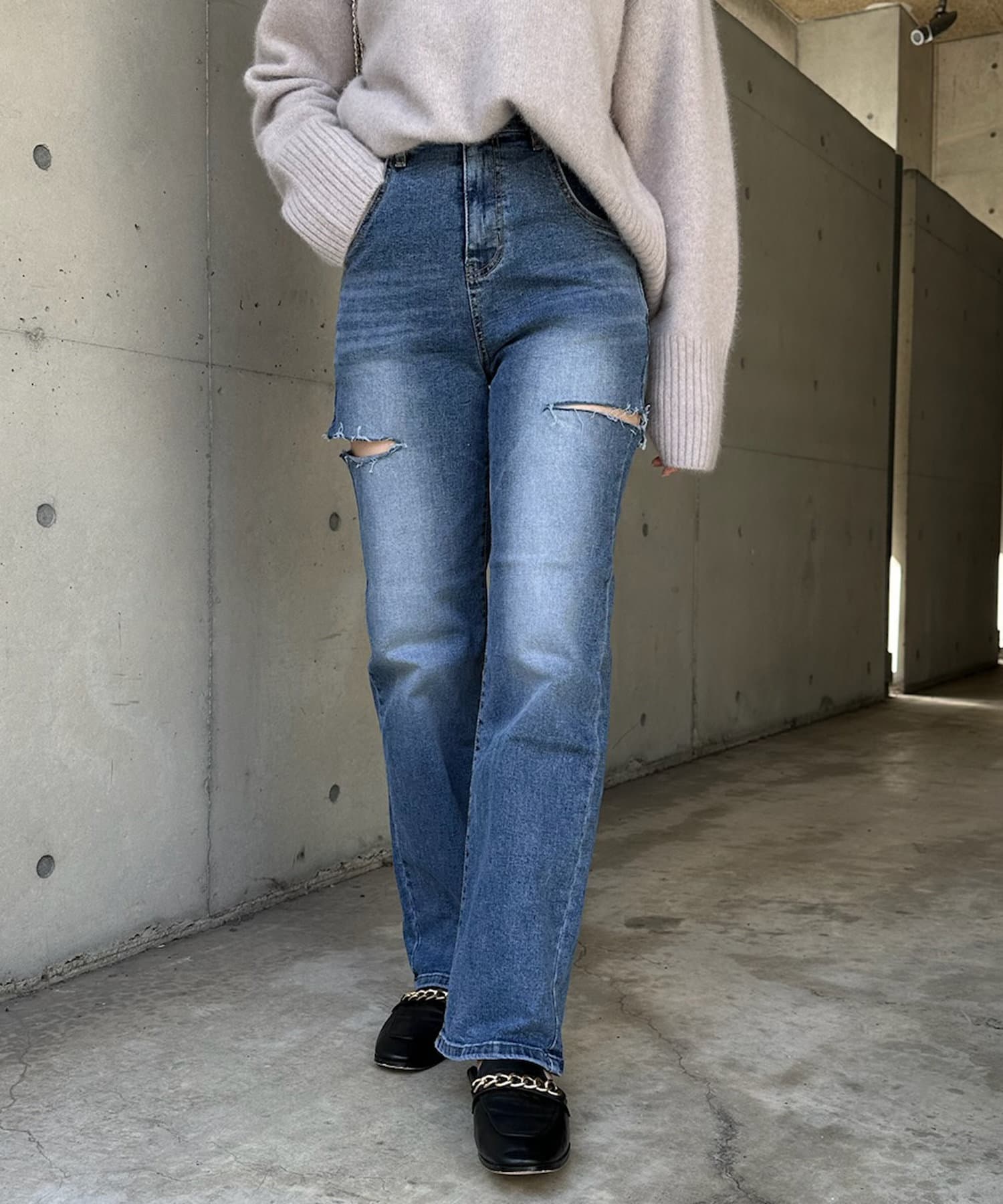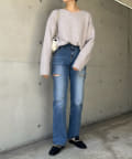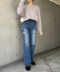 太ももにほつれ感のあるカットオフデザインが施されています。