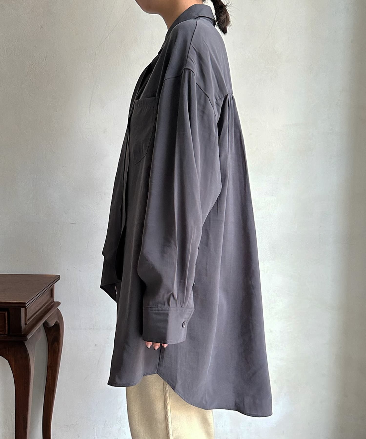 スウェットやニット、ベストと重ねてロングシーズン着回しを楽しんでいただけますよ。