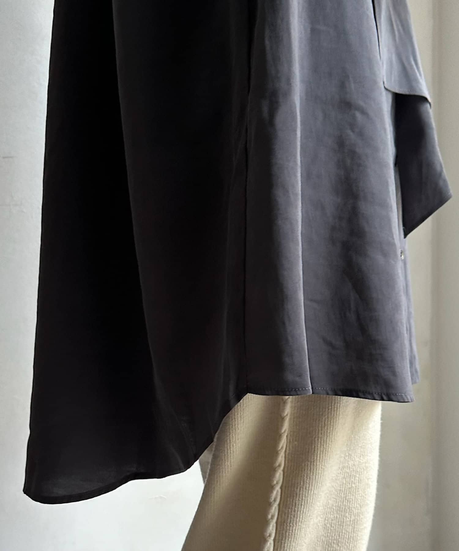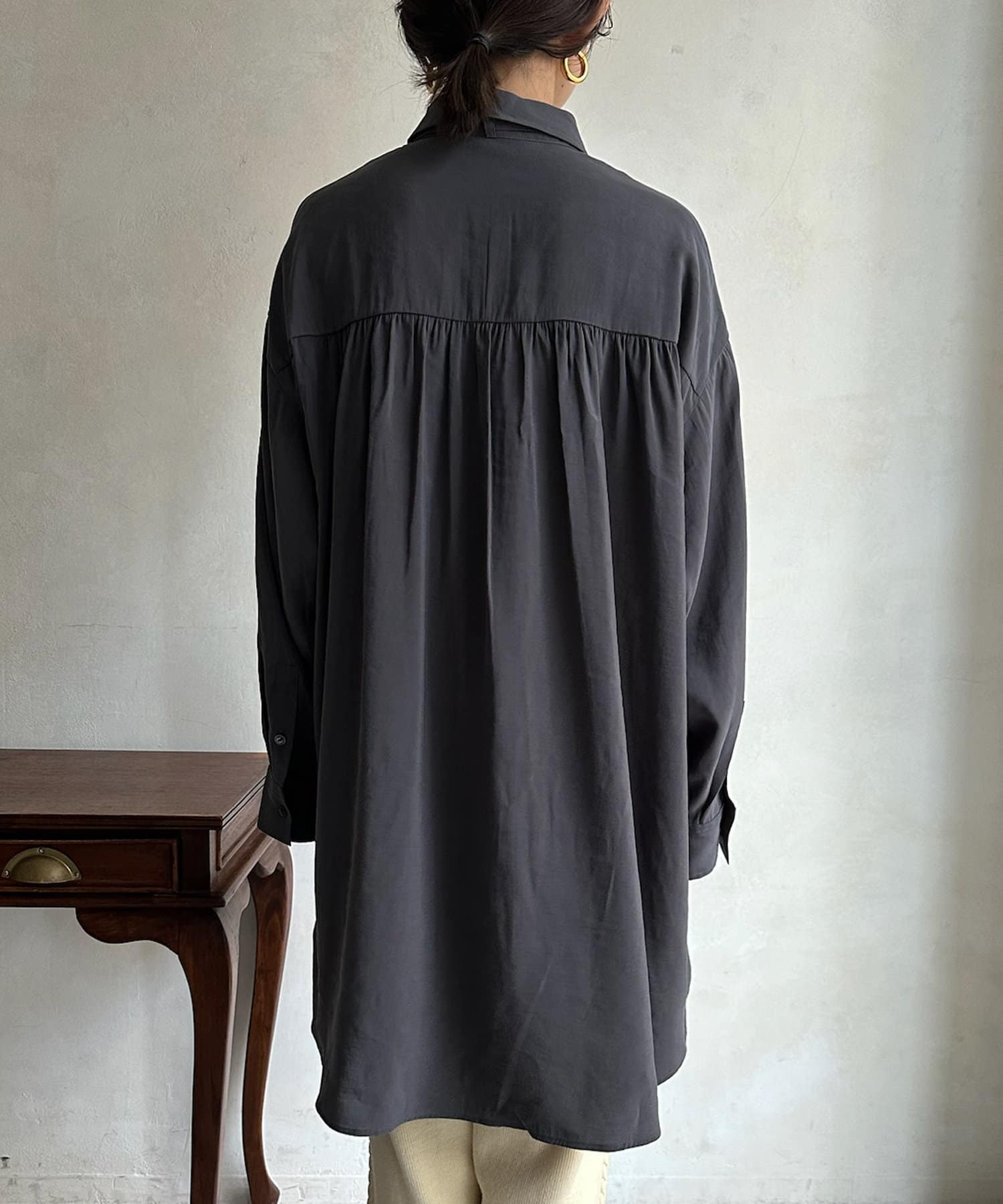 バックにはギャザーをたっぷりと寄せることで、裾に向かってひらっと広がるシルエットを作ります。