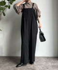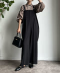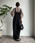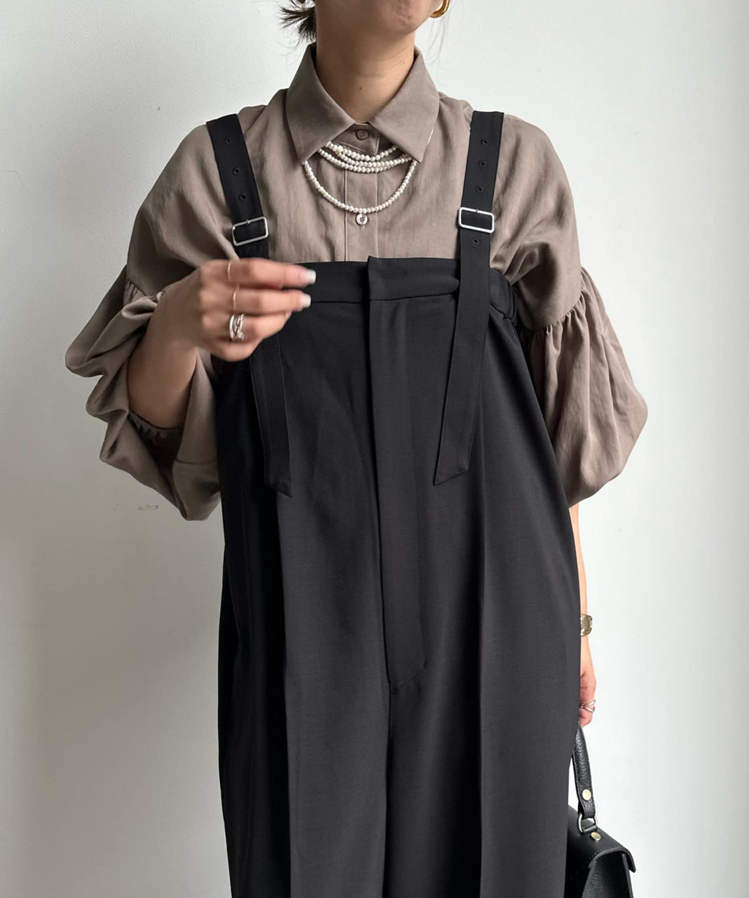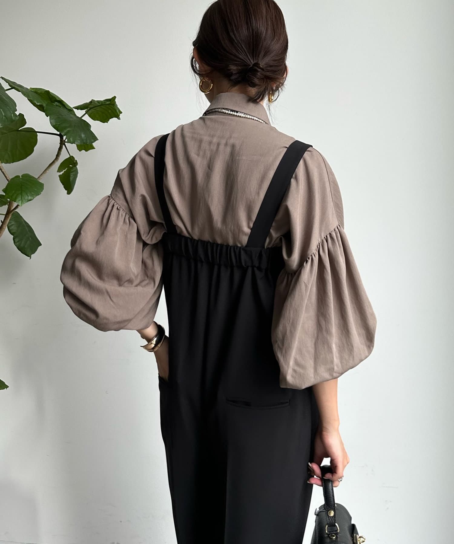 生地を重ね、裾にはドロストコードをプラス。絞ることでシルエットを簡単にアレンジが可能。