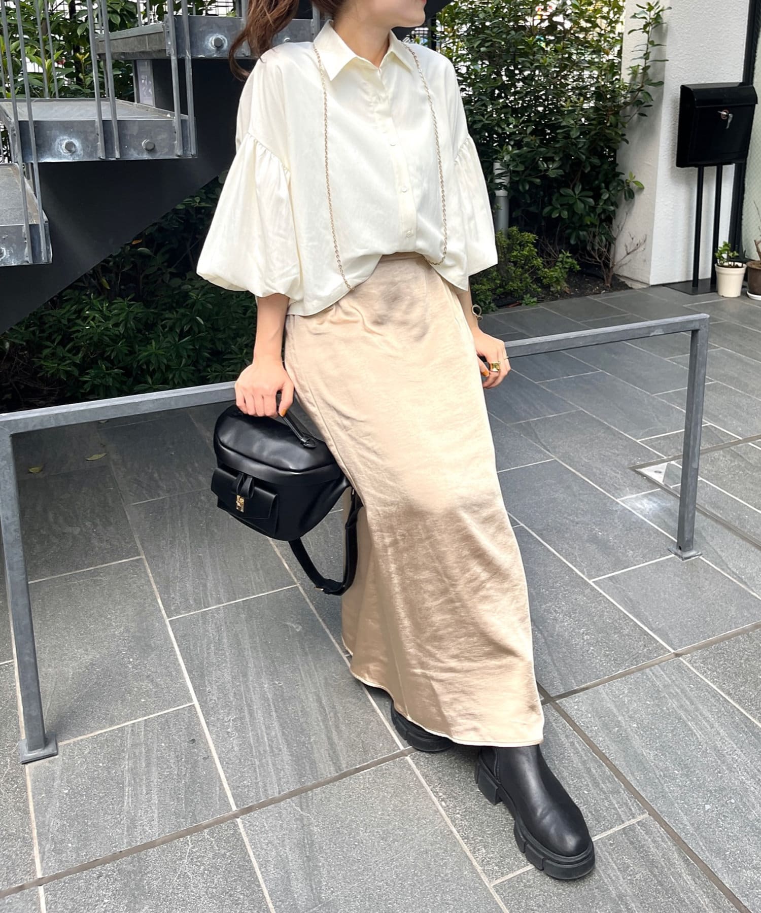 ボトムインしなくても、ふんわりと内側に入るシルエットが完成します。