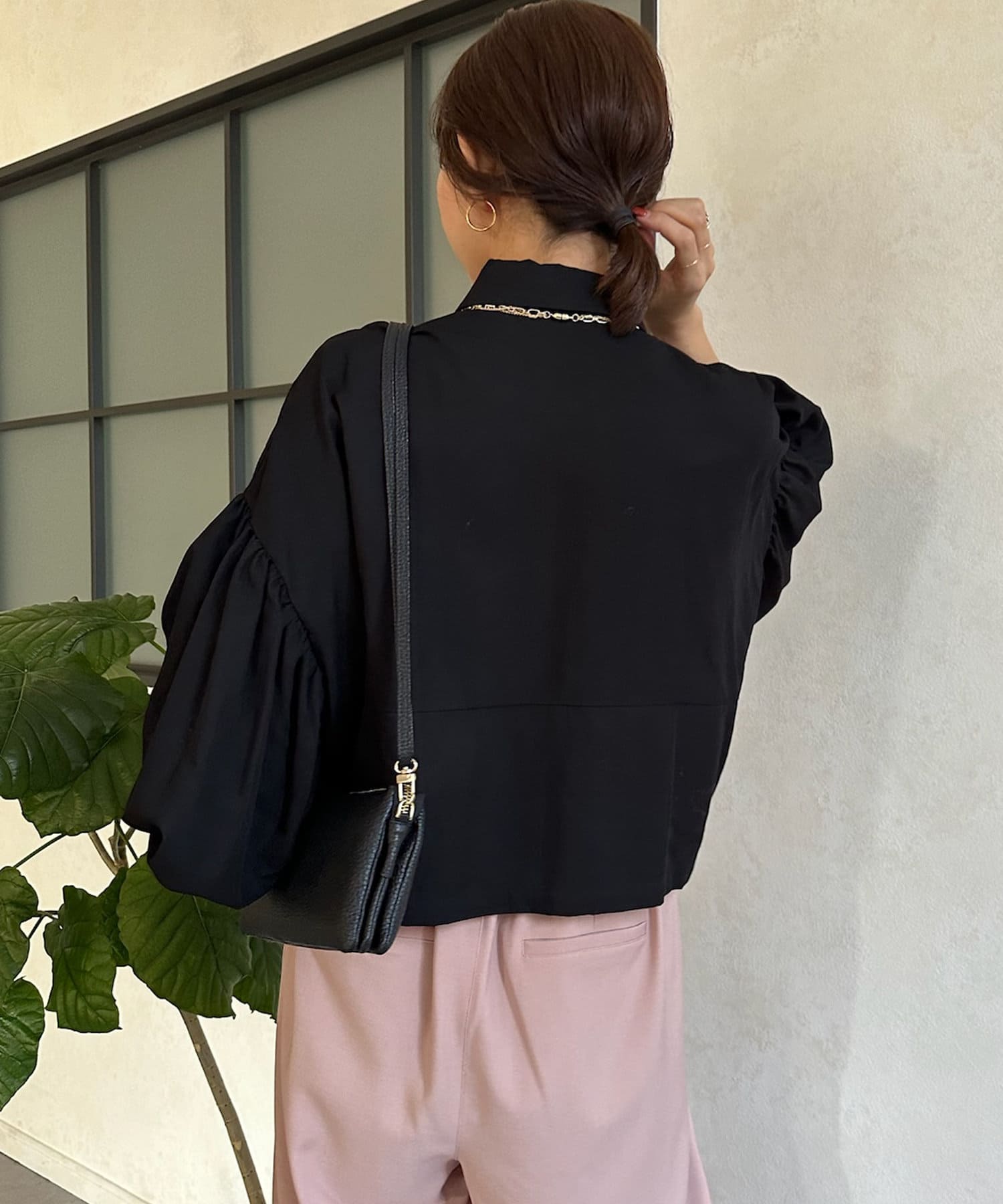襟付きのデザインが今らしく、カジュアルなアイテムとのスタイリングでバランスよく決まるデザインに仕上げました。